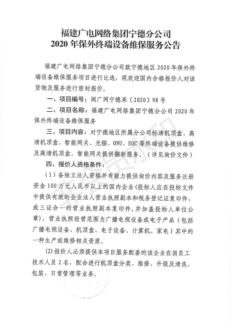 2020年保外终端设备维保服务公告