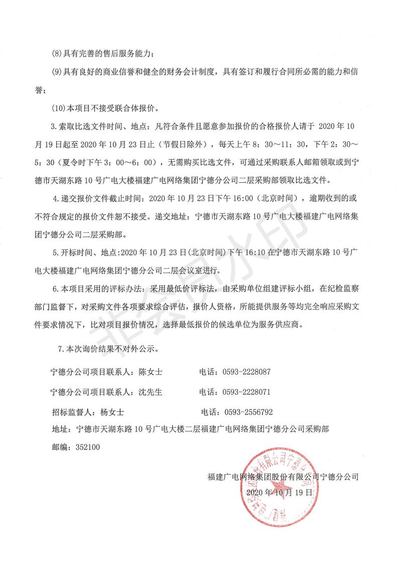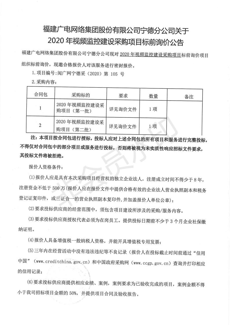 2020年视频监控建设采购项目标前询价公告