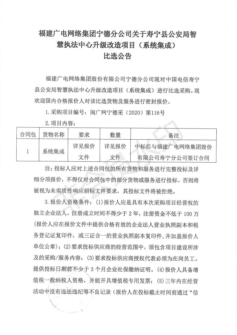 寿宁县公安局智慧执法中心升级改造项目(系统集成)比选公告