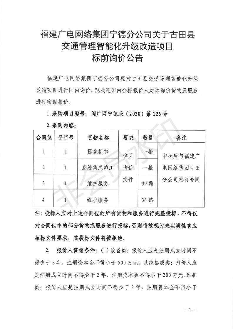 古田县交通管理智能化升级改造项目标前询价公告