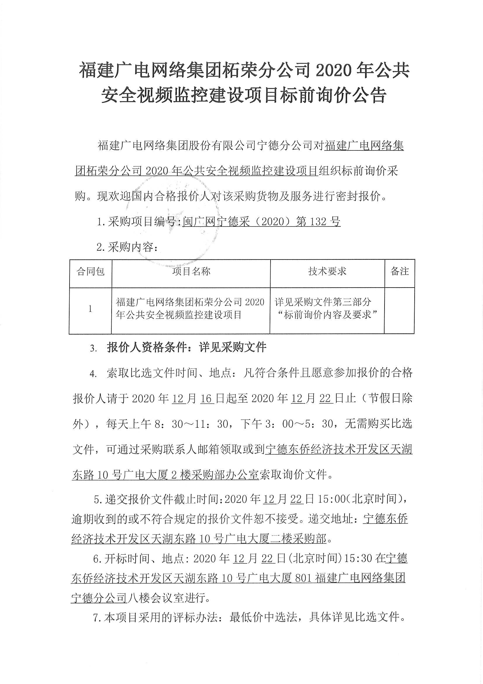 公共安全视频监控建设项目标前询价公告