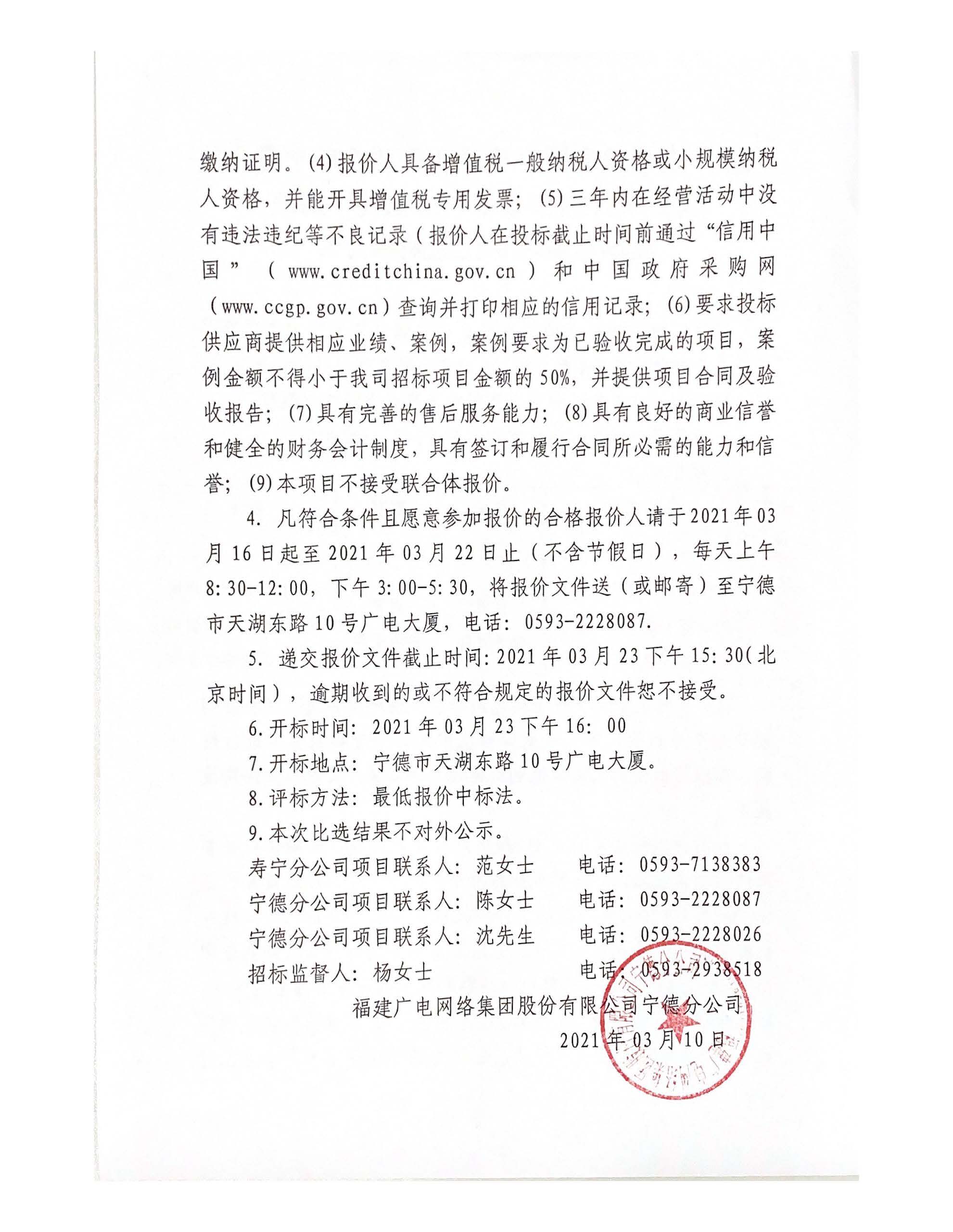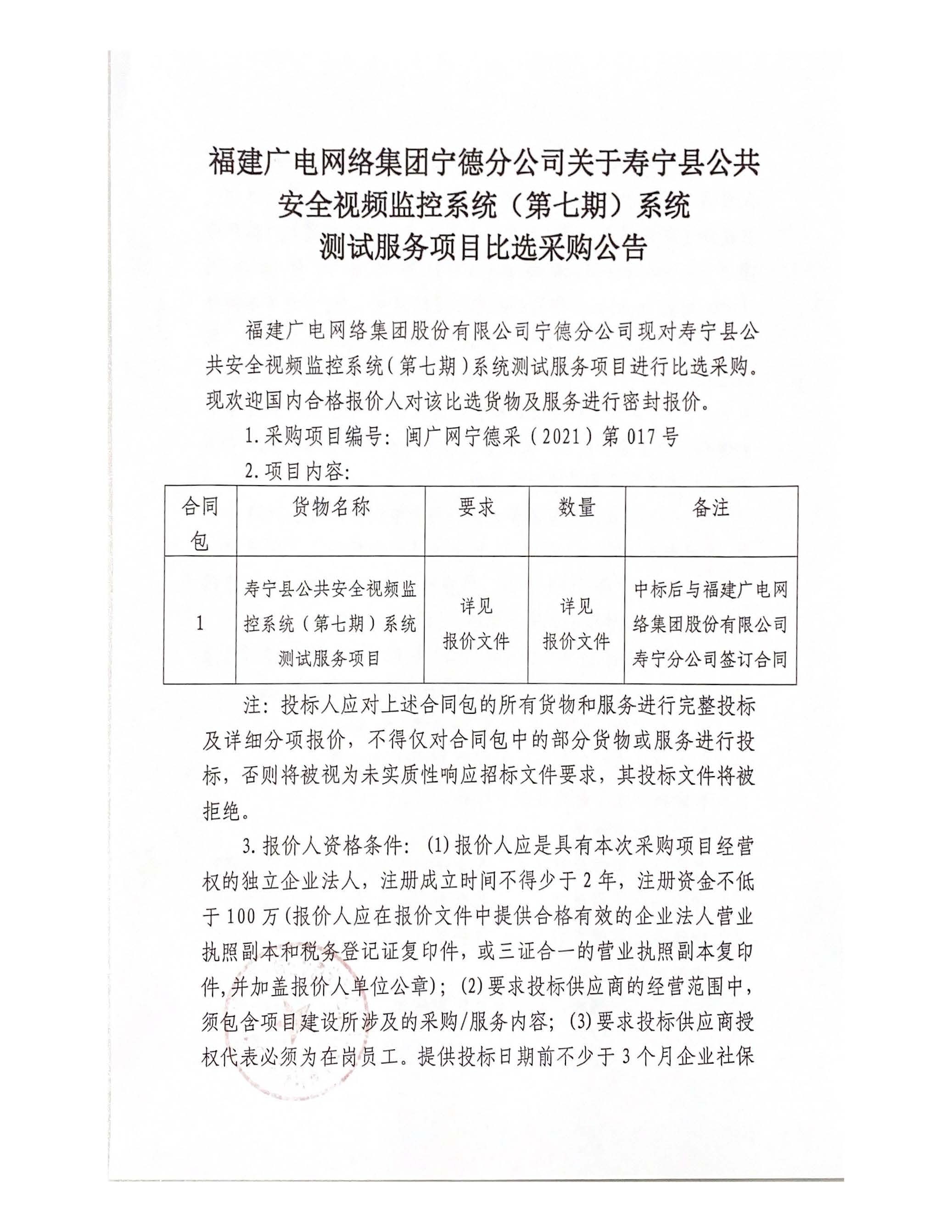 寿宁县公共安全视频监控系统(第七期)系统测试服务项目比选采购公告
