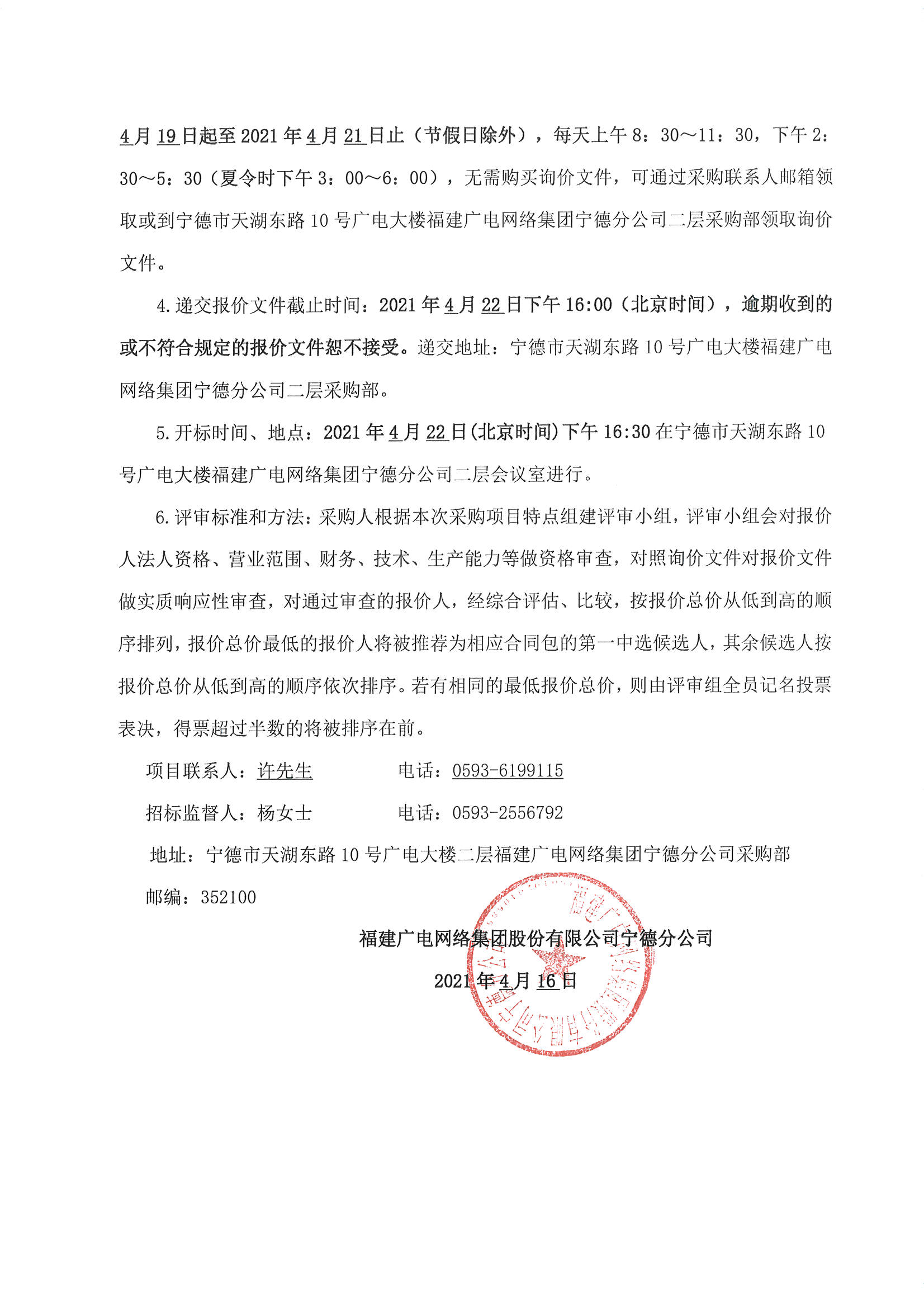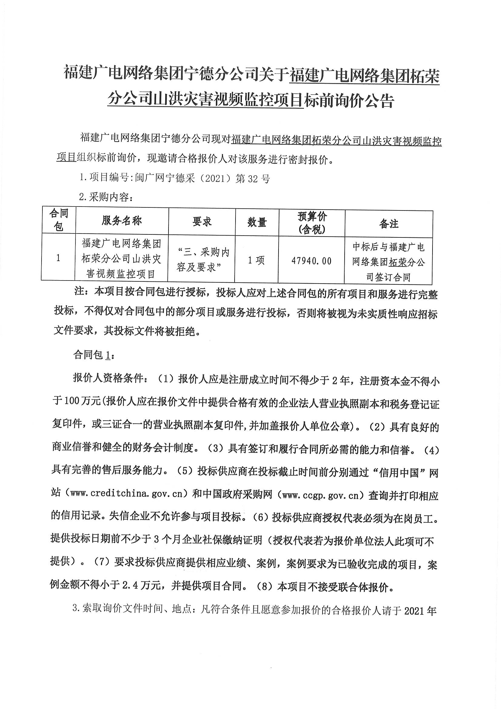 柘荣分公司山洪灾害视频监控项目标前询价公告