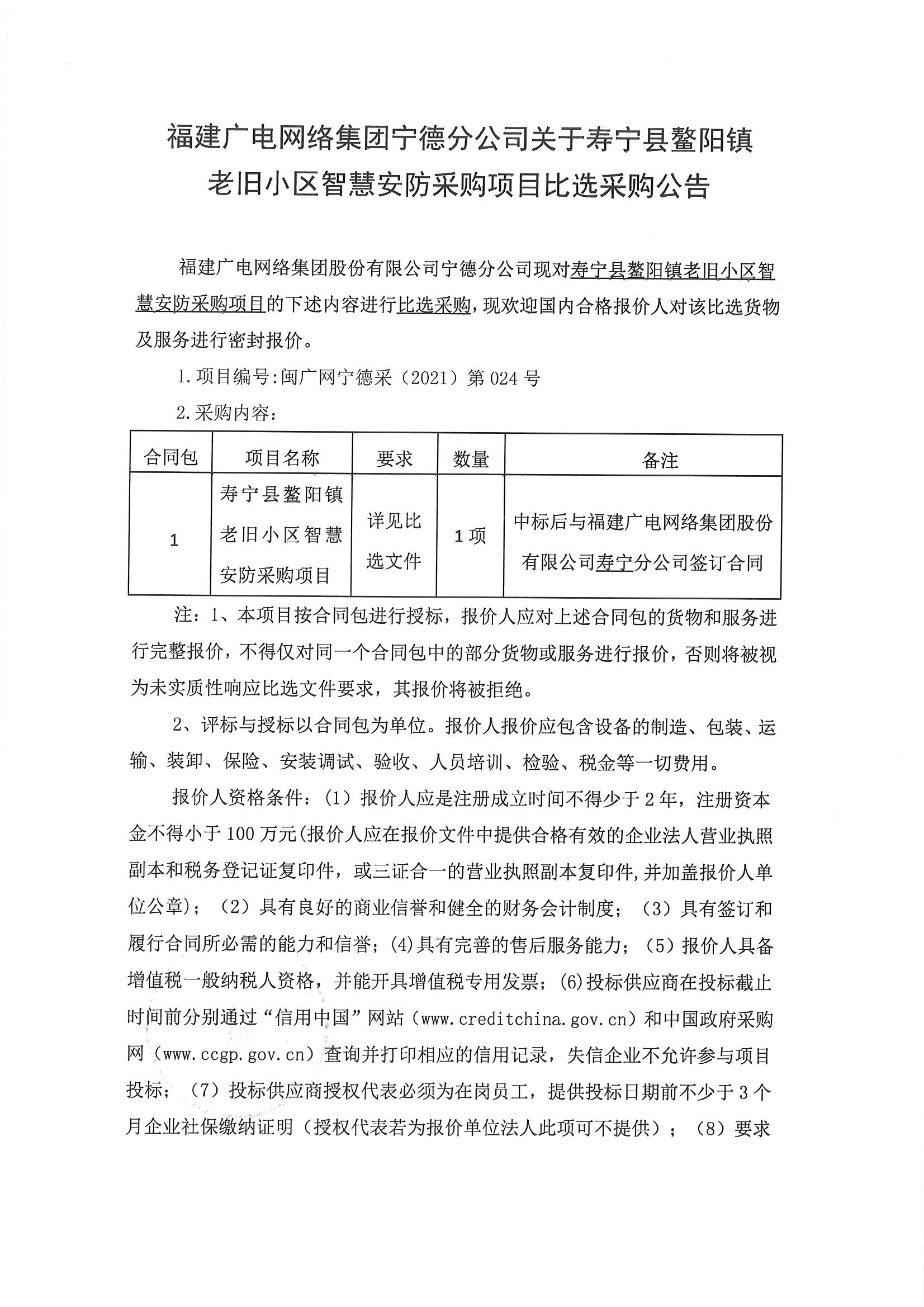 寿宁县鳌阳镇老旧小区智慧安防采购项目比选采购公告