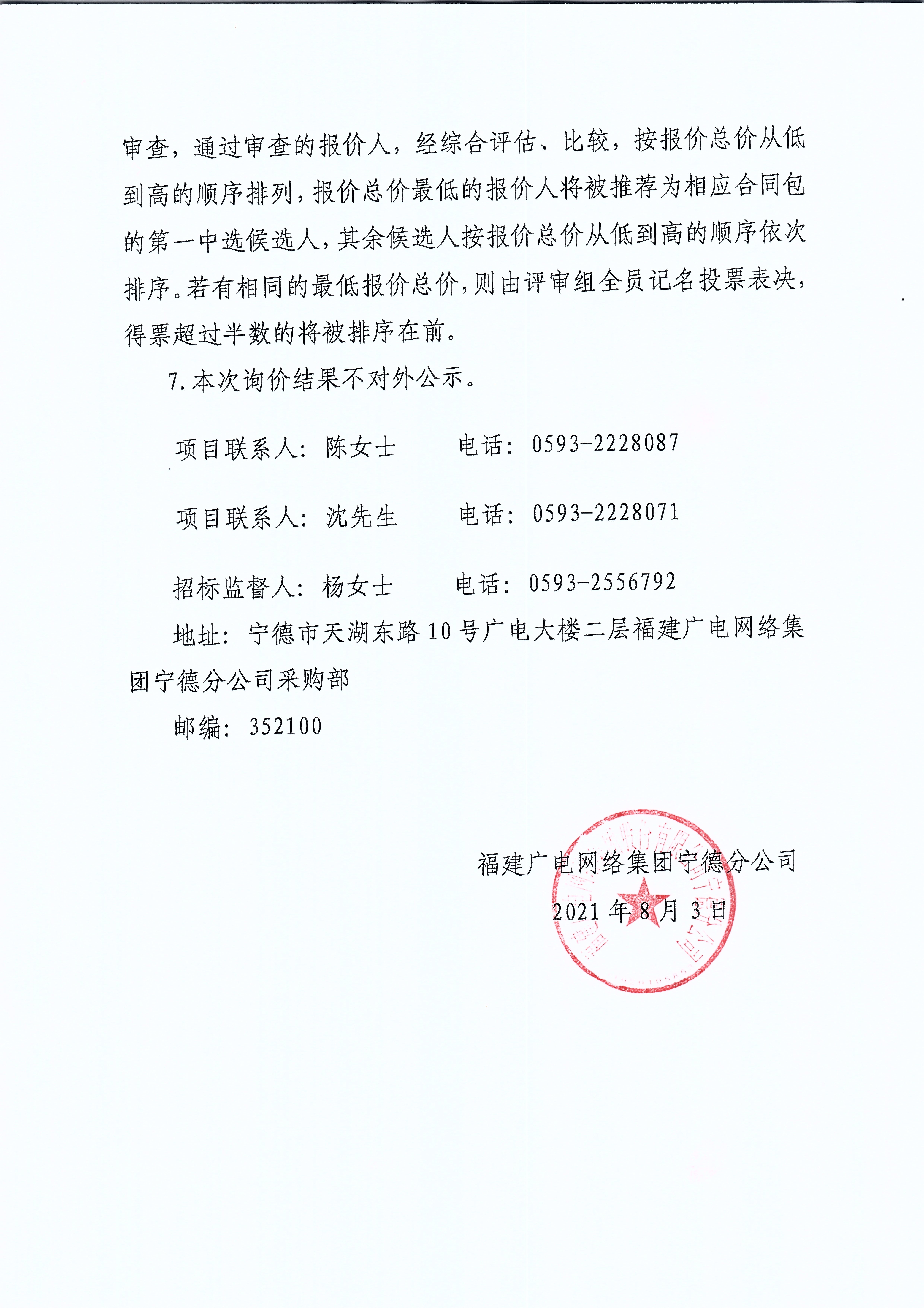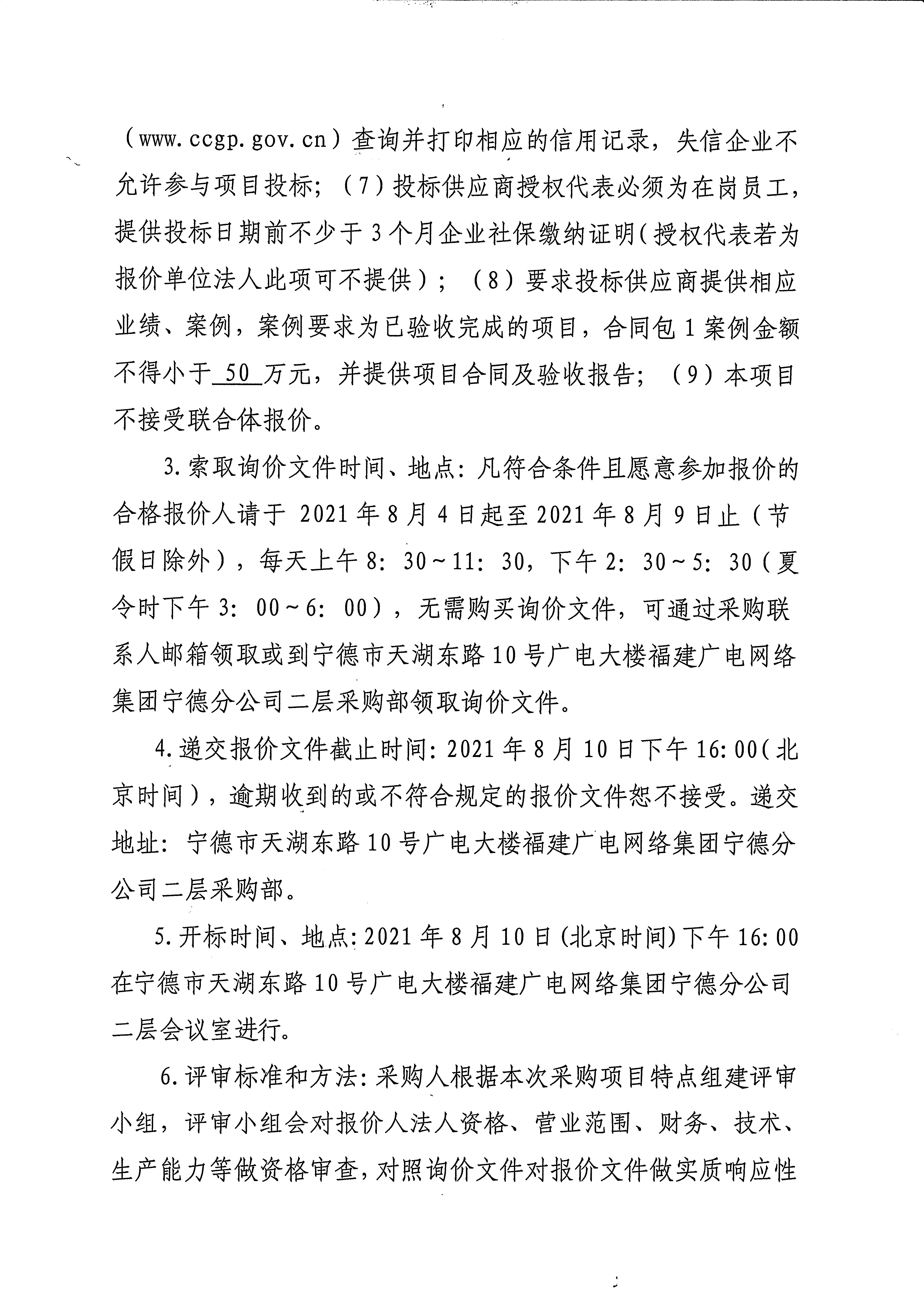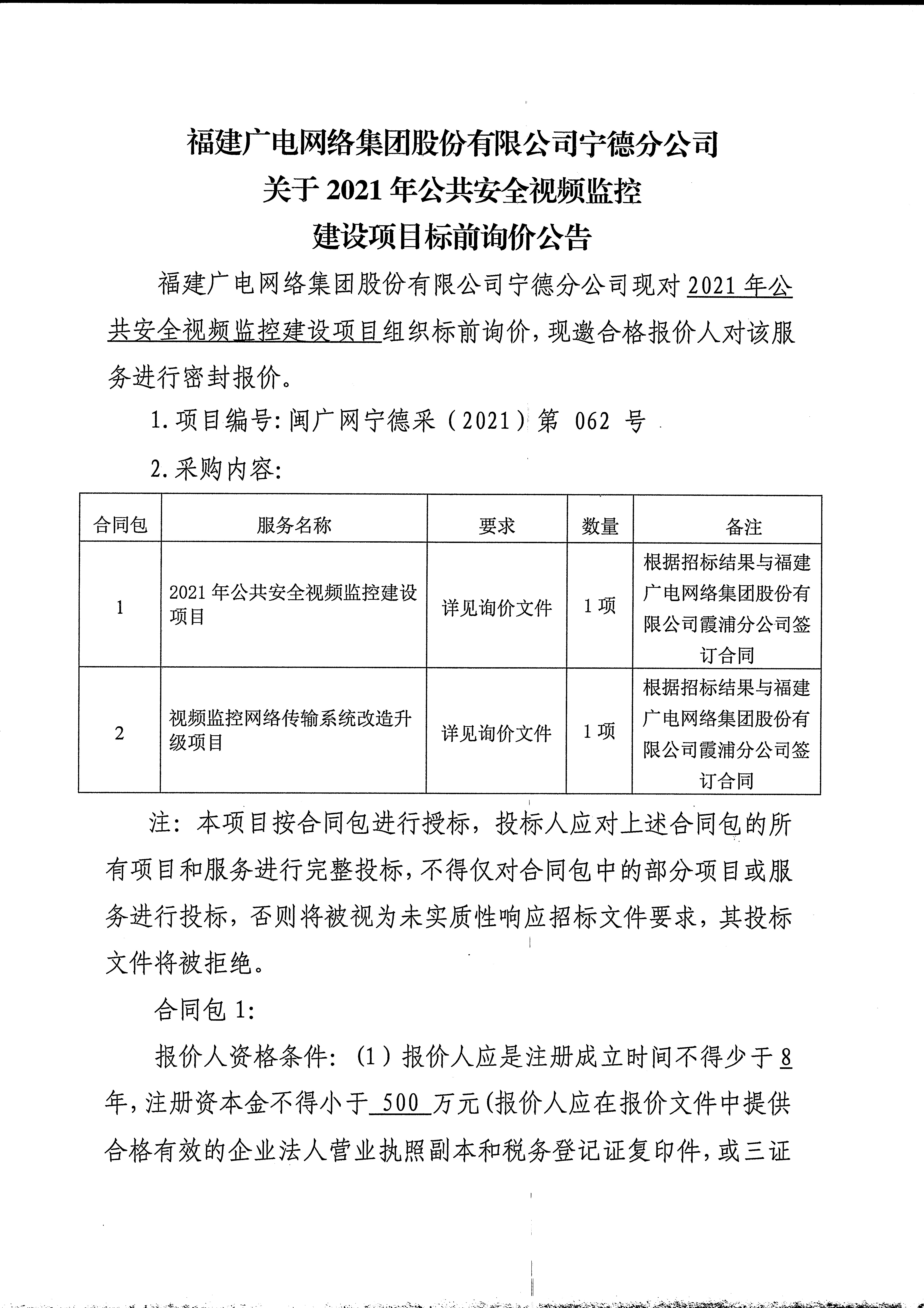 福建广电网络集团股份有限公司宁德分公司关于2021年公共安全视频监控建设项目标前询价公告
