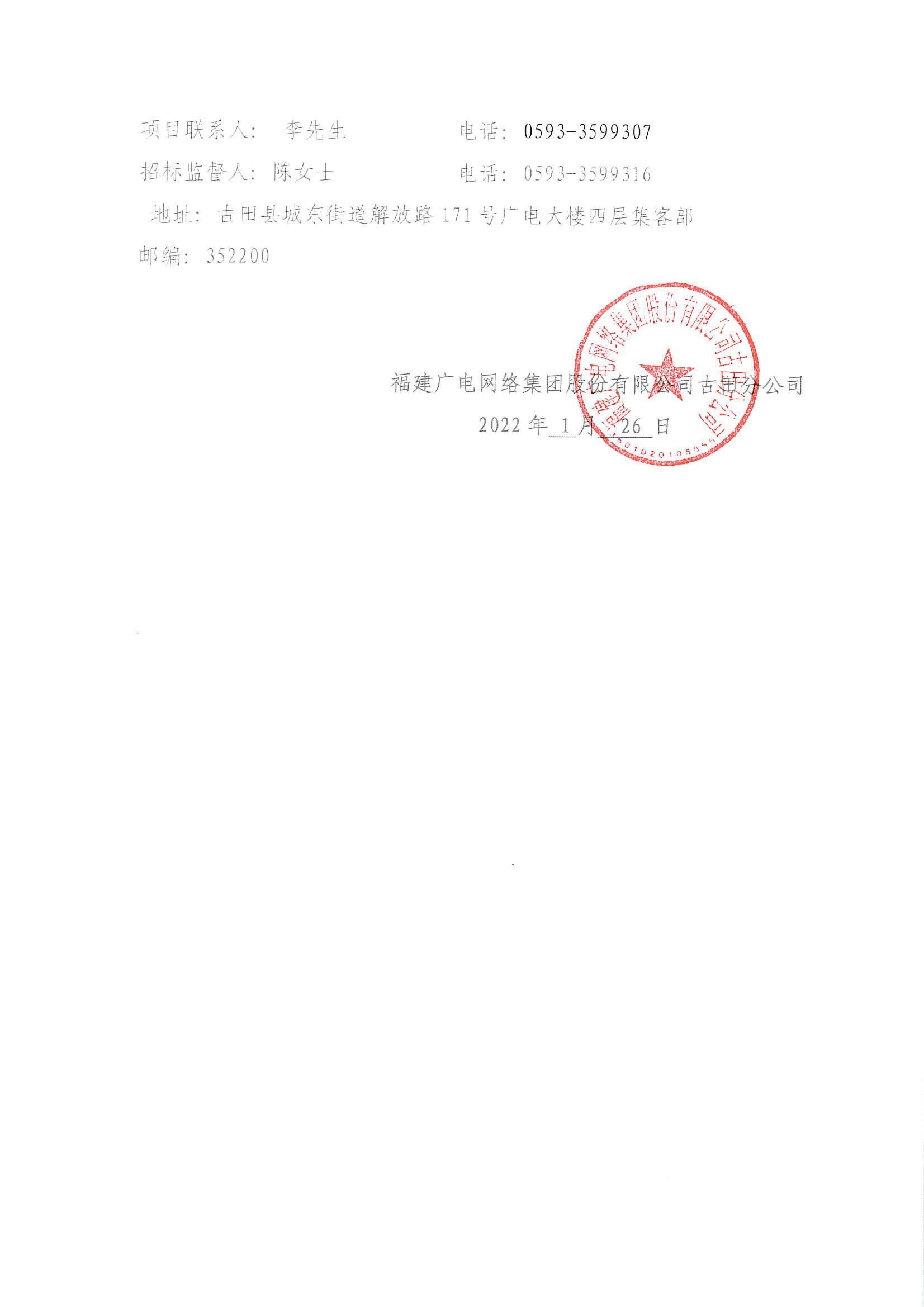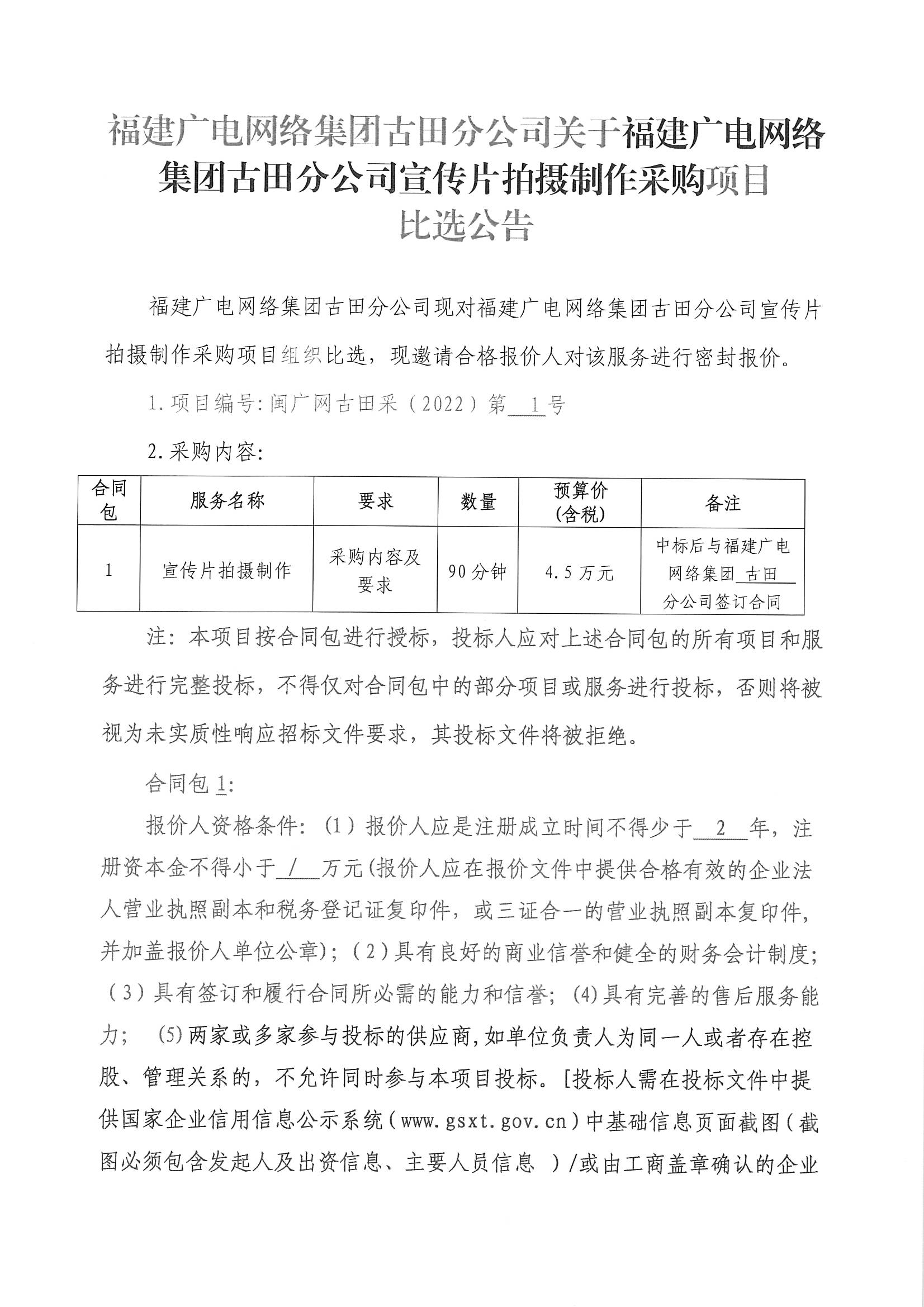 古田分公司宣传片拍摄制作采购项目比选公告