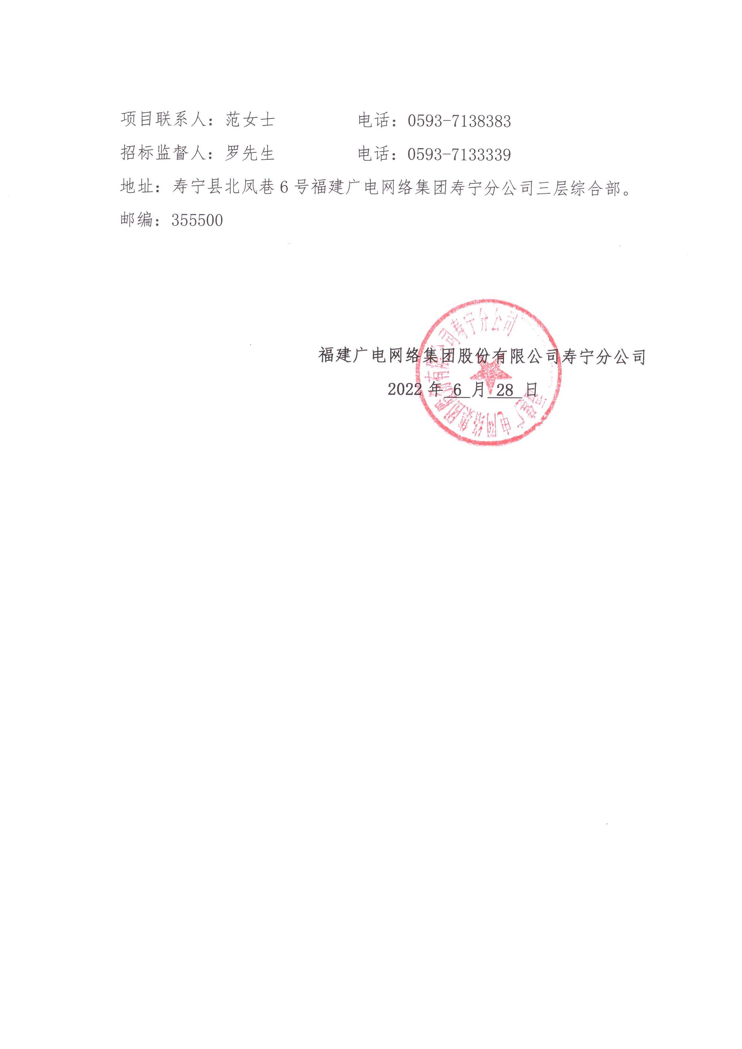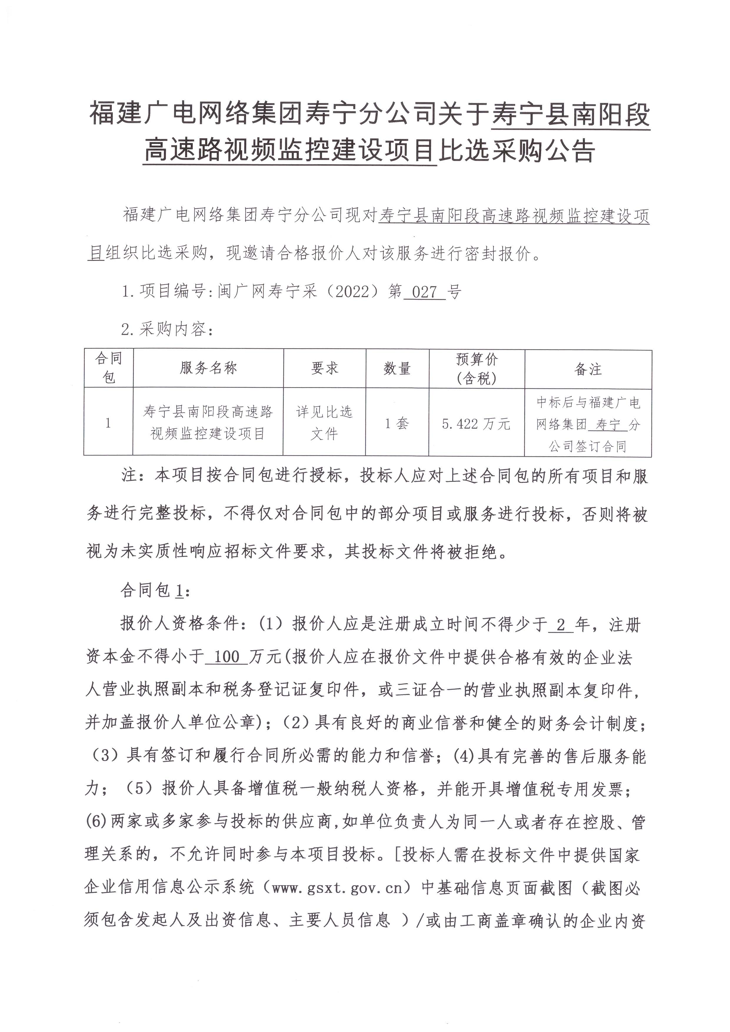 寿宁县南阳段高速路视频监控建设项目比选采购公告