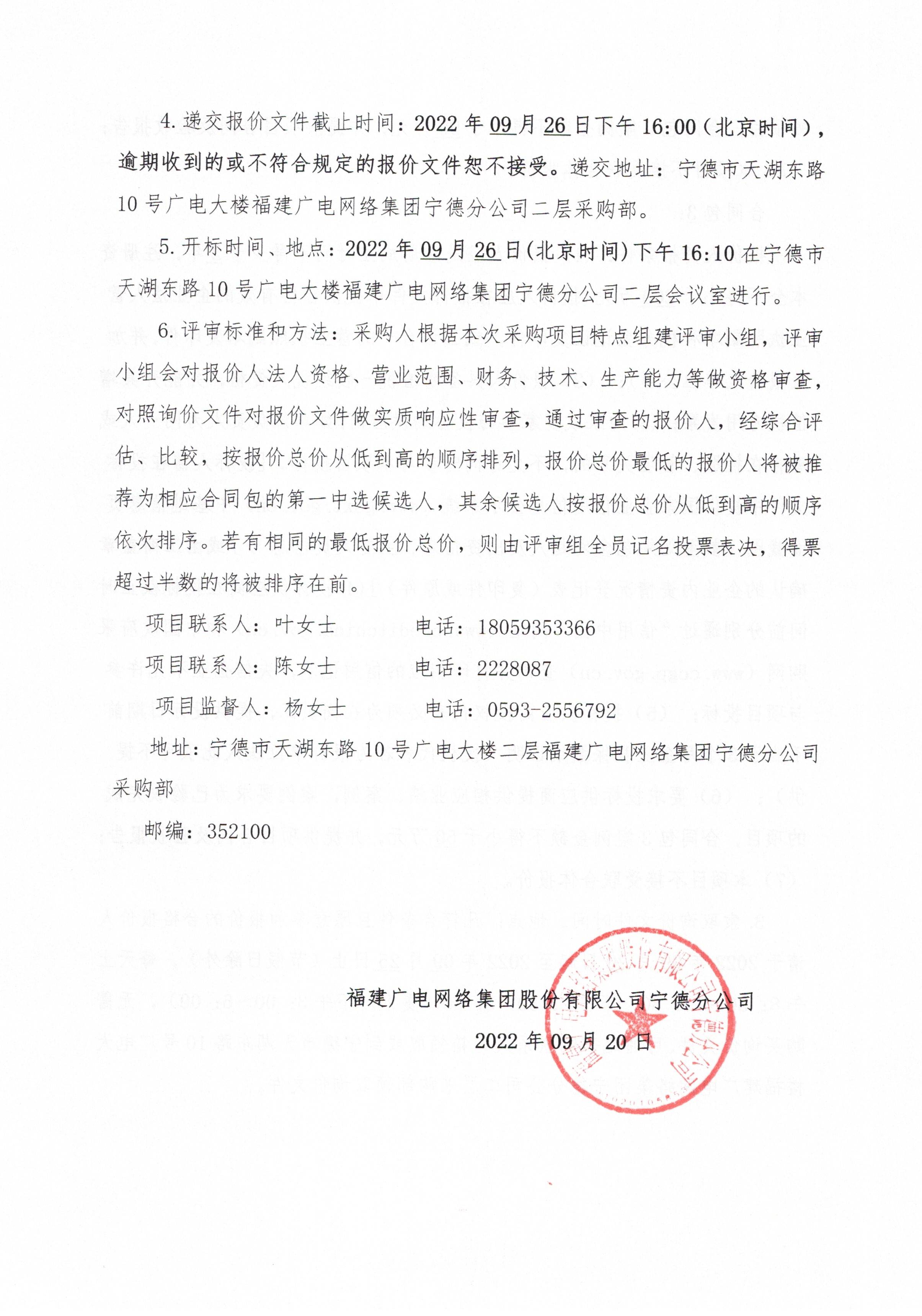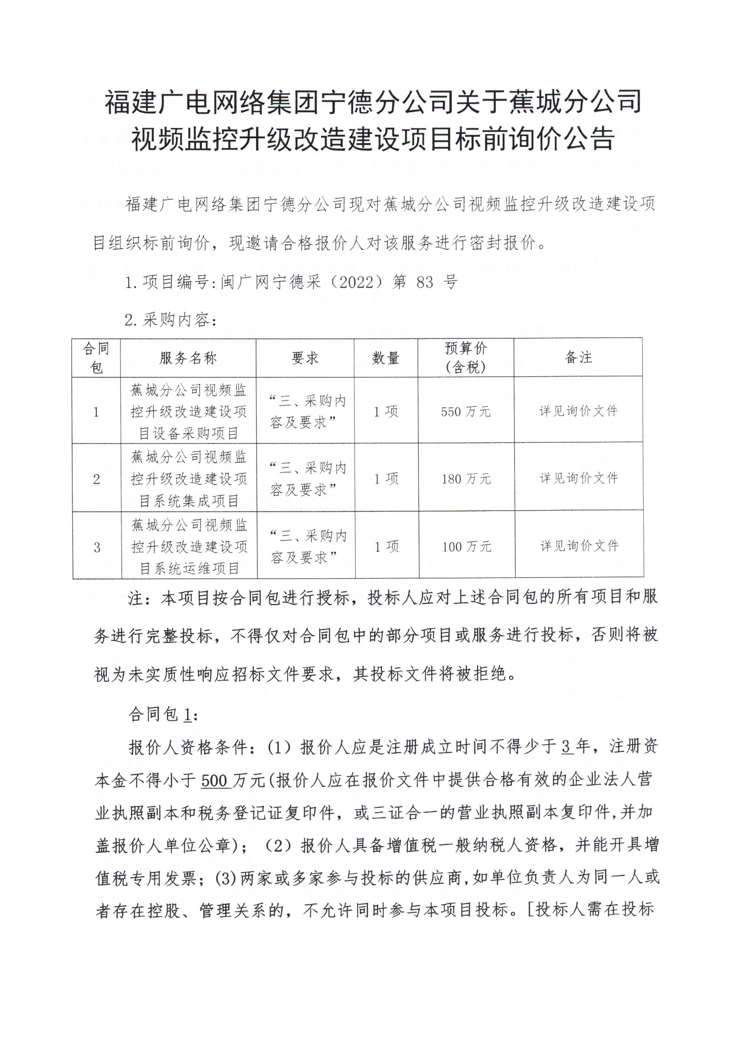 蕉城分公司视频监控升级改造建设项目标前询价公告