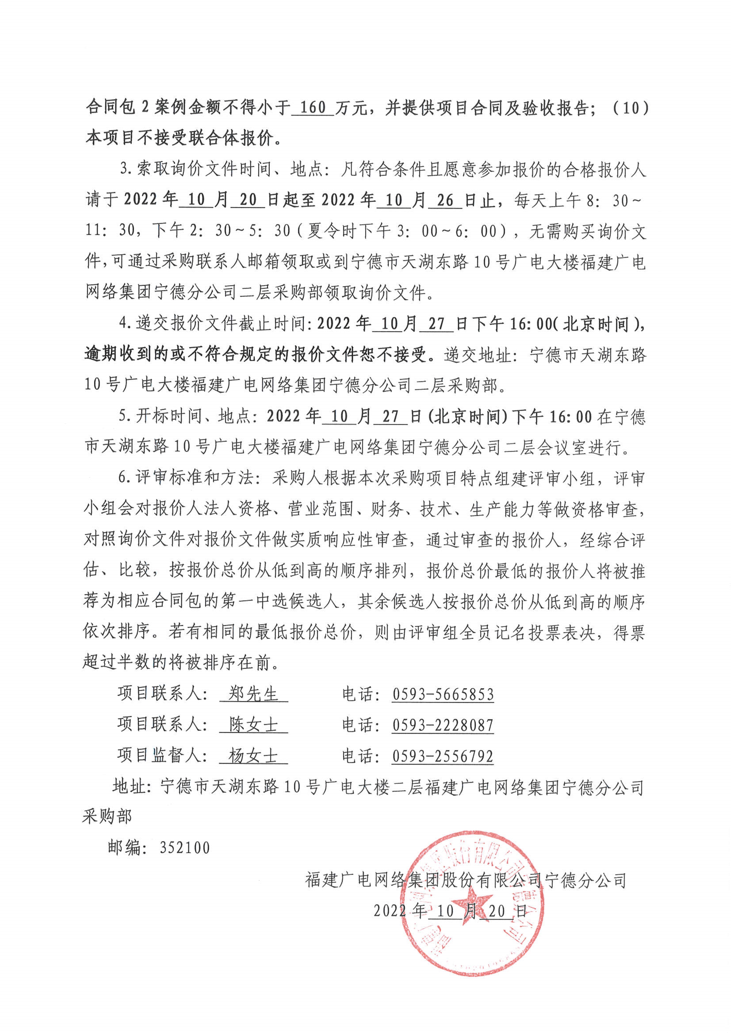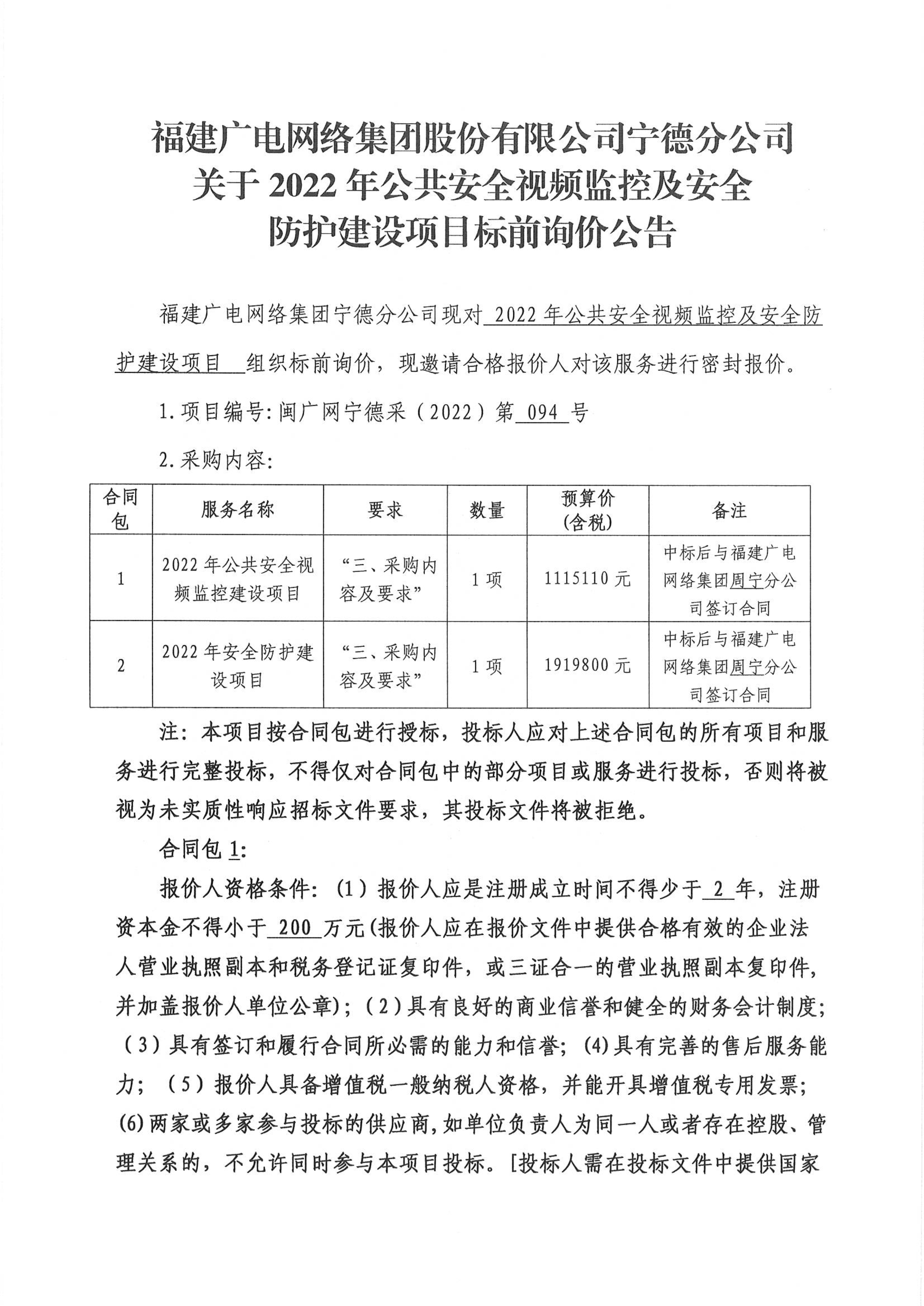 宁德分公司关于2022年公共安全视频监控及安全防护建设项目标前询价公告