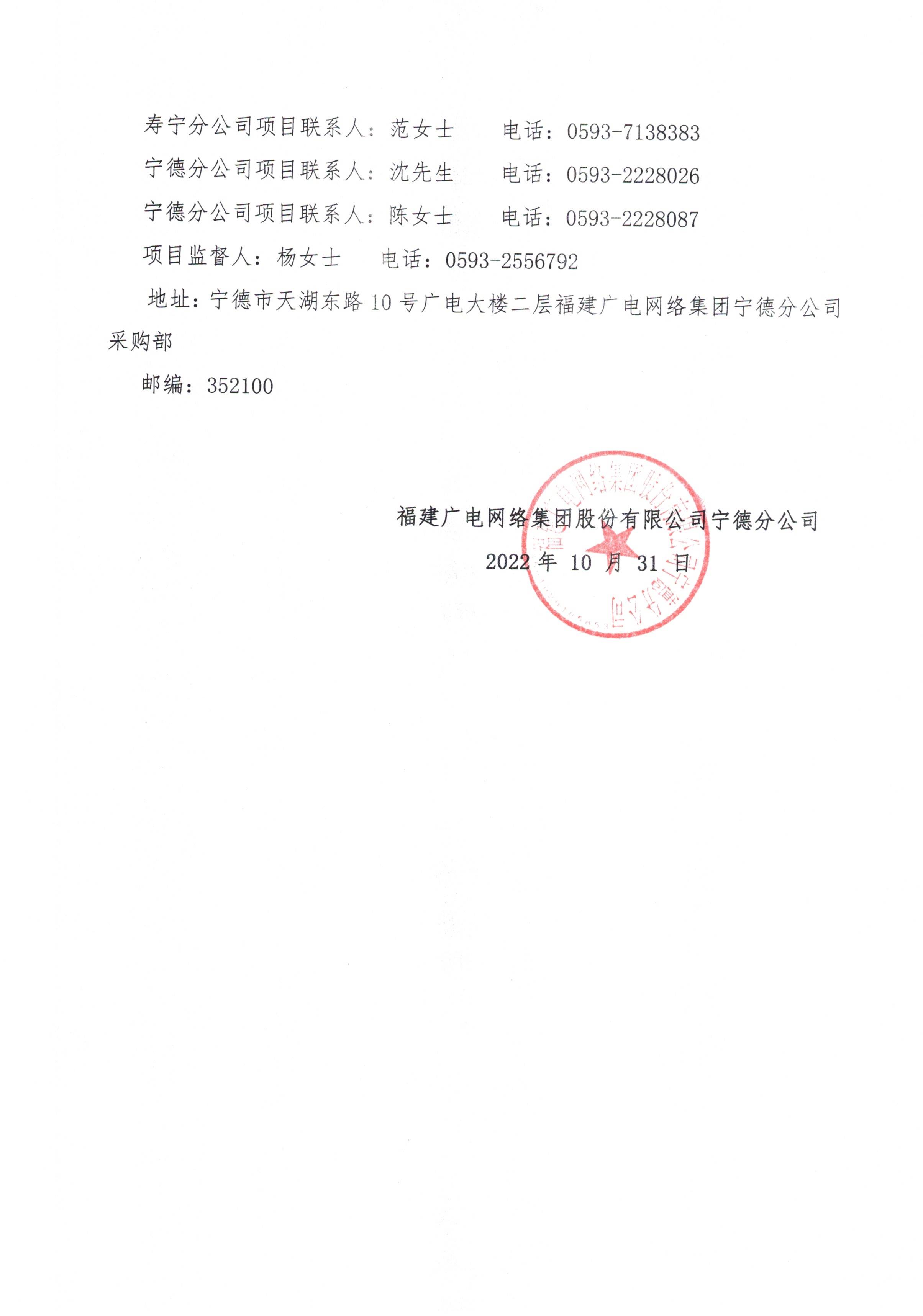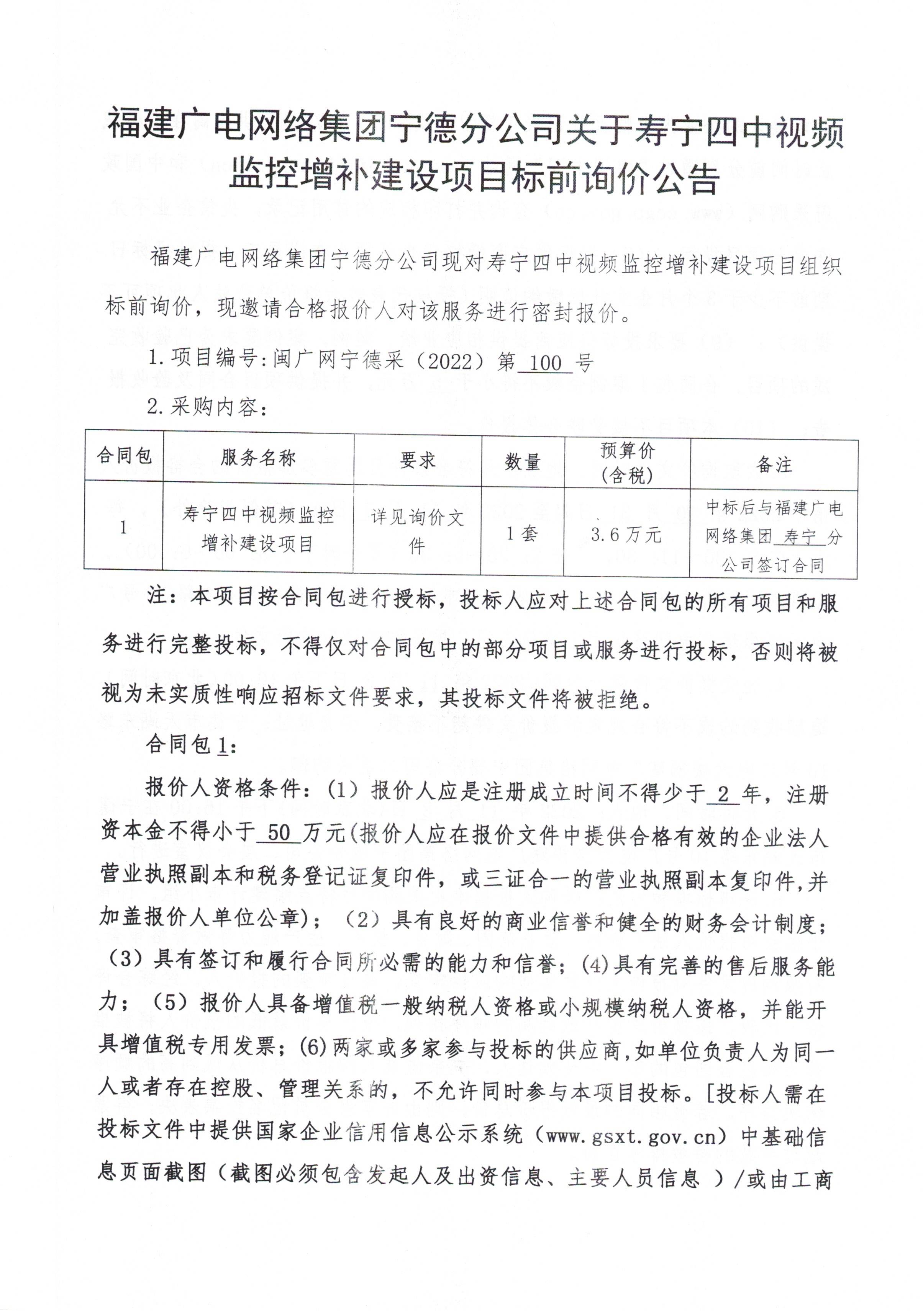 宁德分公司关于寿宁四中视频监控增补建设项目标前询价公告
