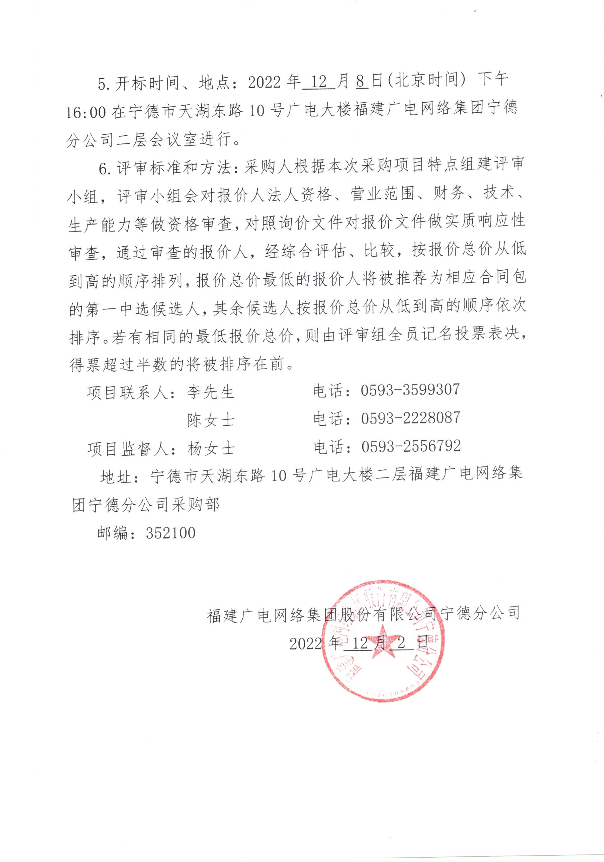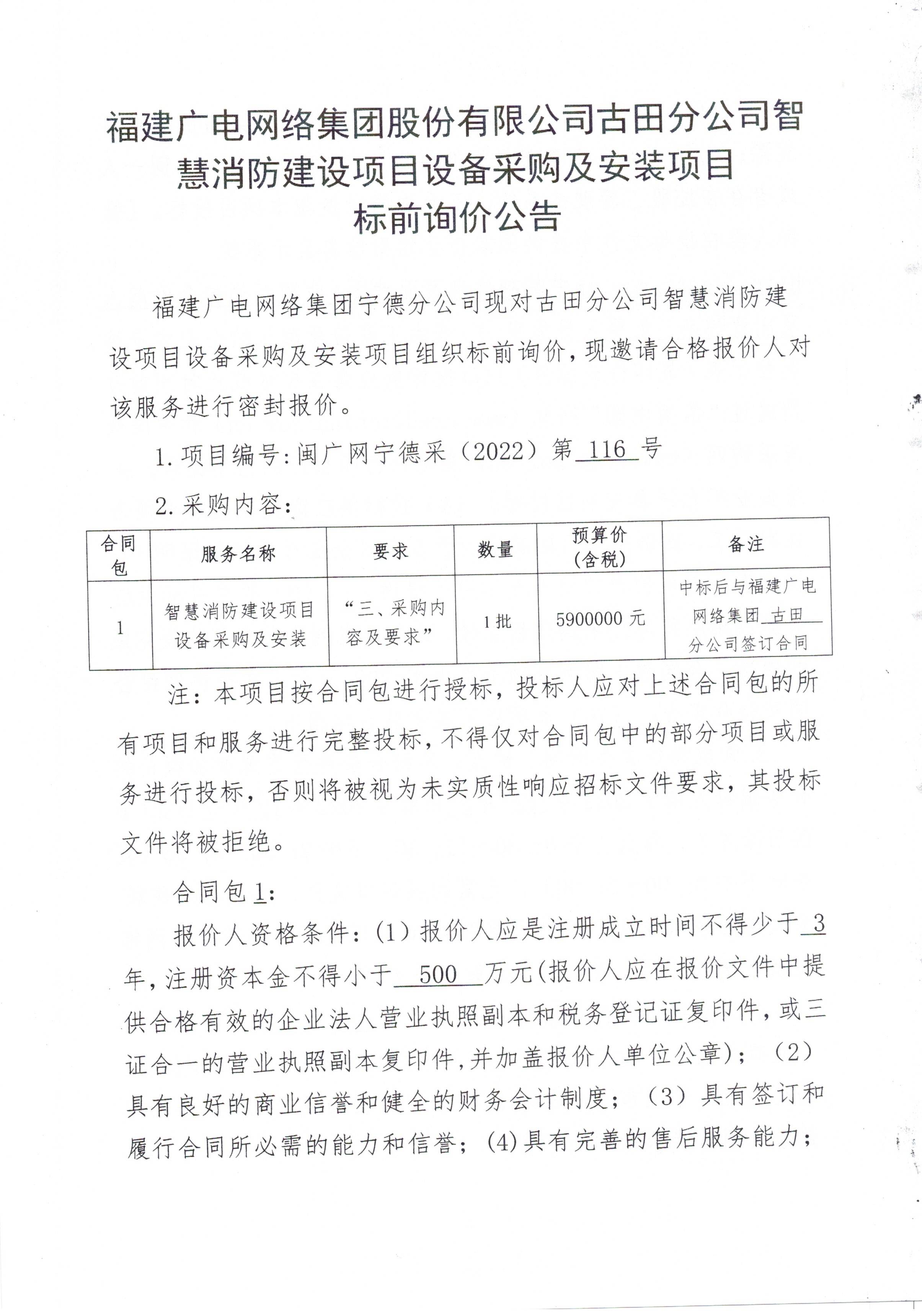 古田分公司智慧消防建设项目设备采购及安装项目标前询价公告