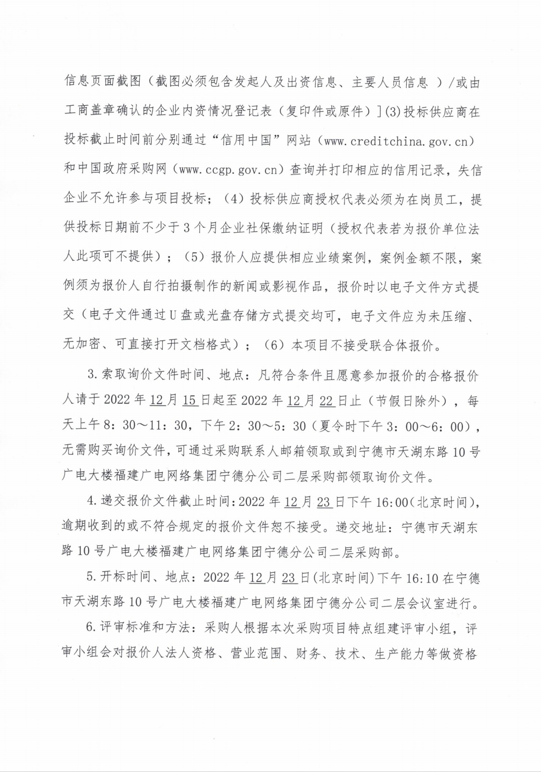 宁德分公司关于蕉城分公司禁毒互动电视云平台项目标前询价公告