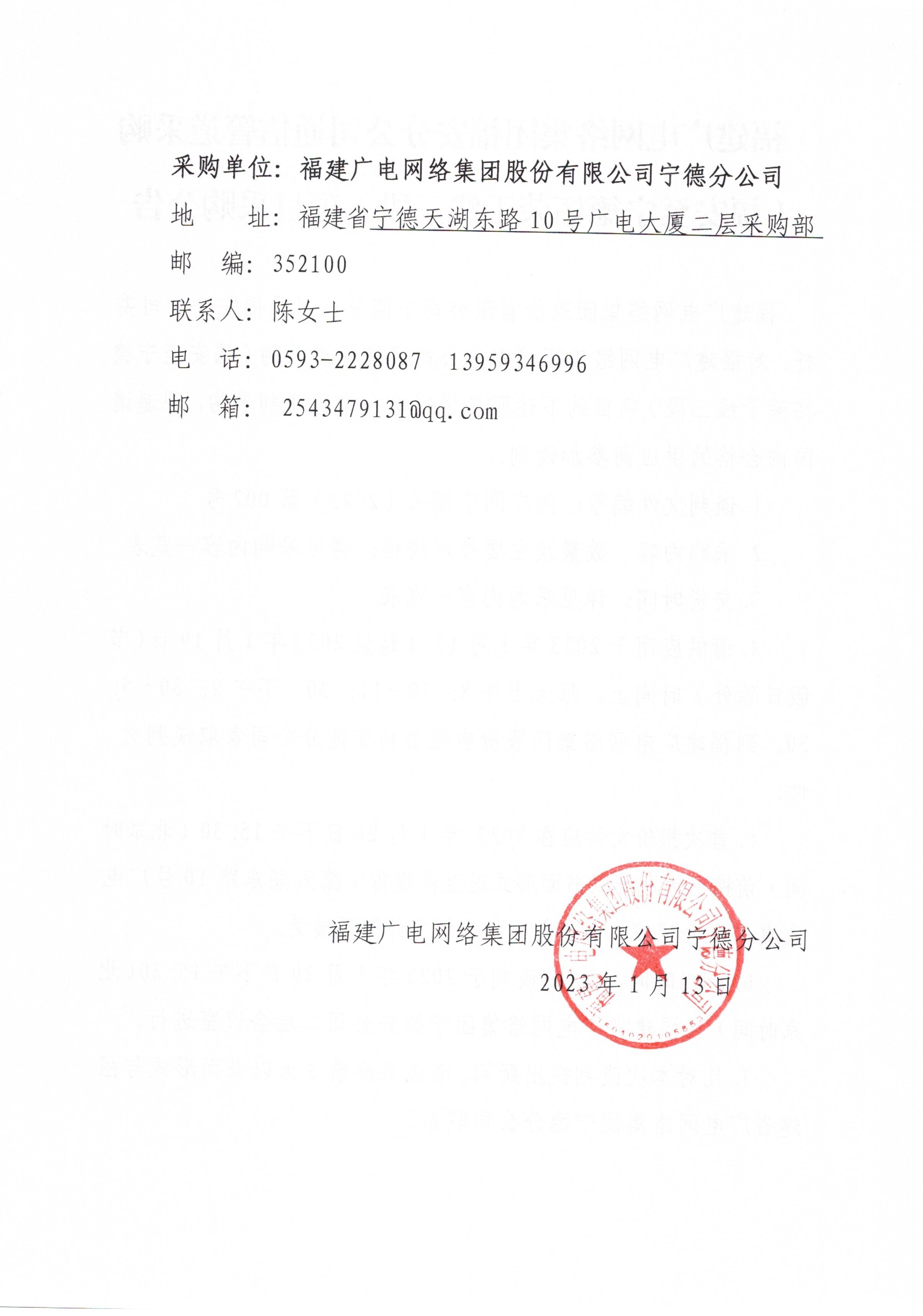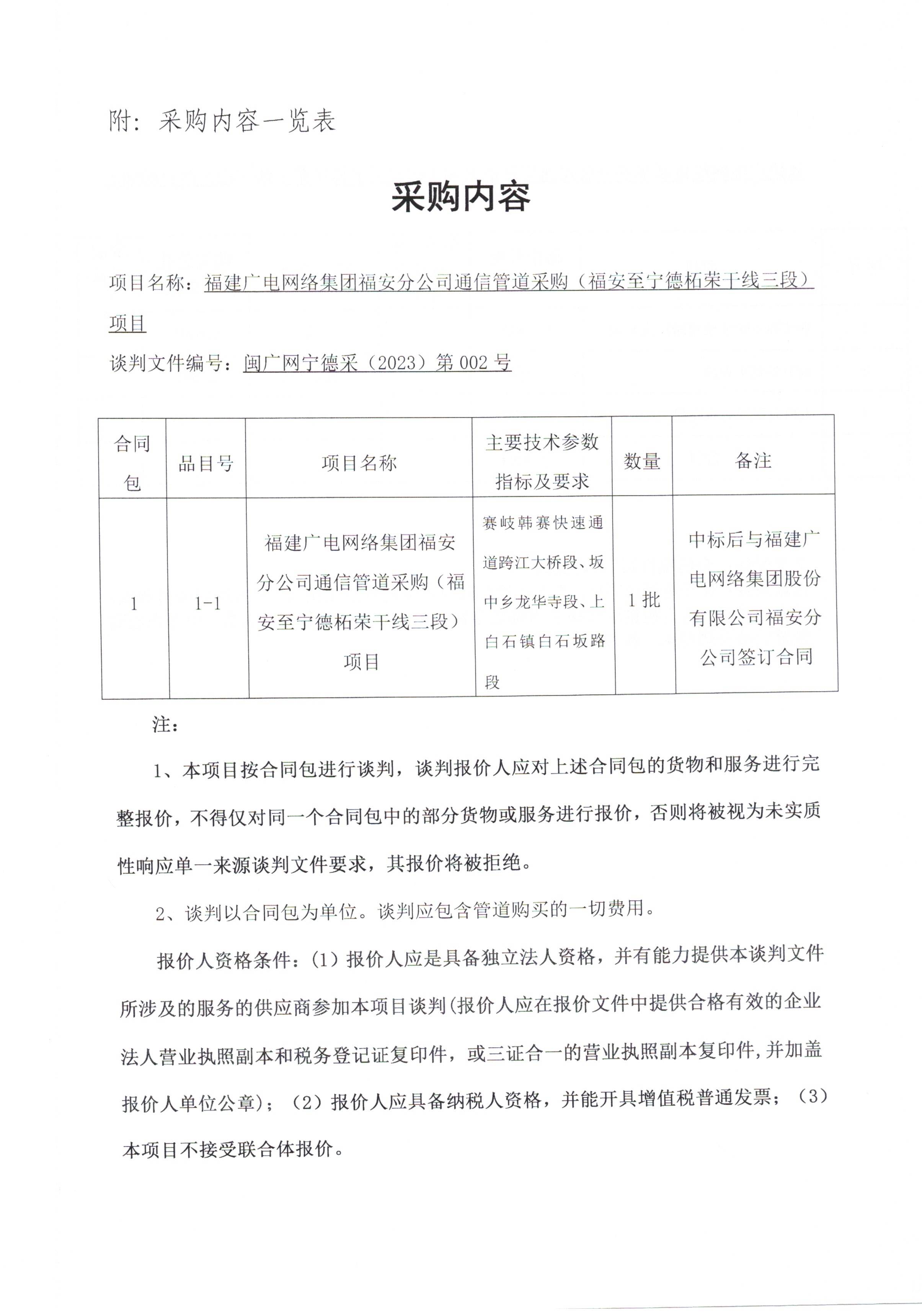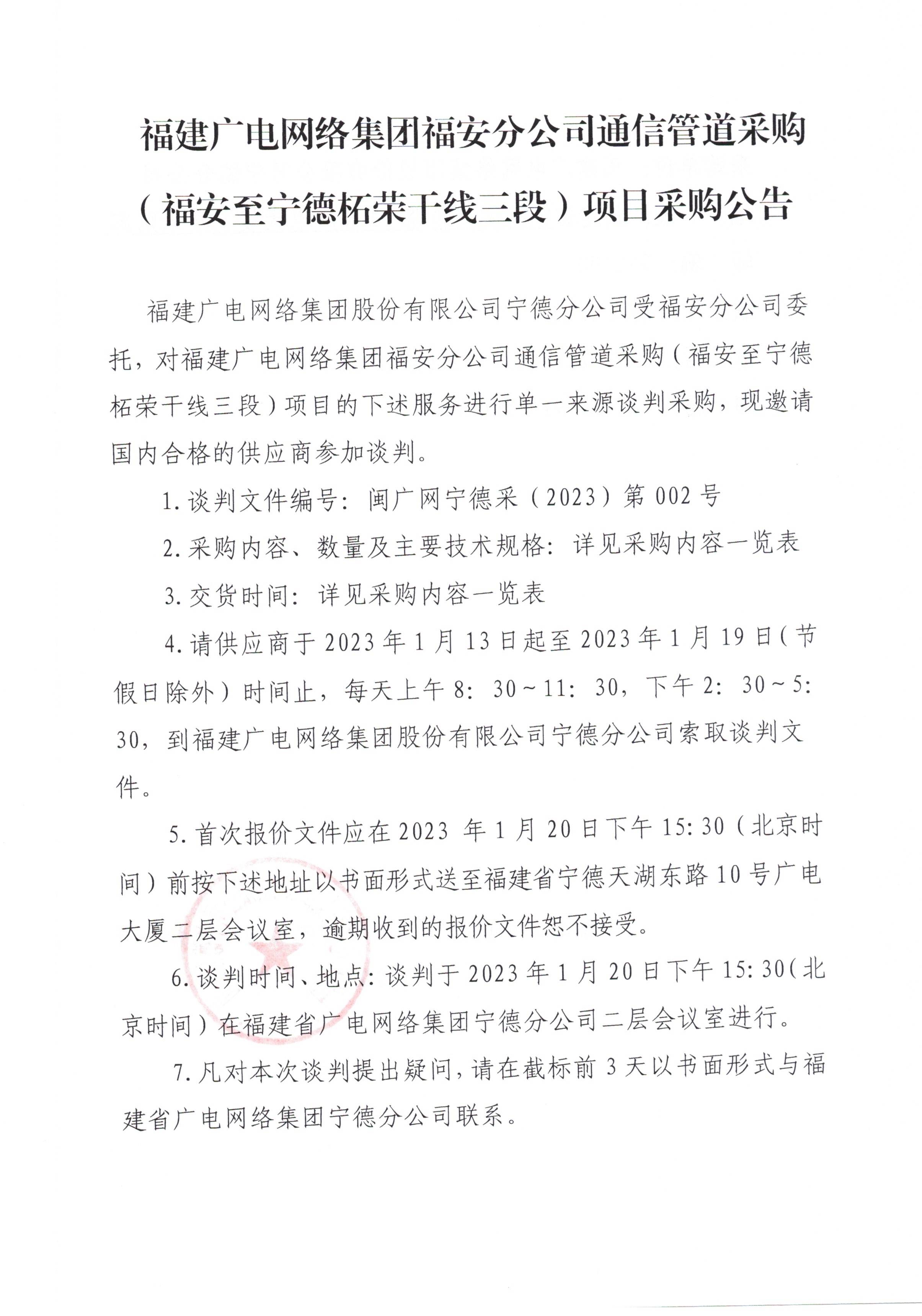 福建广电网络集团福安分公司通信管道采购(福安至宁德柘荣干线三段)项目采购公告