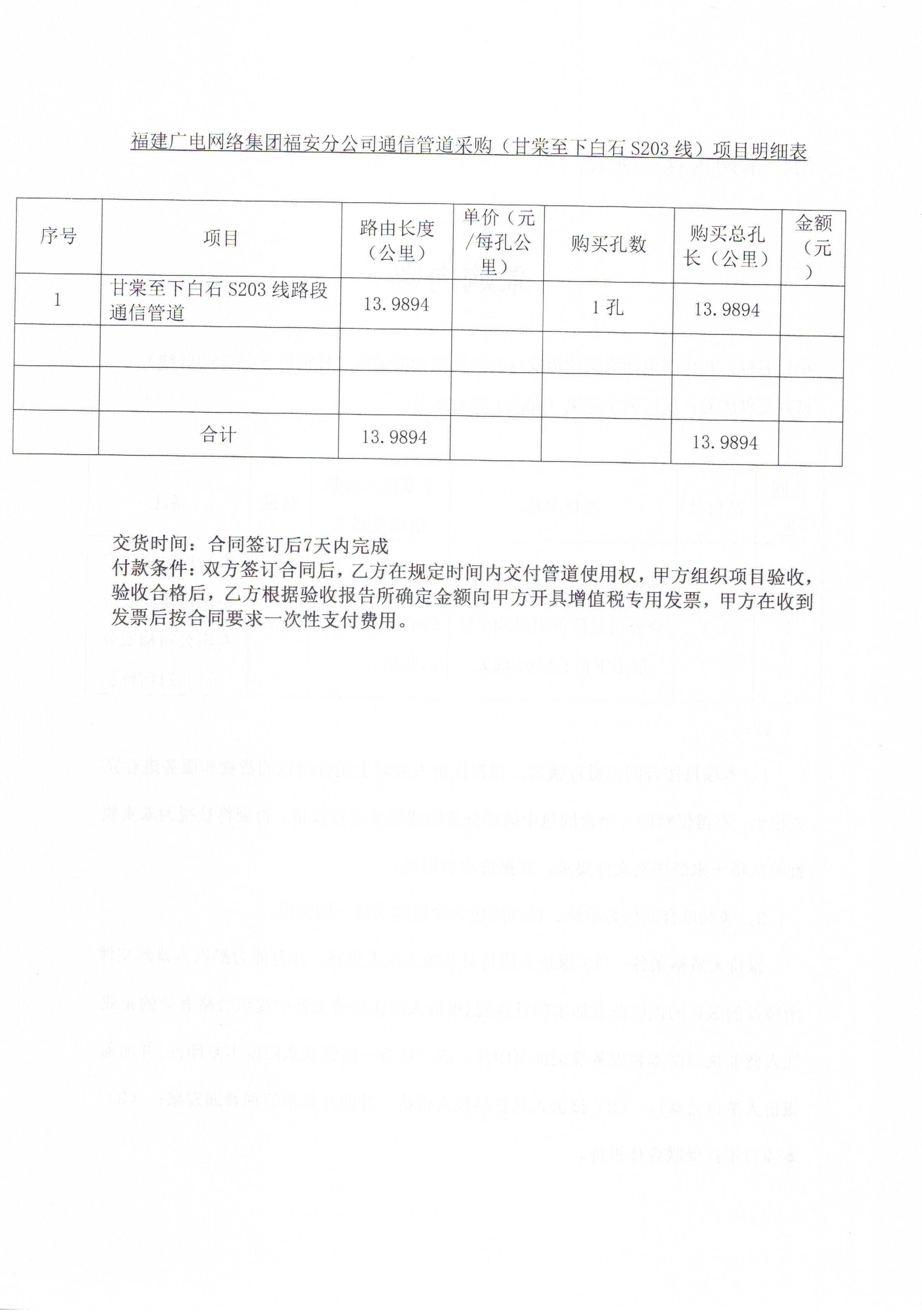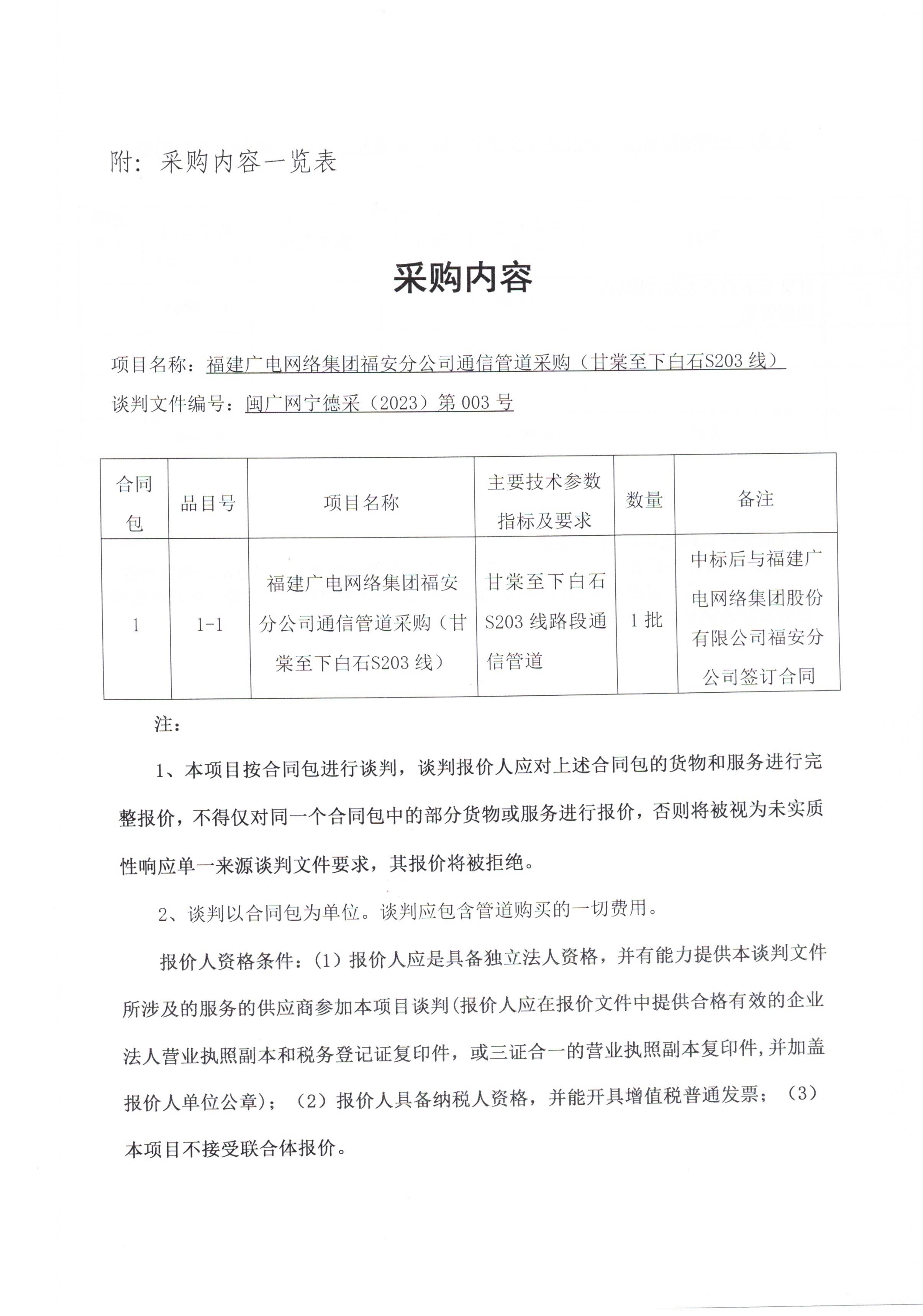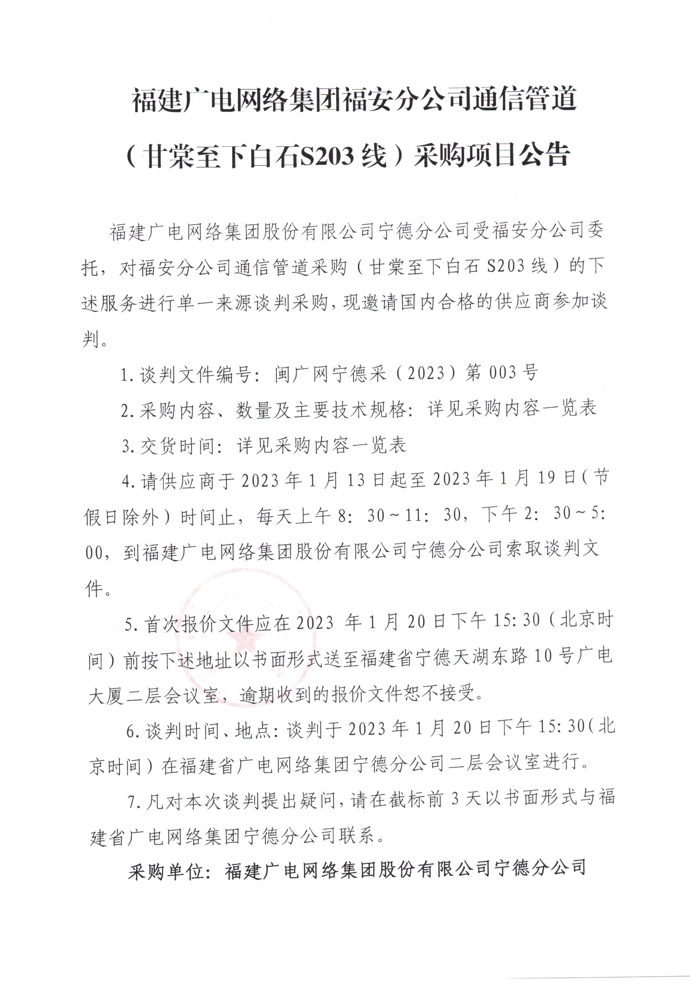 福建广电网络集团福安分公司通信管道(甘棠至下白石s203线)采购项目公告
