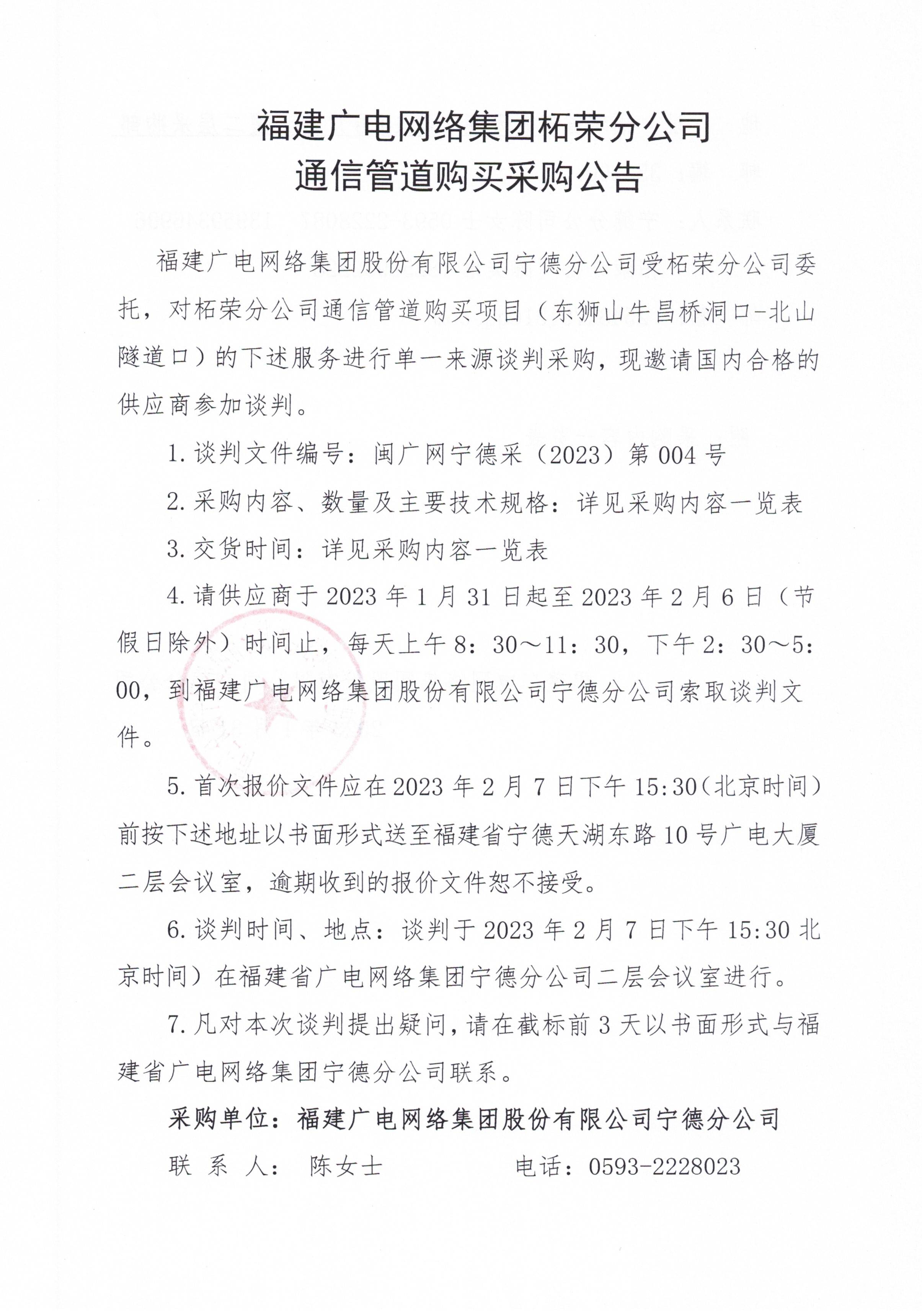 福建广电网络集团柘荣分公司通信管道购买采购公告