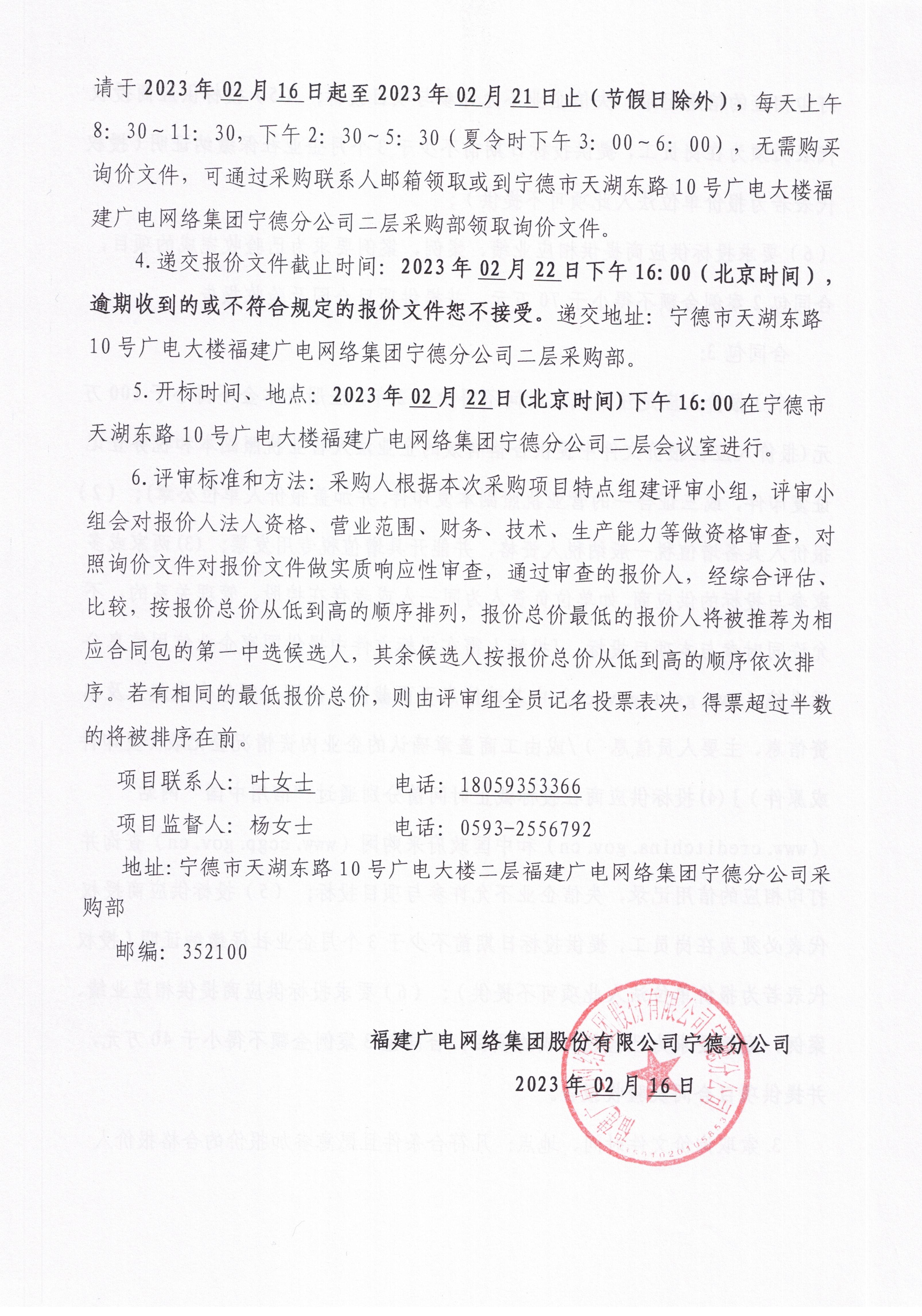 福建广电网络集团宁德分公司关于蕉城分公司视频监控建设联网应用(七期)升级改造建设项目标前询价公告)