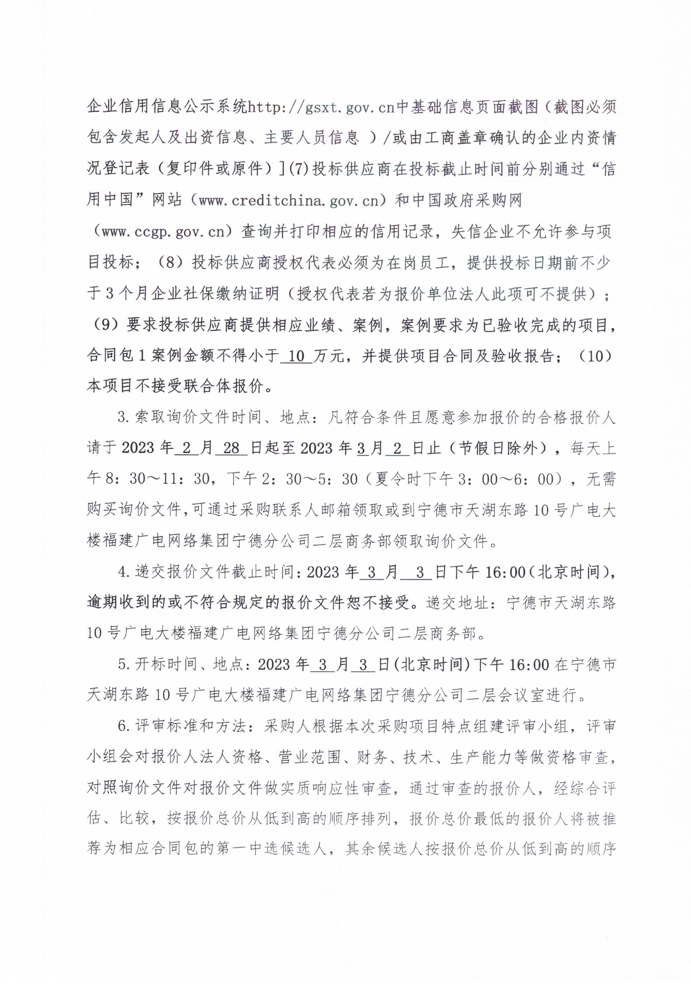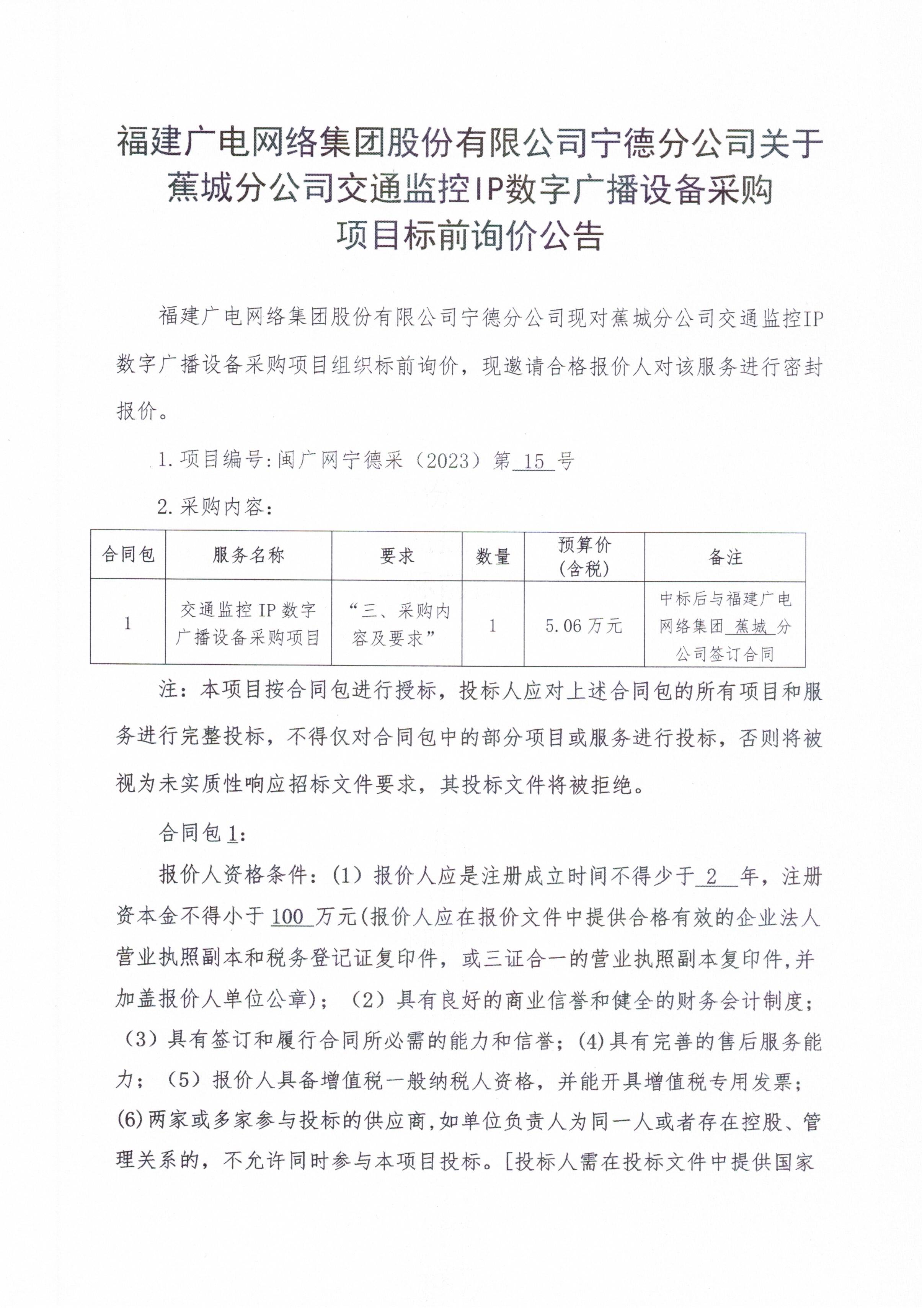 宁德分公司关于蕉城分公司交通监控IP数字广播设备采购项目标前询价公告