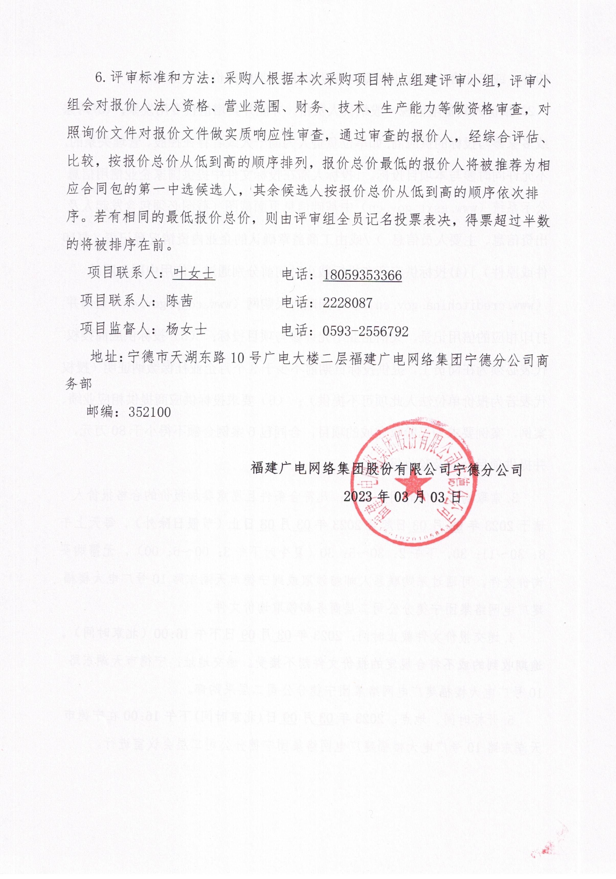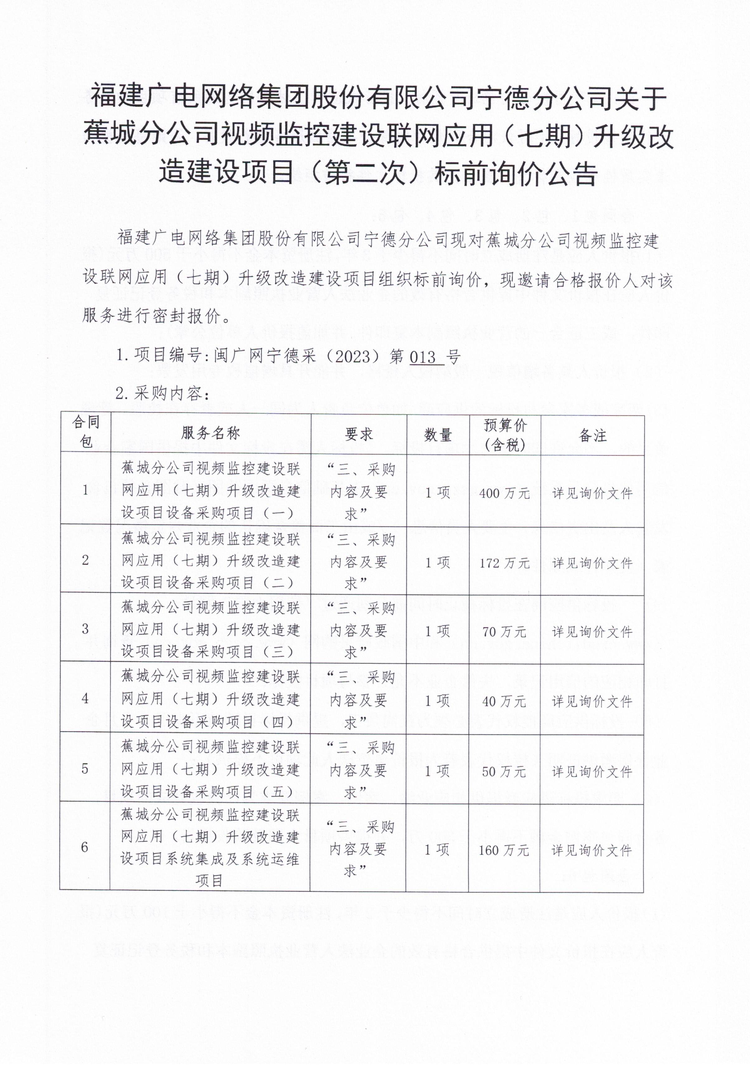 福建广电网络集团股份有限公司宁德分公司关于蕉城分公司视频监控建设联网应用(七期)升级改造建设项目(第二次)标前询价公告