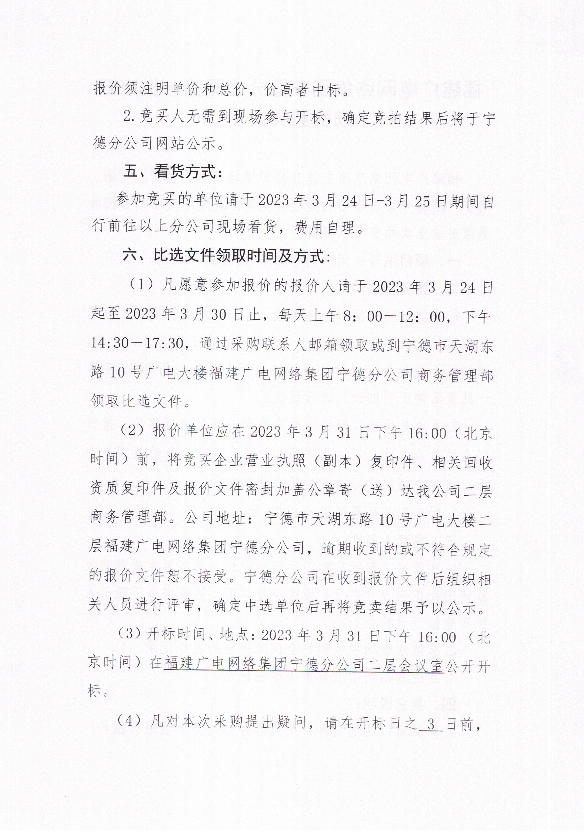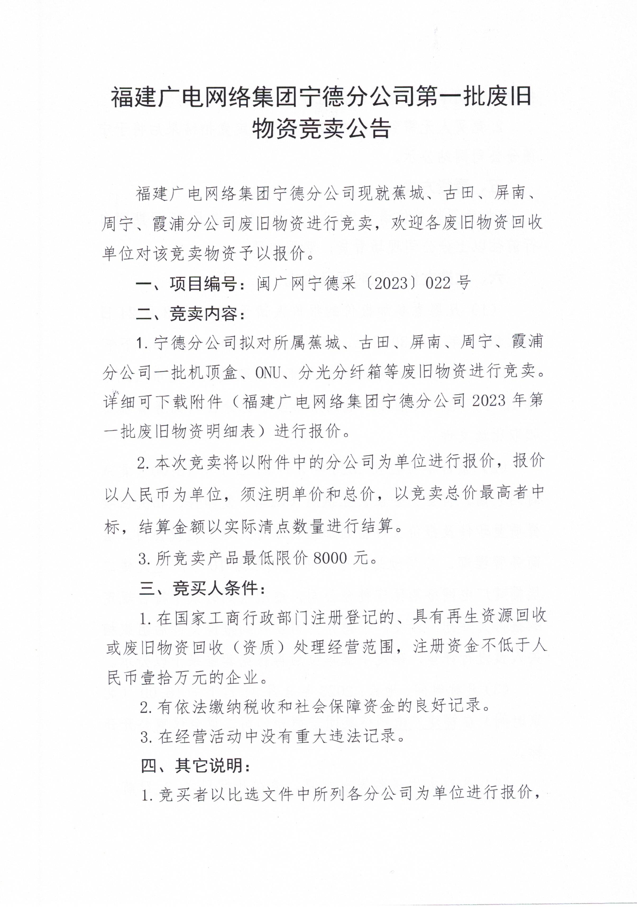福建广电网络集团宁德分公司第一批废旧物资竞卖公告