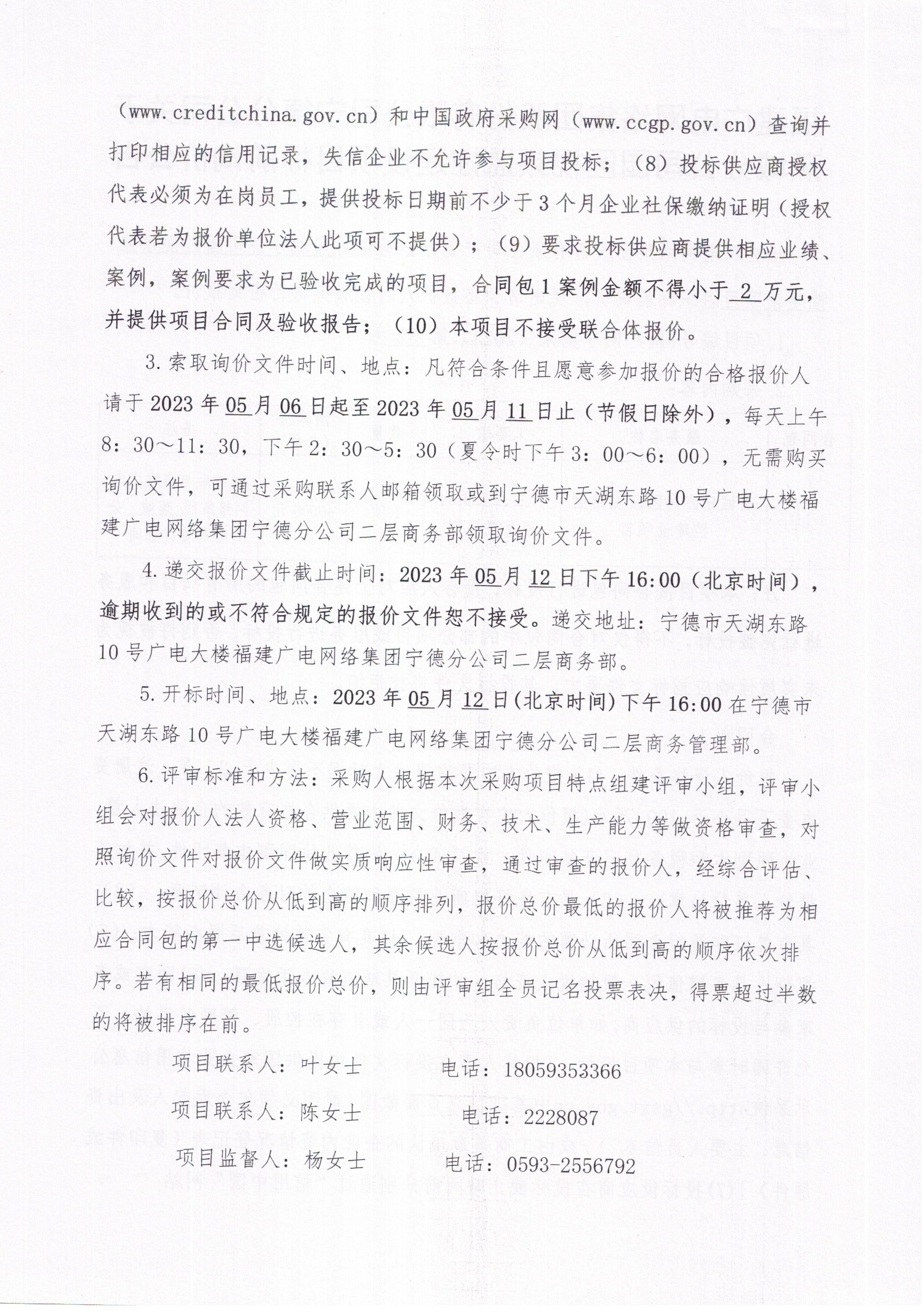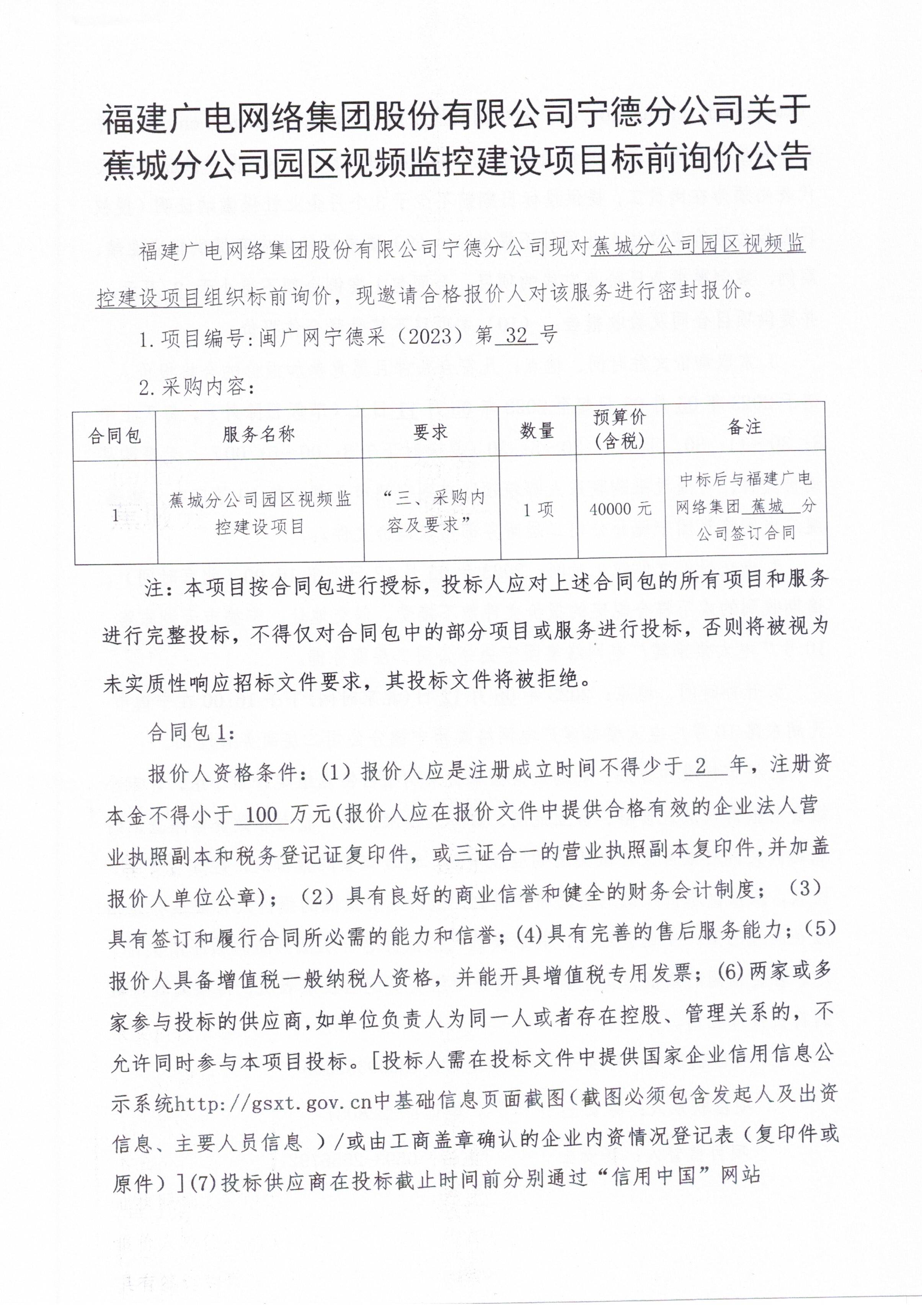 福建广电网络集团股份有限公司宁德分公司关于蕉城分公司园区视频监控建设项目公告