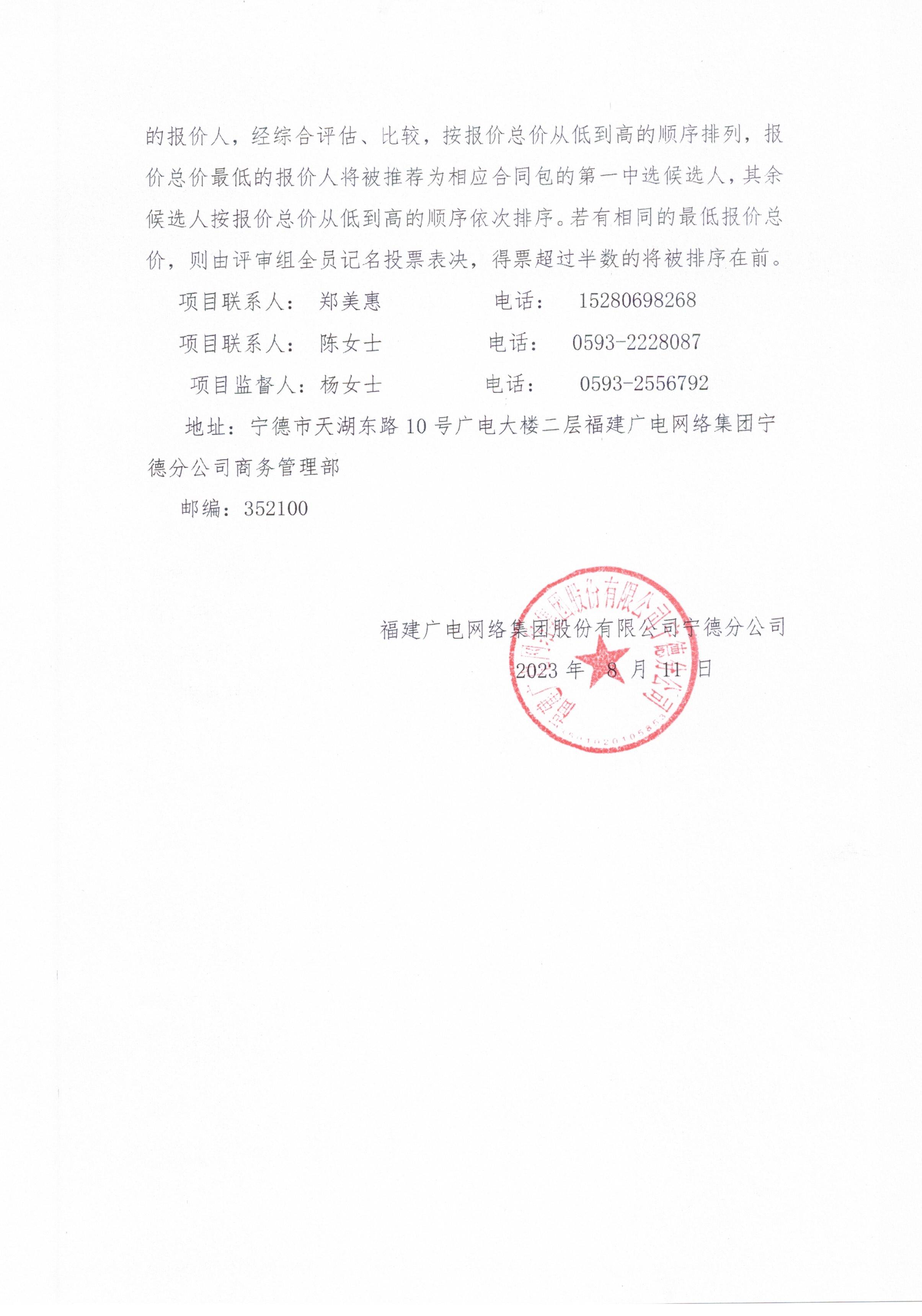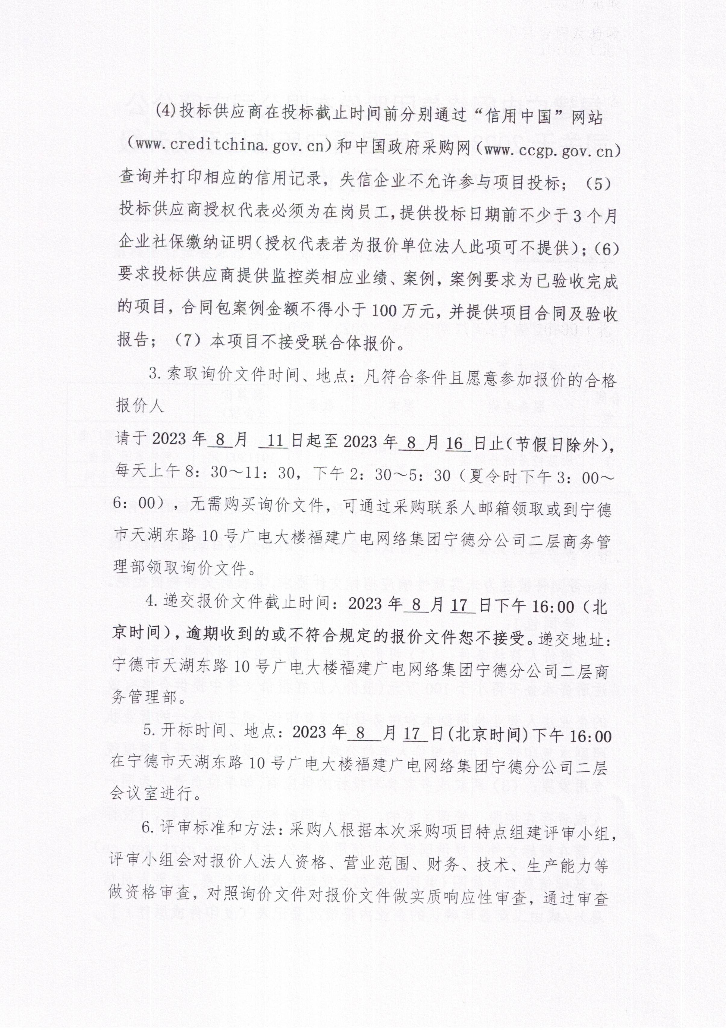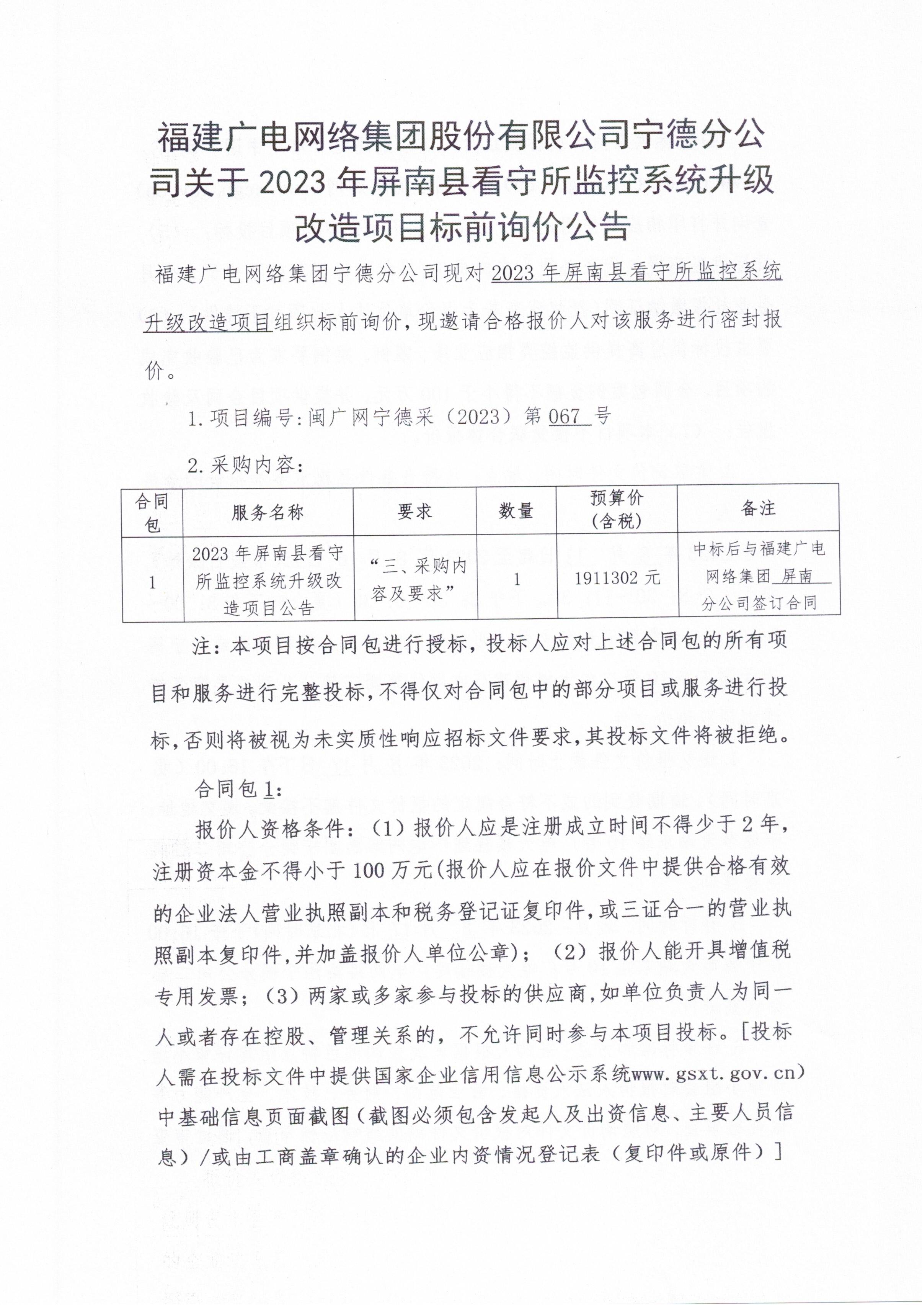 福建广电网络集团股份有限公司宁德分公司关于2023年屏南县看守所监控系统升级改造项目标前询价公告