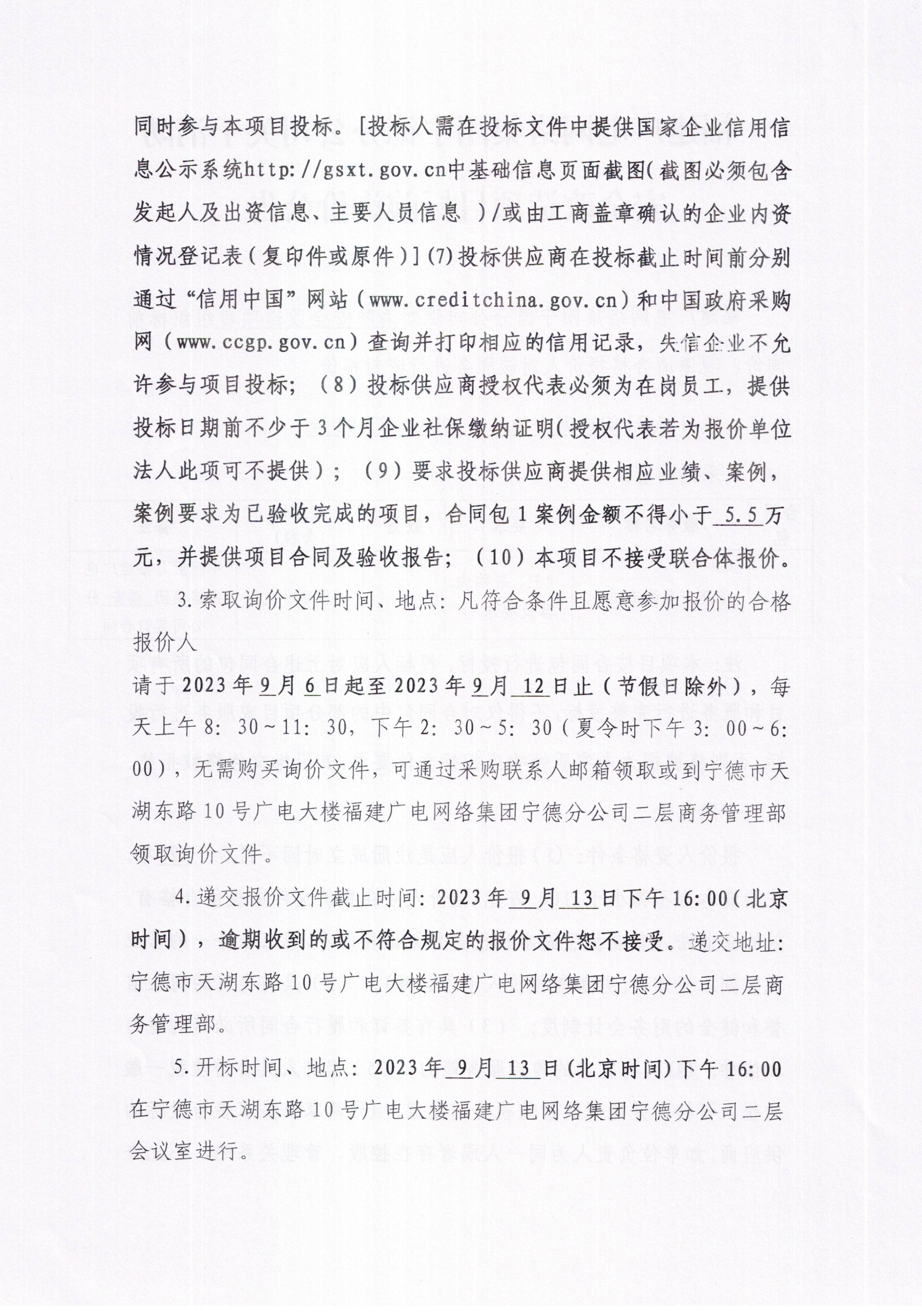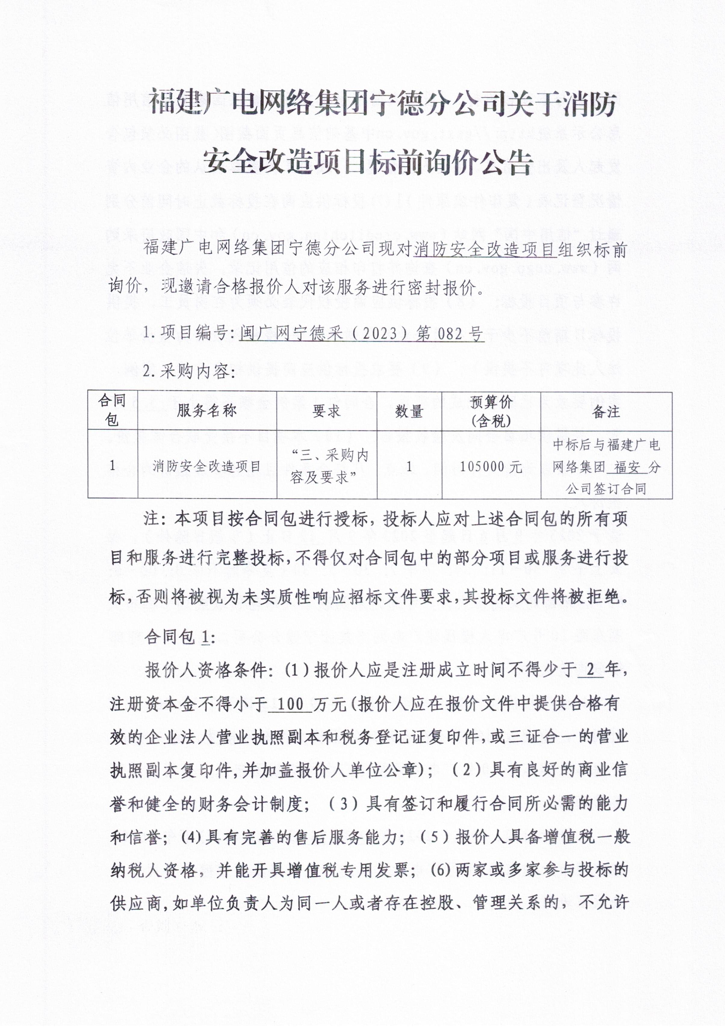福建广电网络集团宁德分公司关于消防安全改造项目标前询价公告