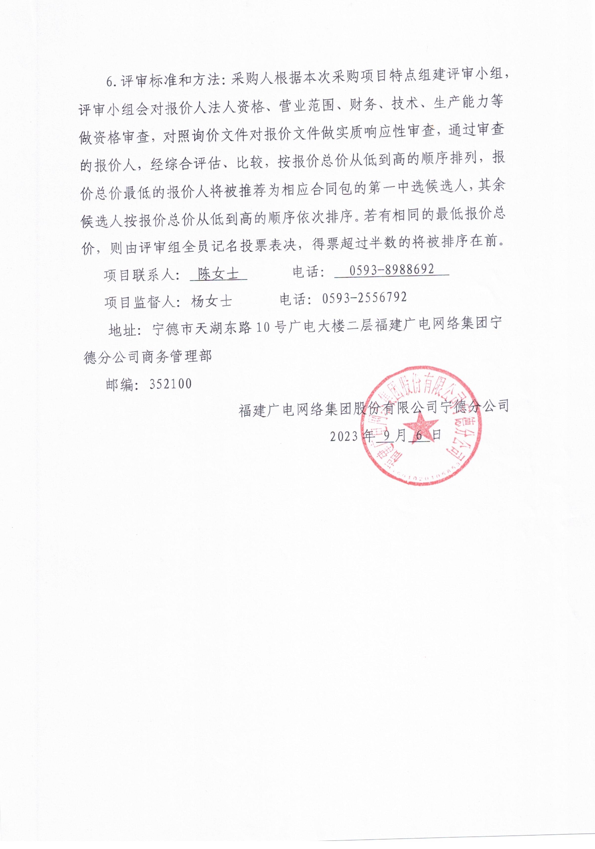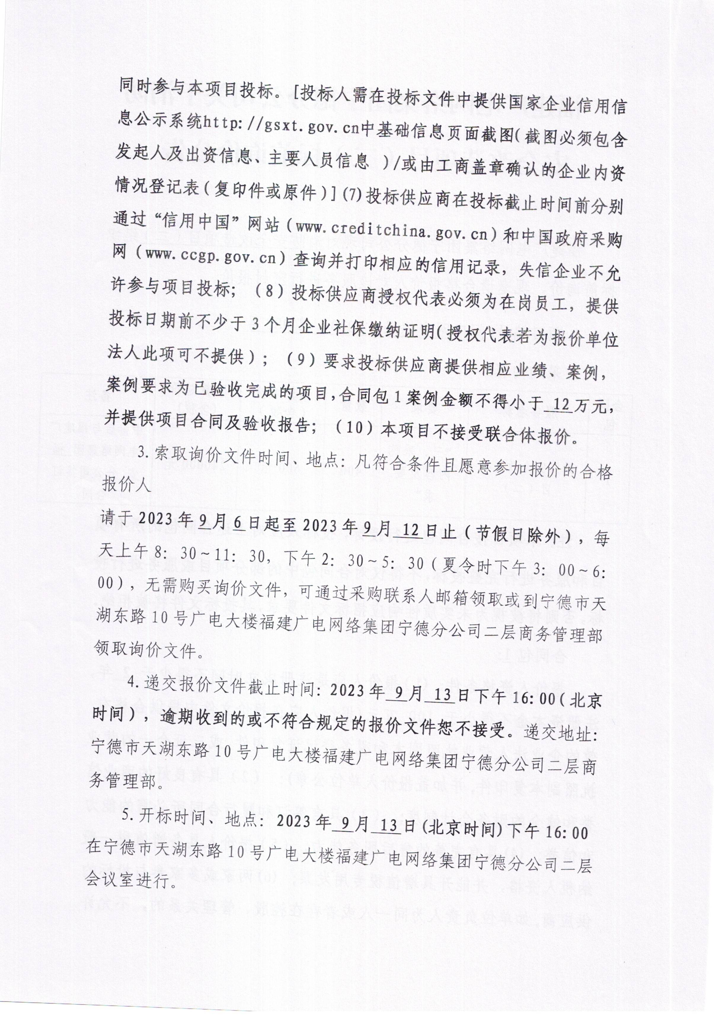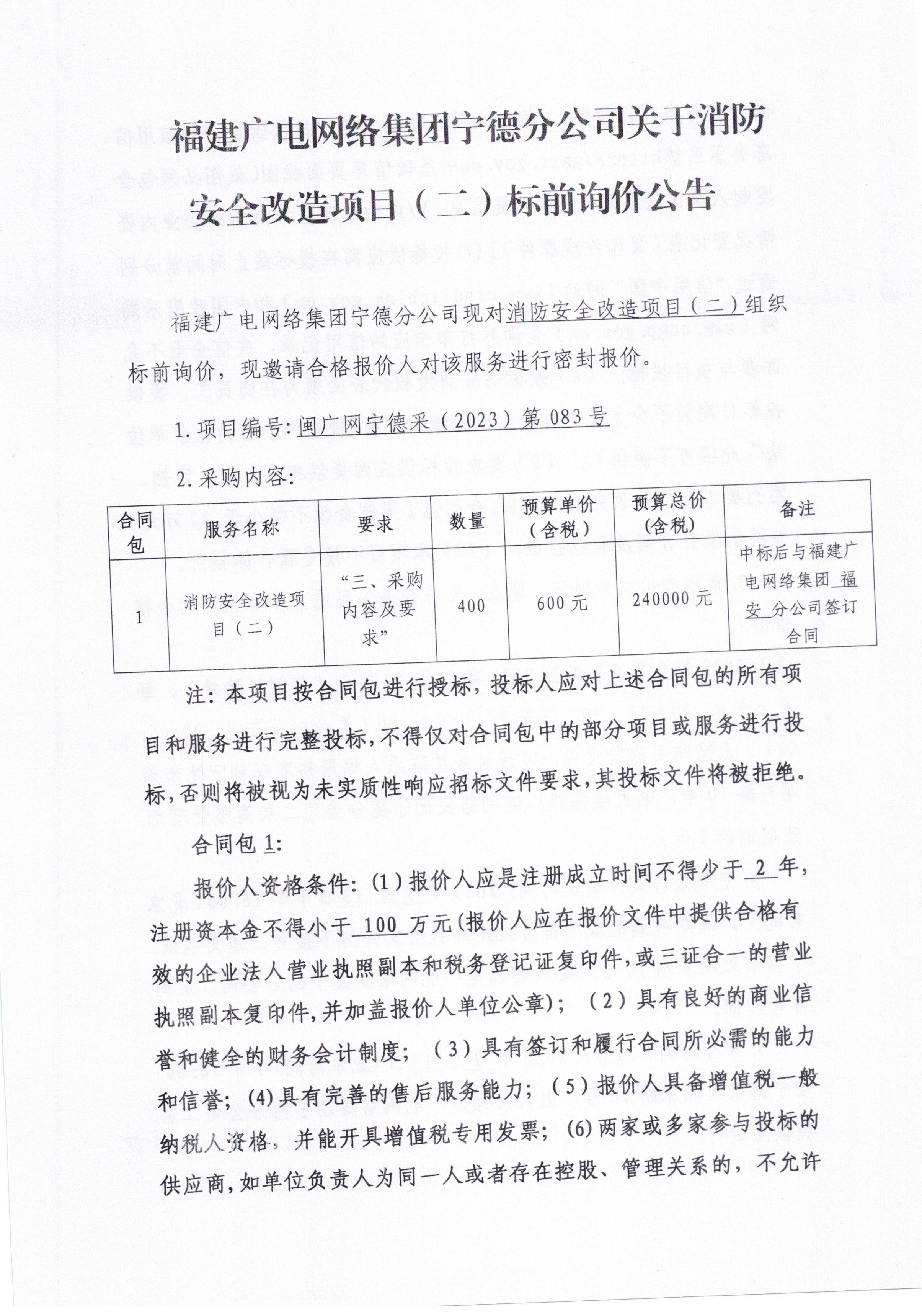福建广电网络集团宁德分公司关于消防安全改造项目(二)标前询价公告