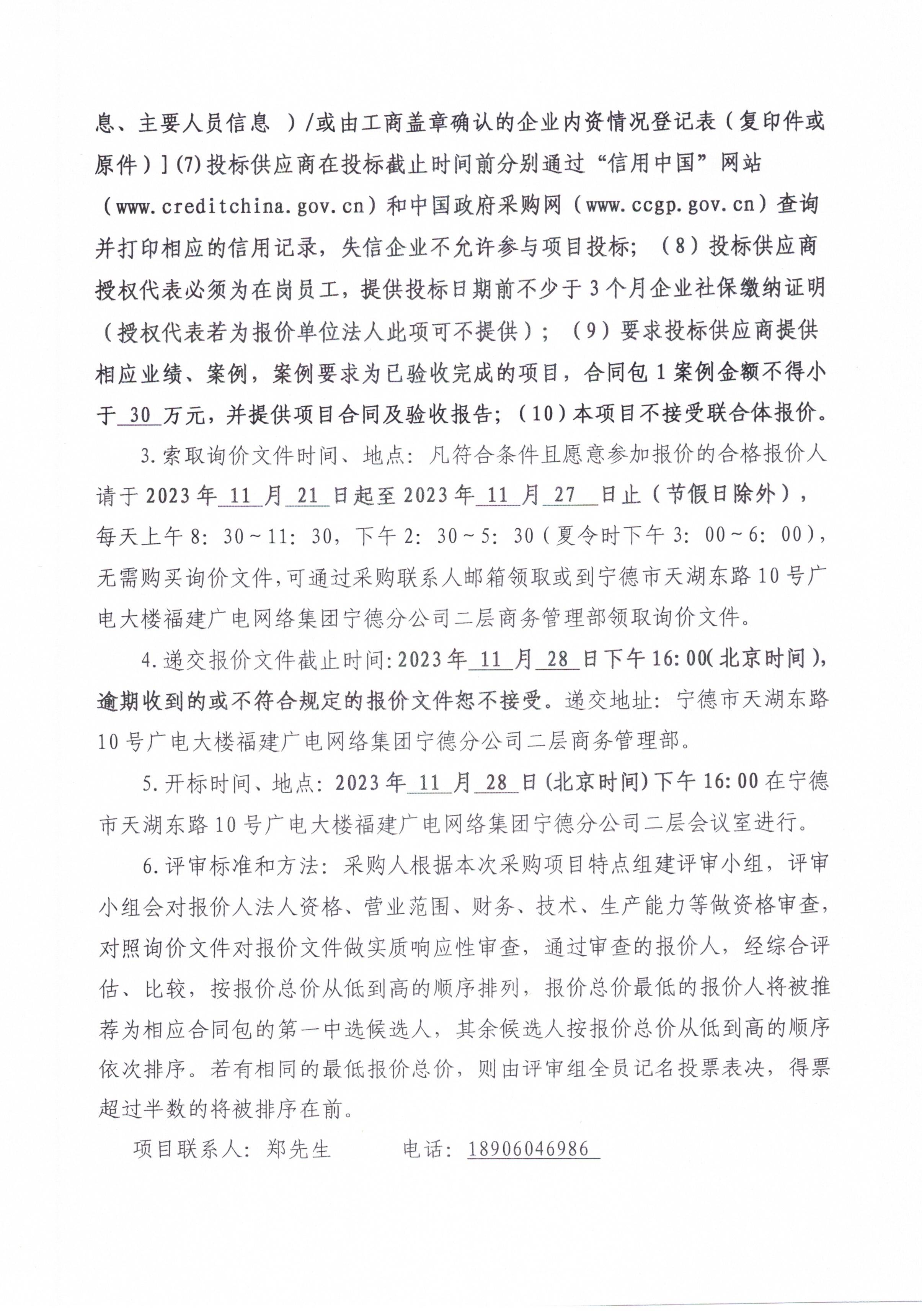 2023年周宁分公司周宁县李墩不锈钢厂信息化服务采购项目标前询价公告