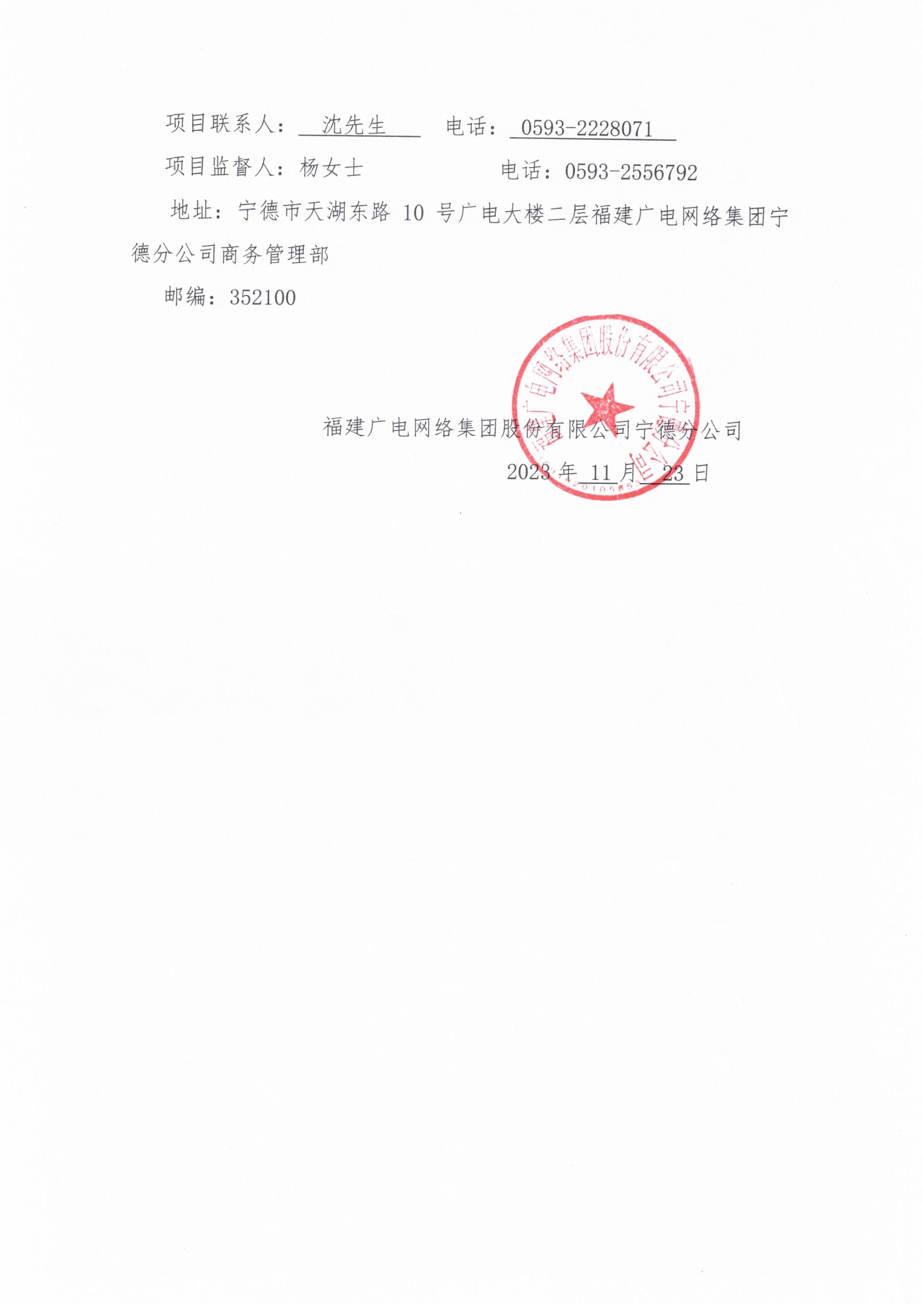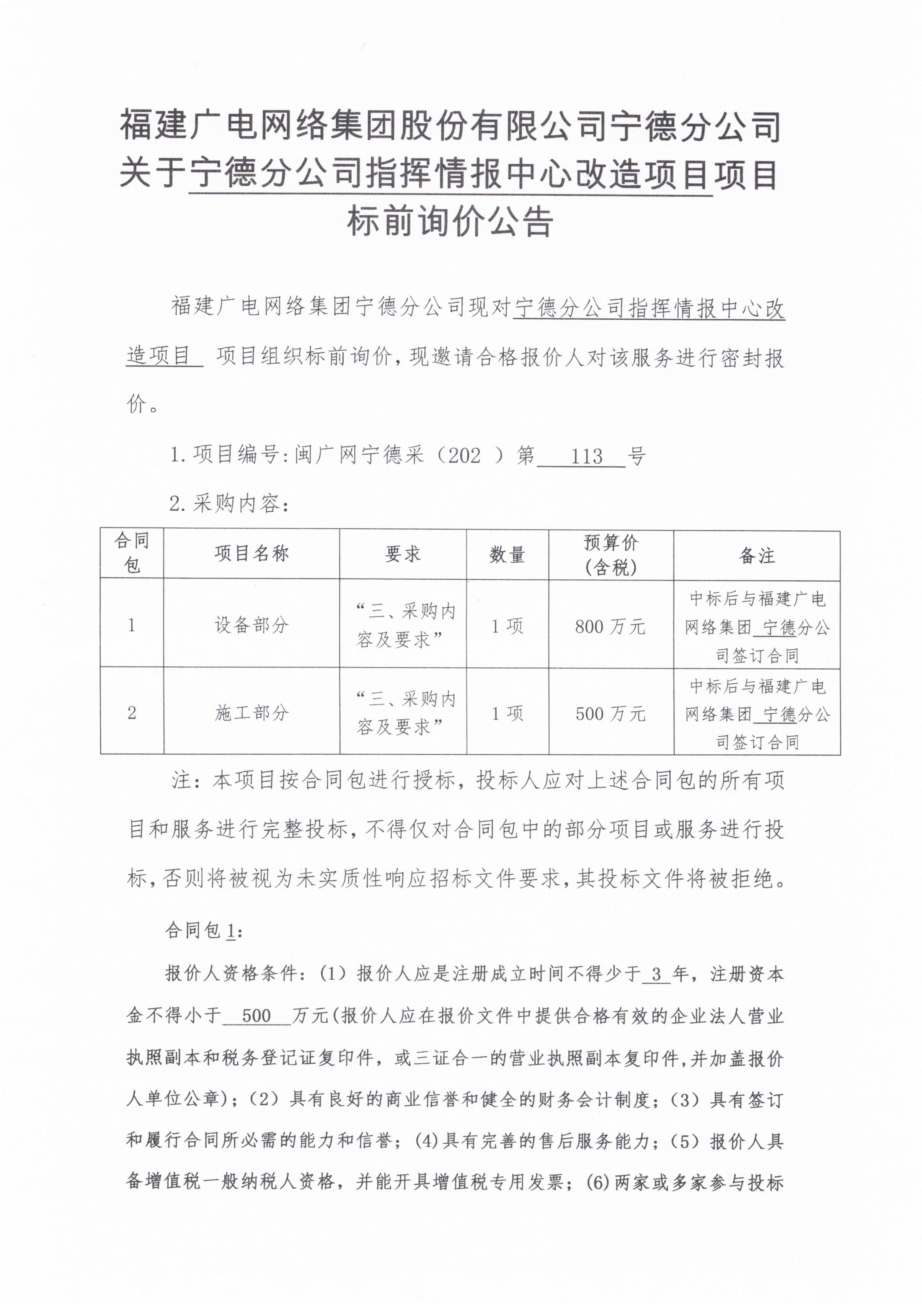 福建广电网络集团股份有限公司宁德分公司指挥情报中心改造项目标前询价公告