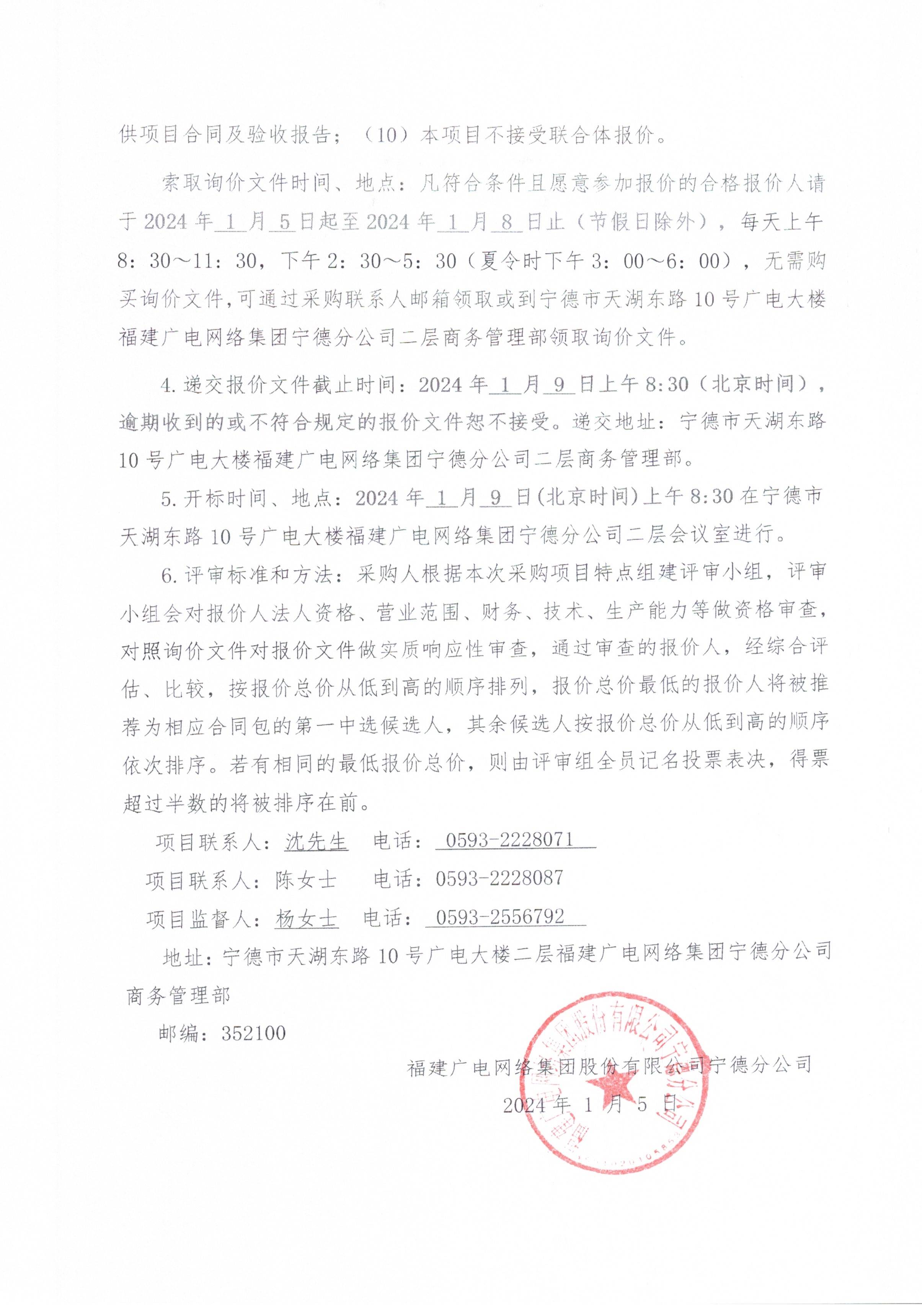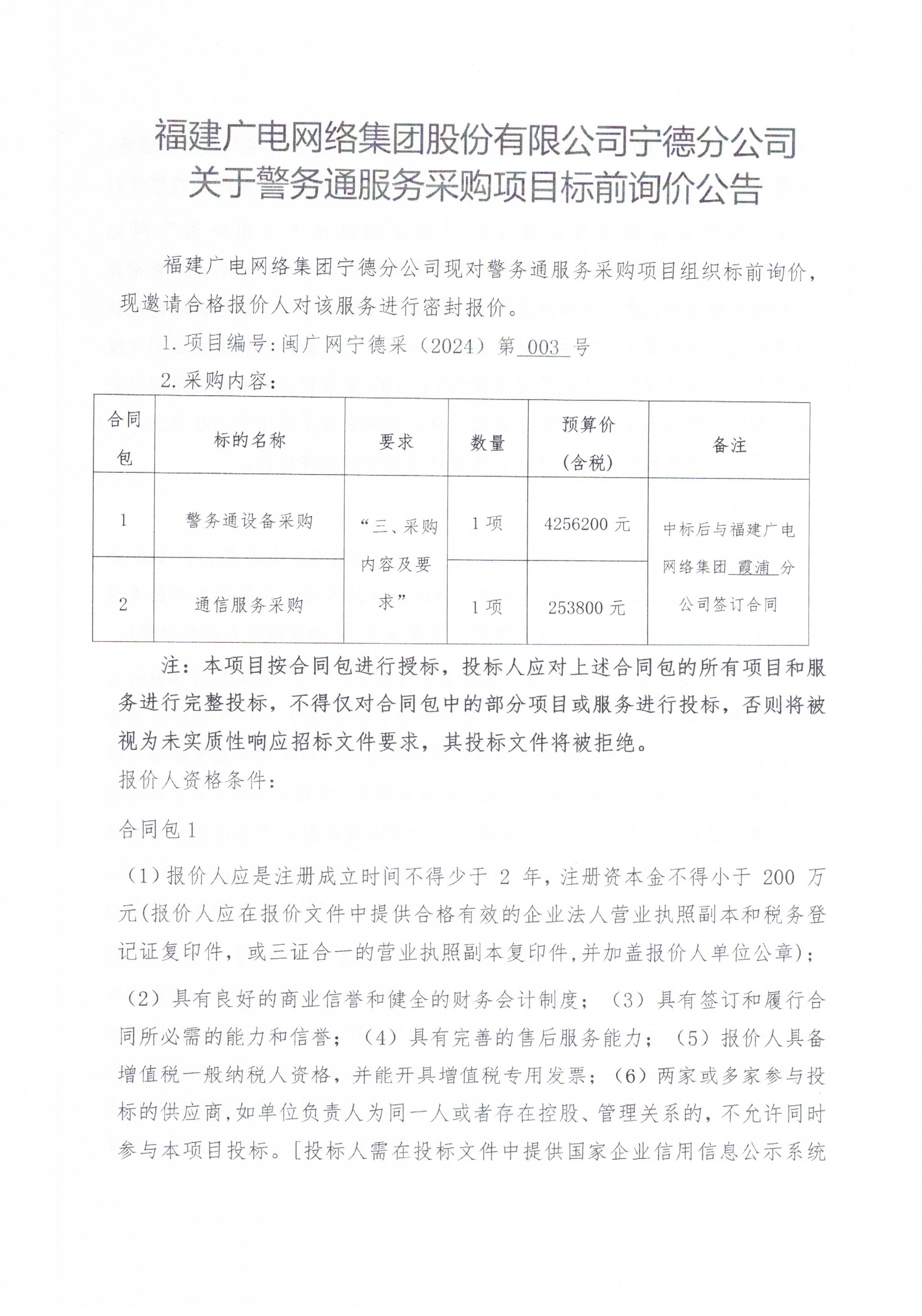 福建广电网络集团股份有限公司宁德分公司关于警务通服务采购项目标前询价公告