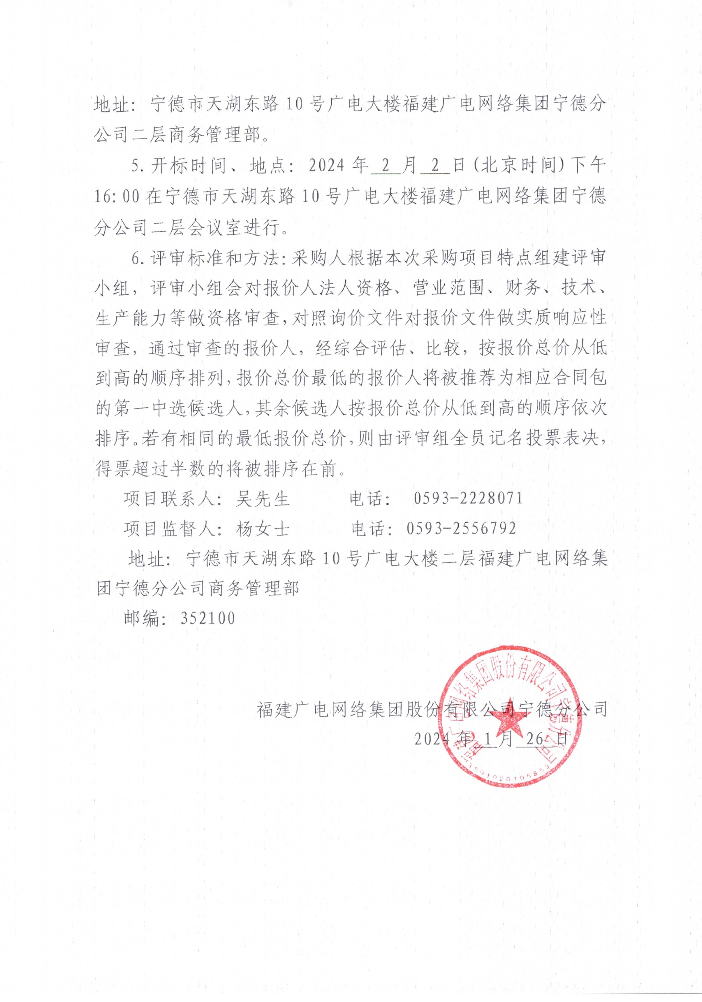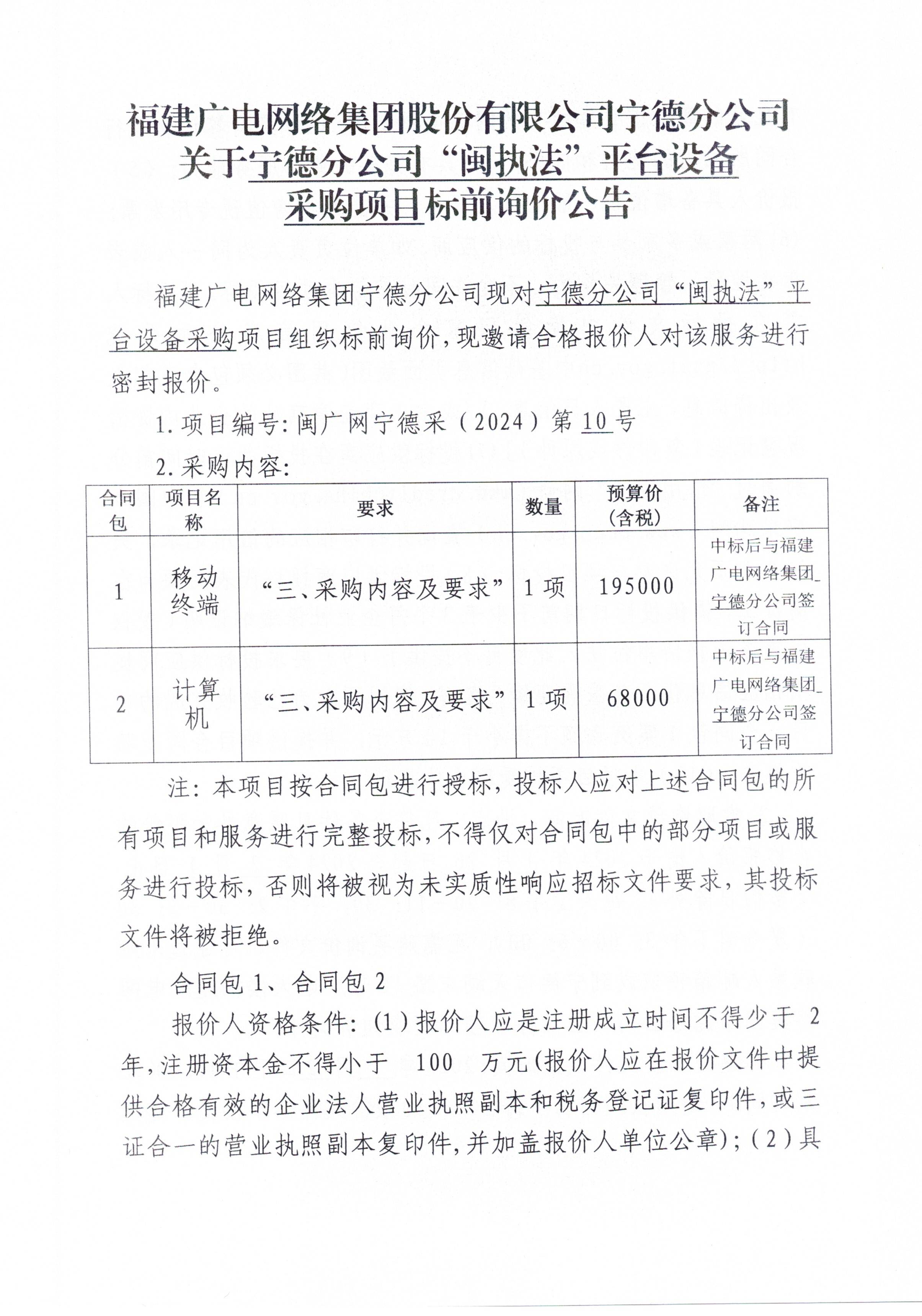 福建广电网络集团股份有限公司宁德分公司“闽执法”平台设备采购项目标前询价公告