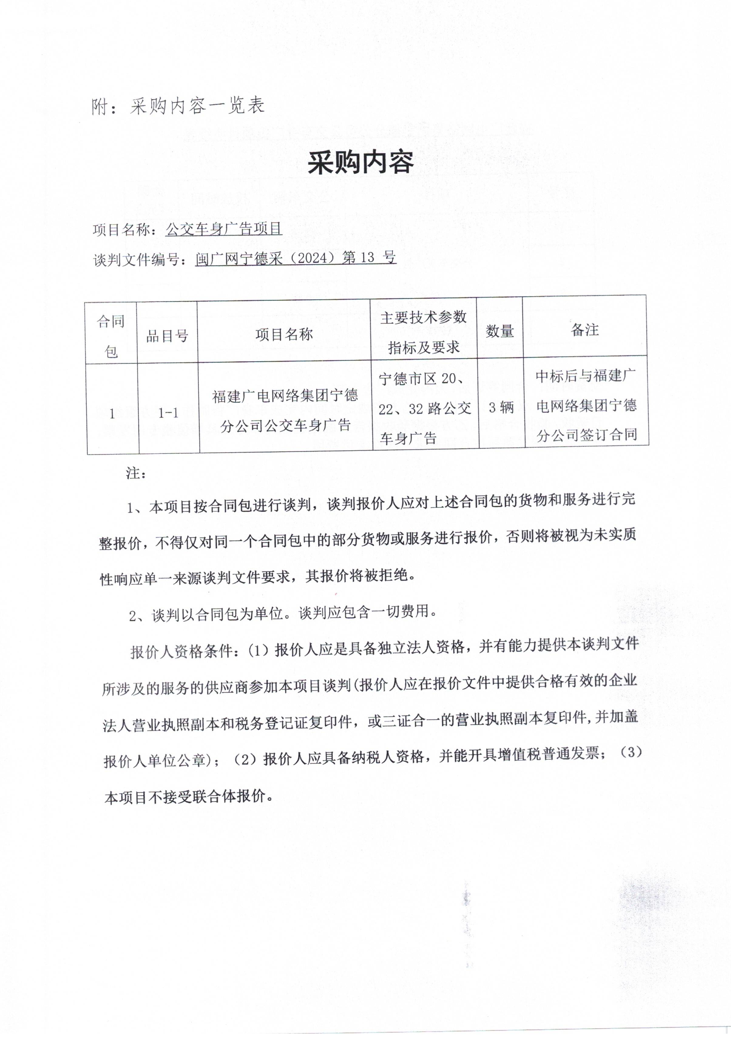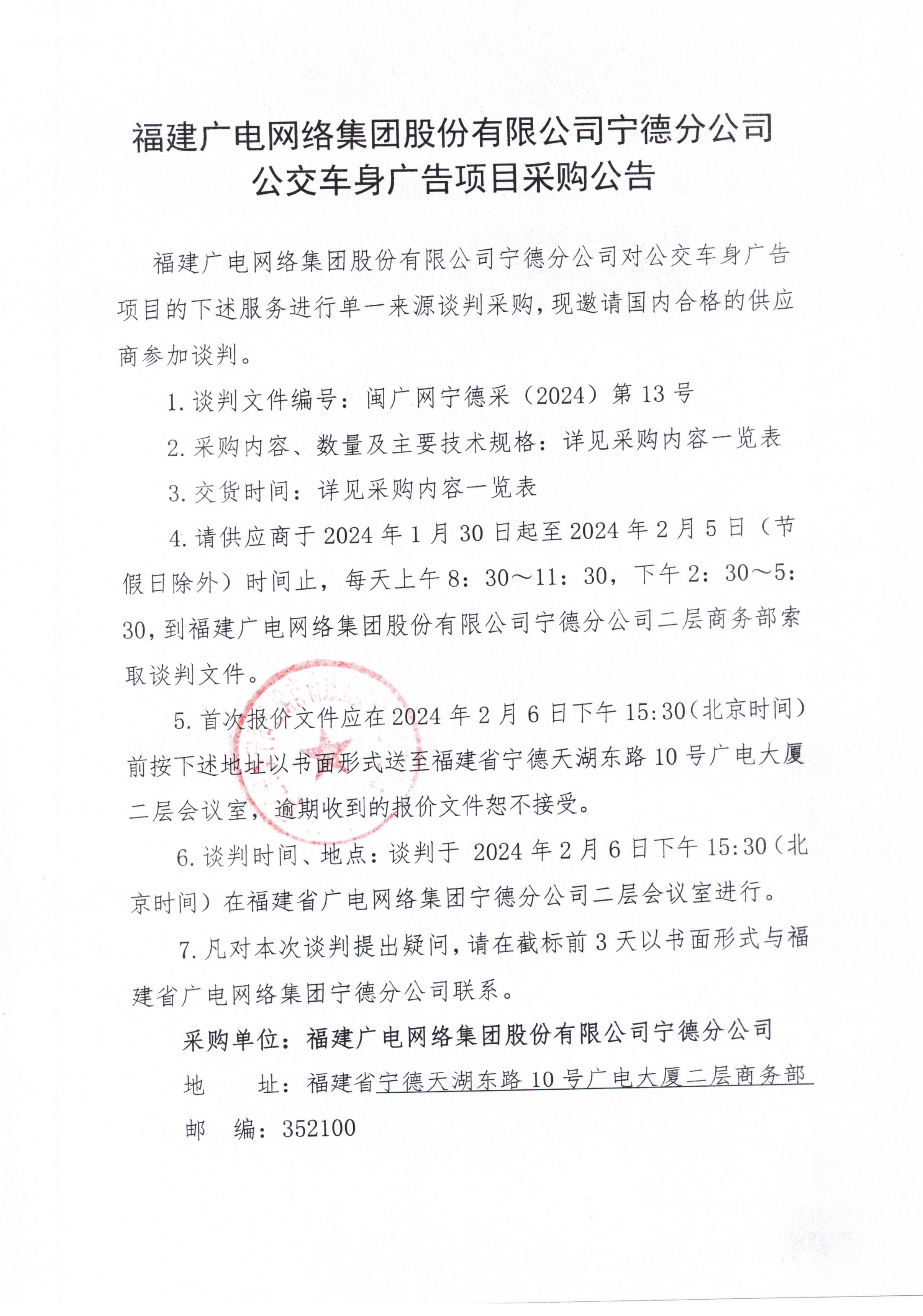 福建广电网络集团股份有限公司宁德分公司公交车身广告项目采购公告
