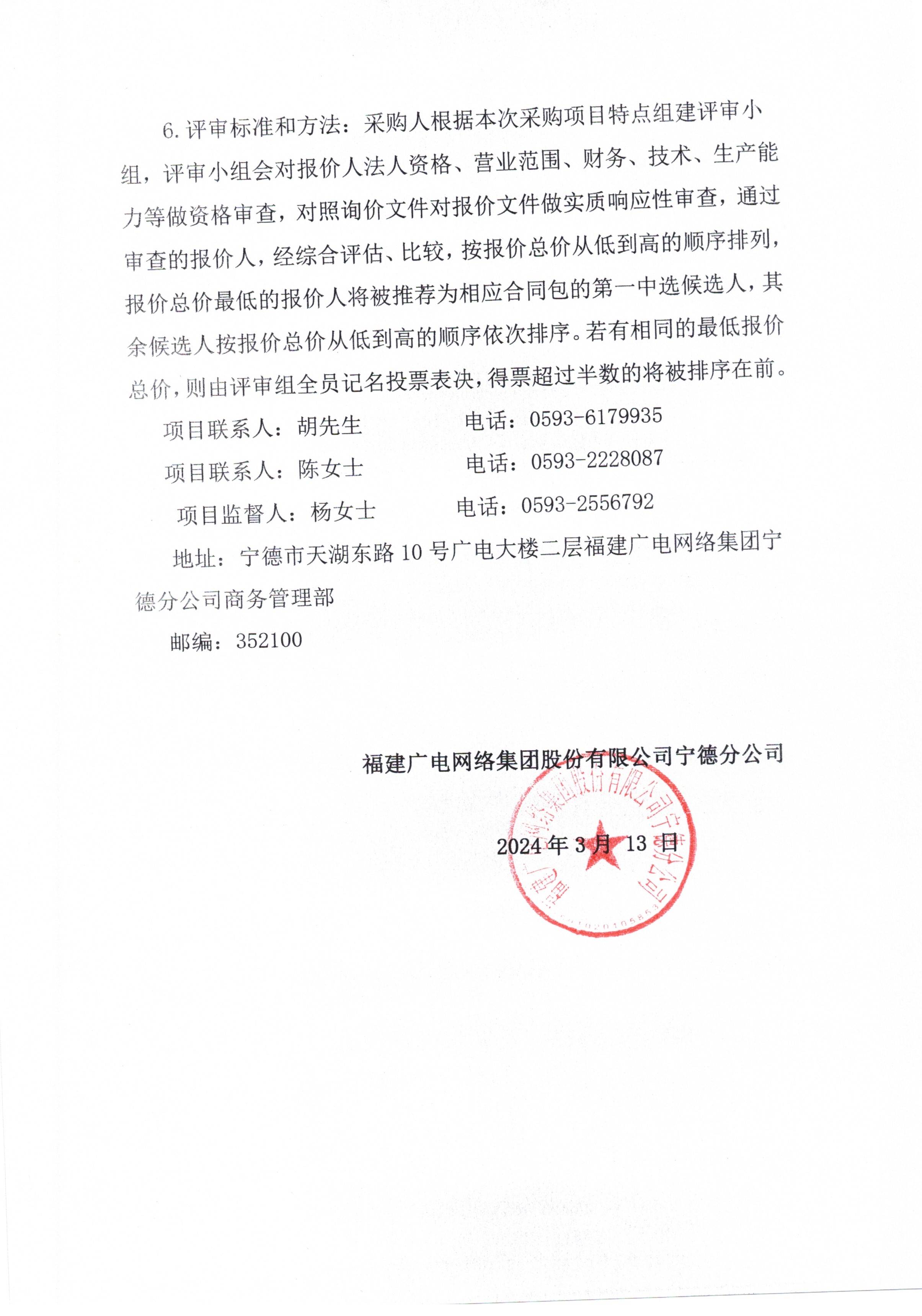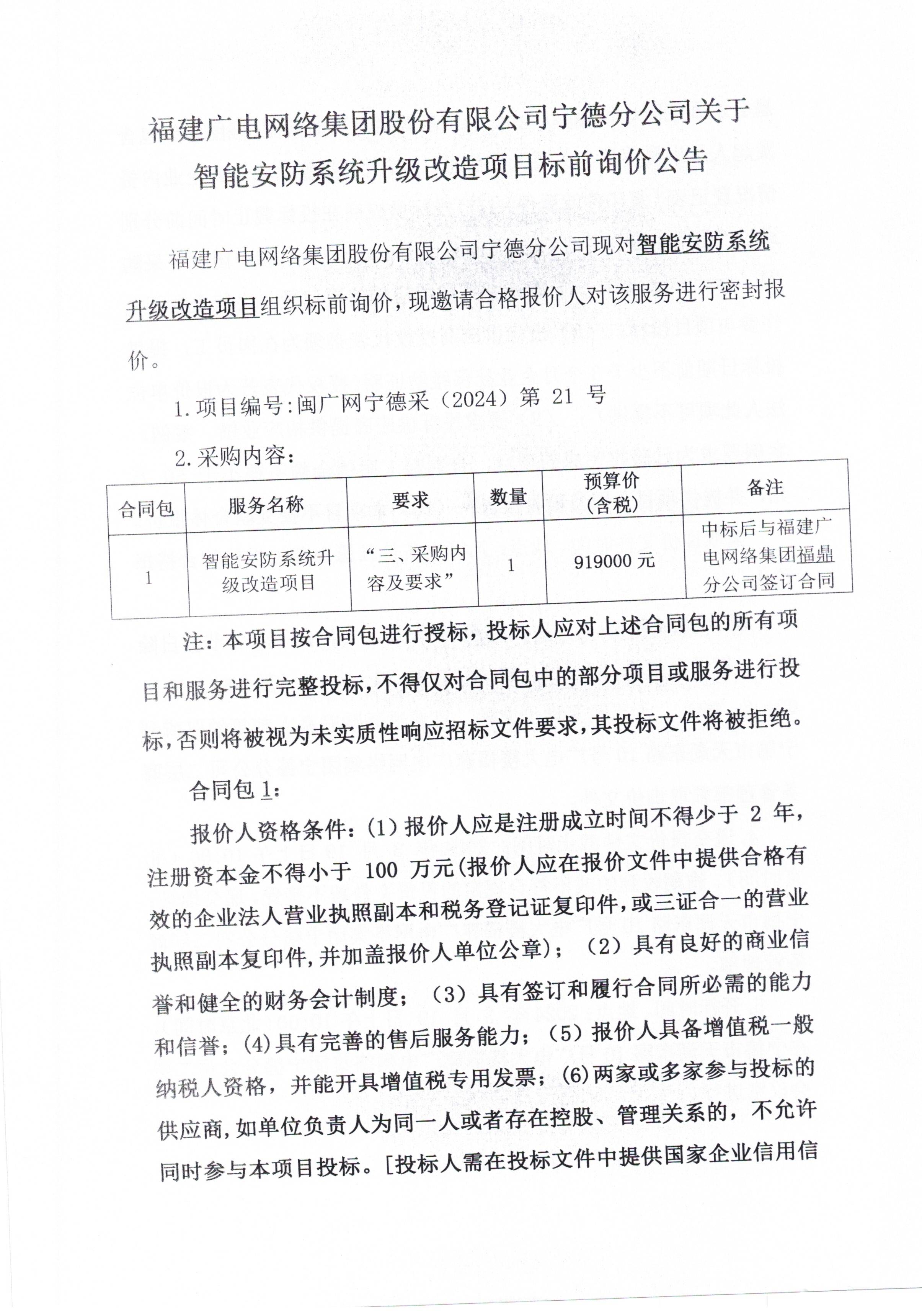 福建广电网络集团福鼎分公司关于智能安防系统升级改造项目标前询价公告