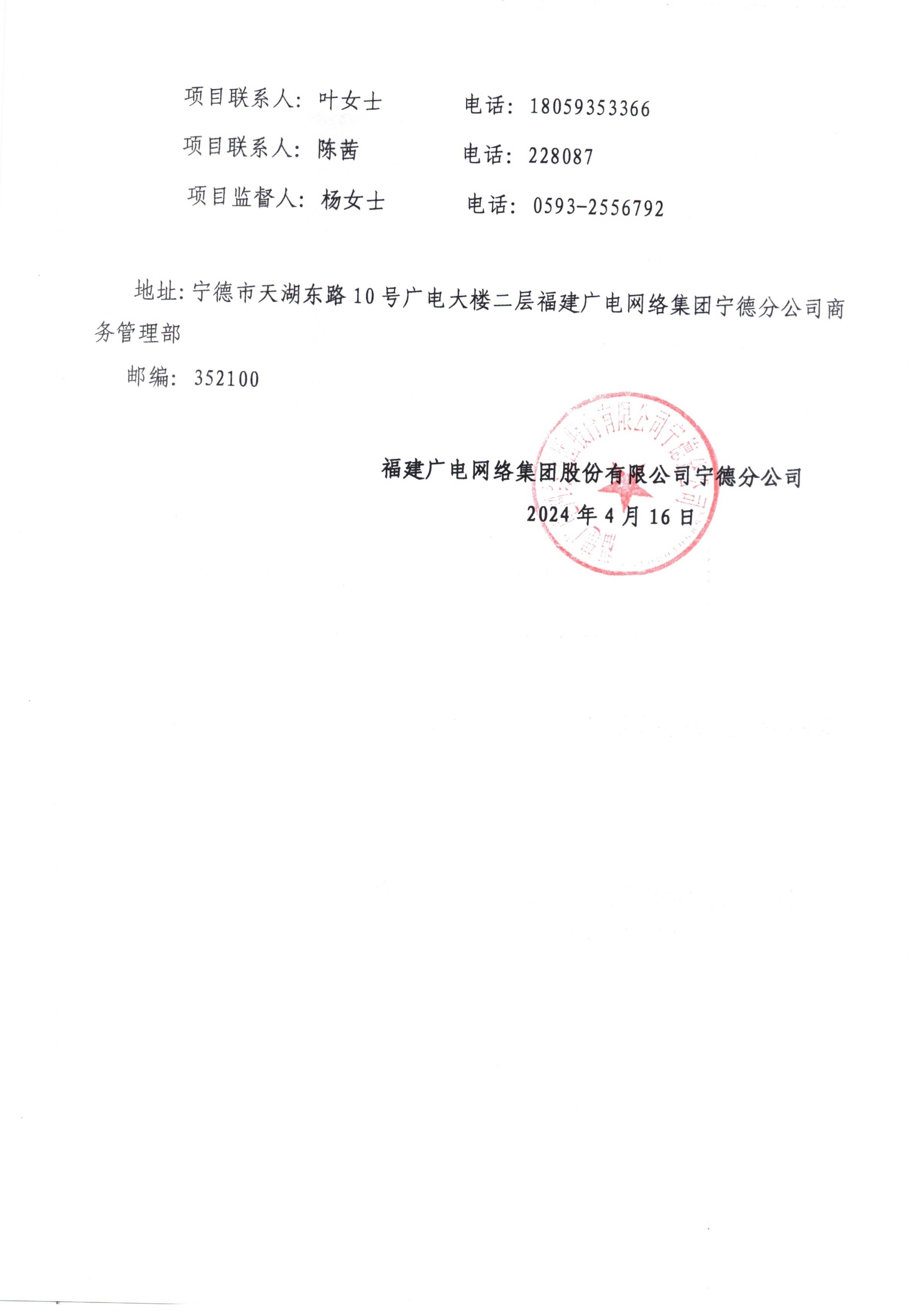 福建广电网络集团蕉城分公司旧自来水厂和取水口的探头及相关配件采购安装项目