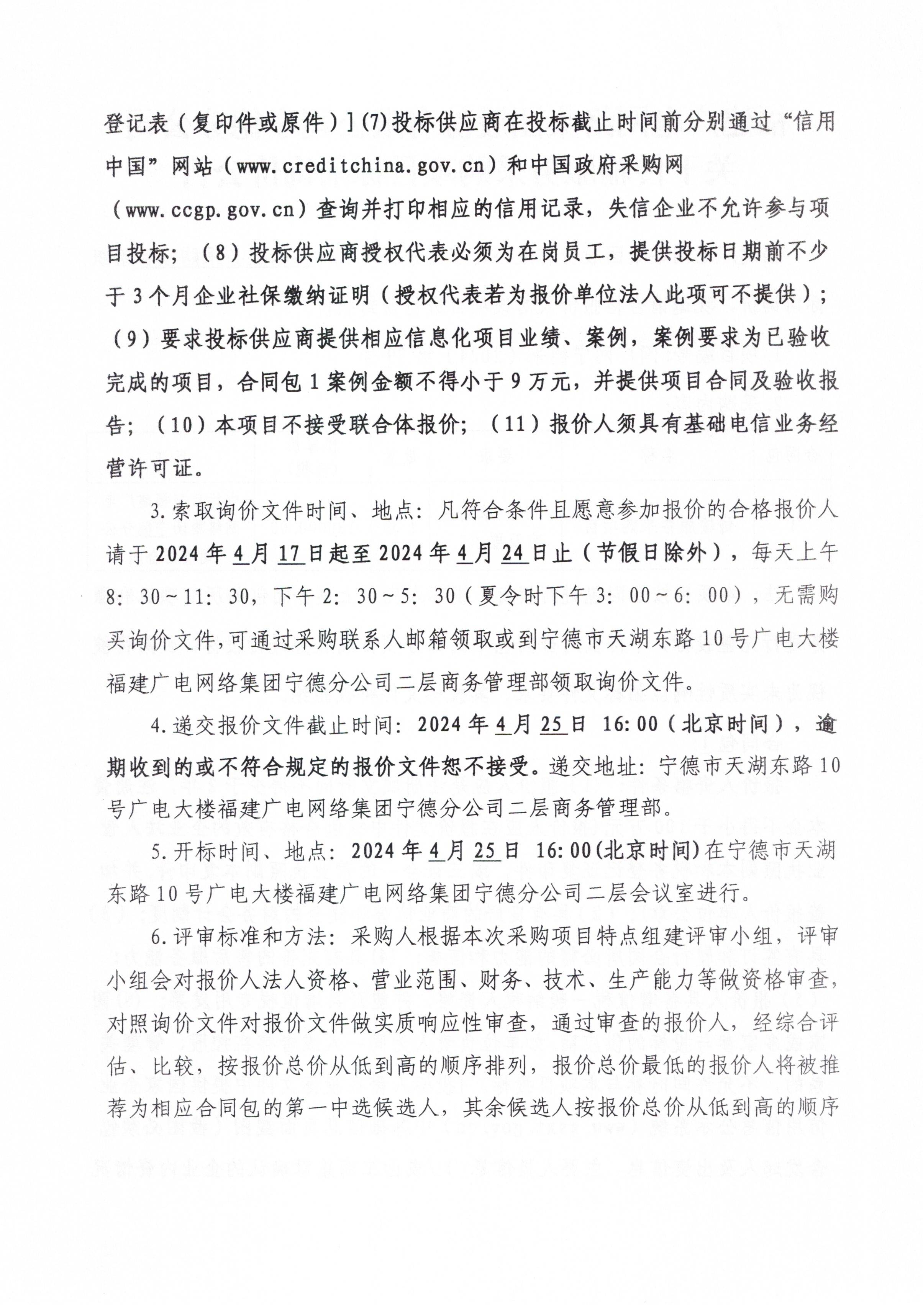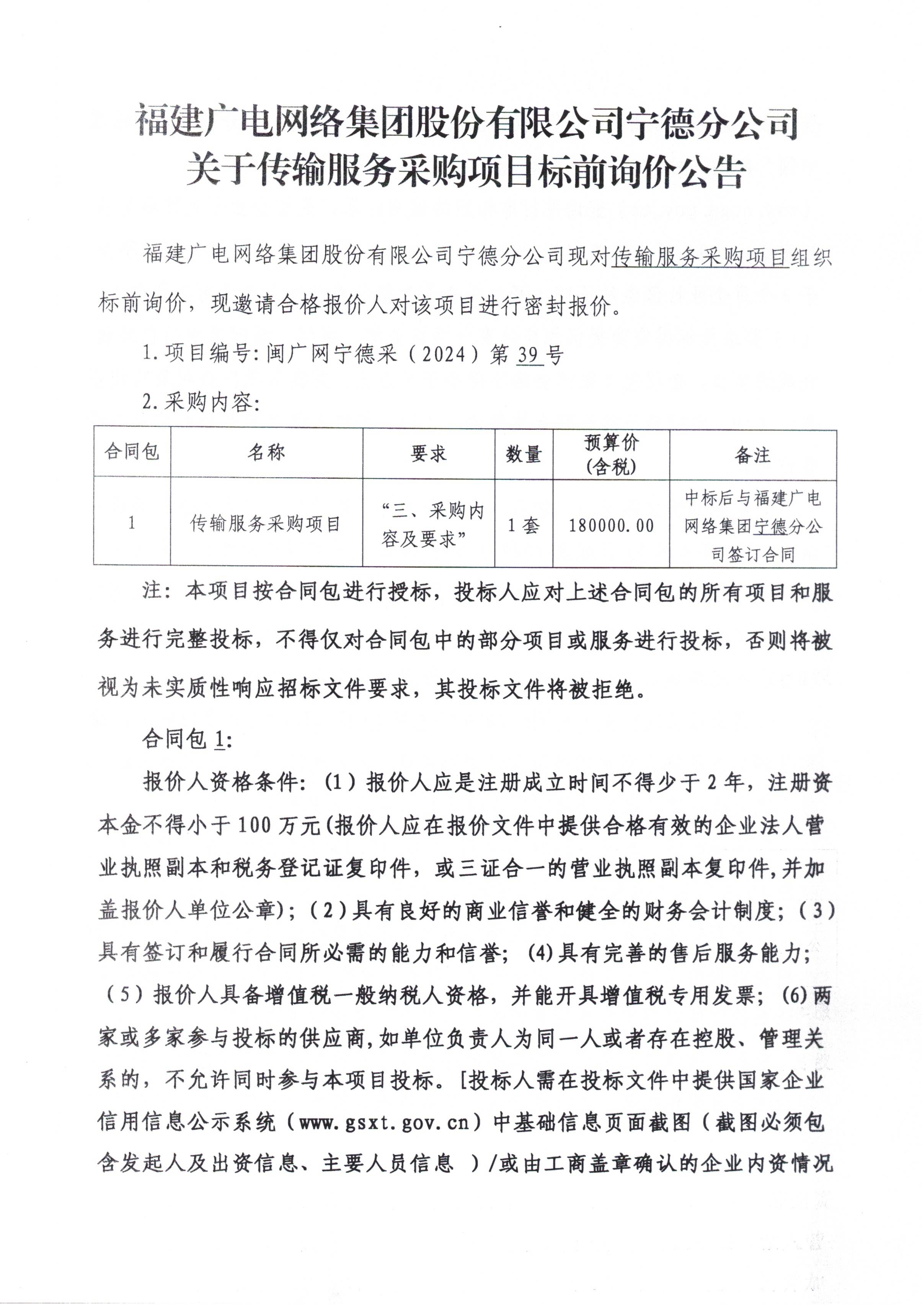 福建广电网络集团股份有限公司宁德分公司关于传输服务采购项目公告