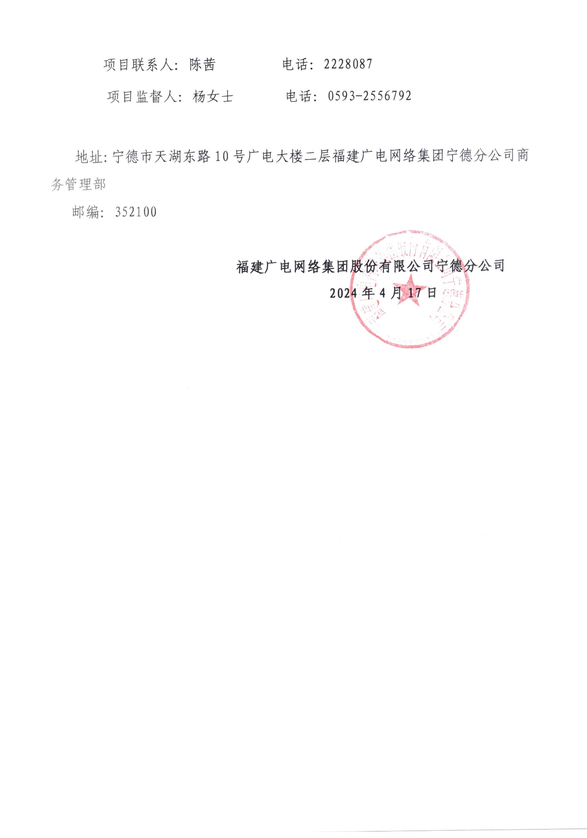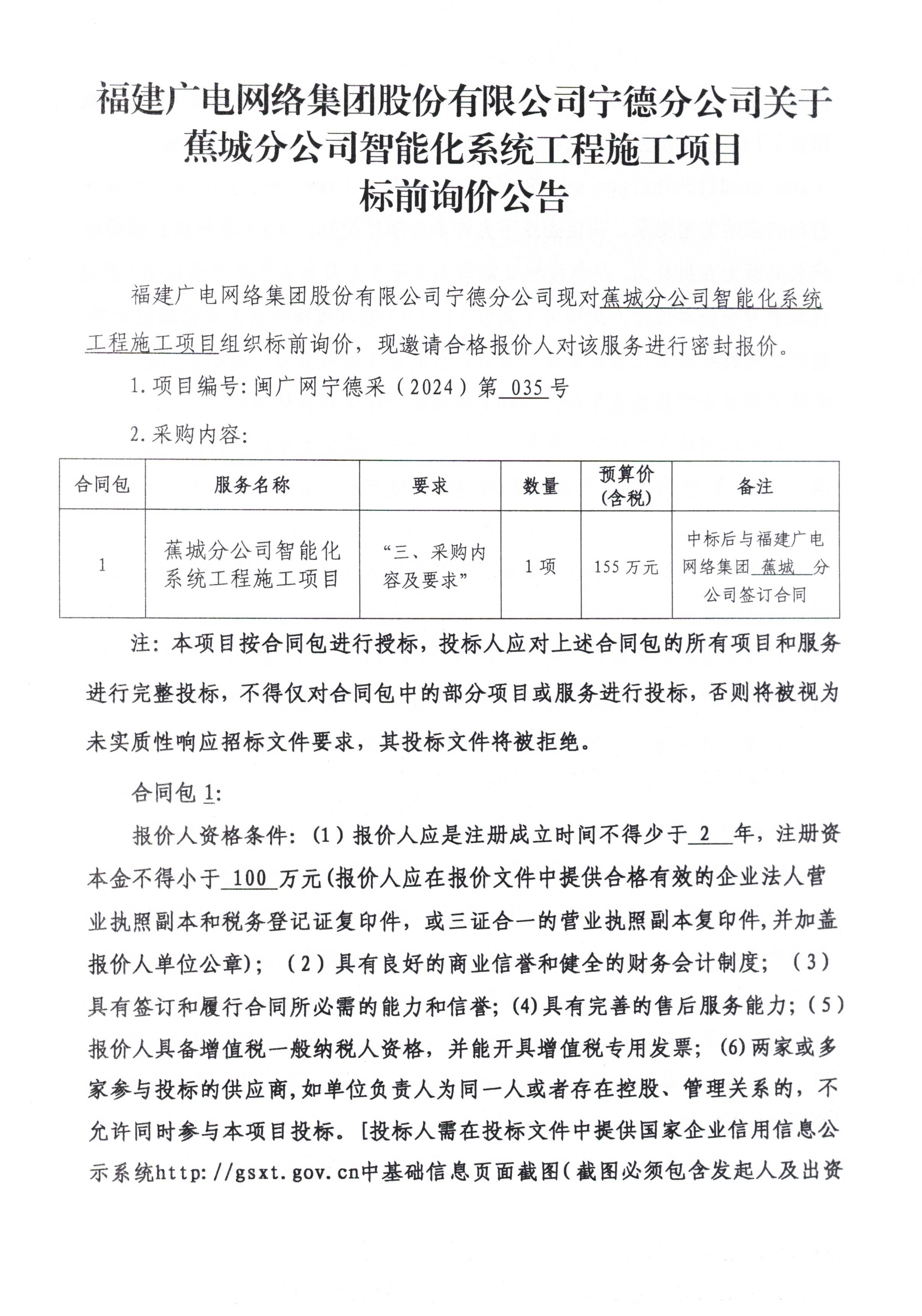 福建广电网络集团股份有限公司宁德分公司关于宁德万骏·珑悦轩项目智能化工程施工项目