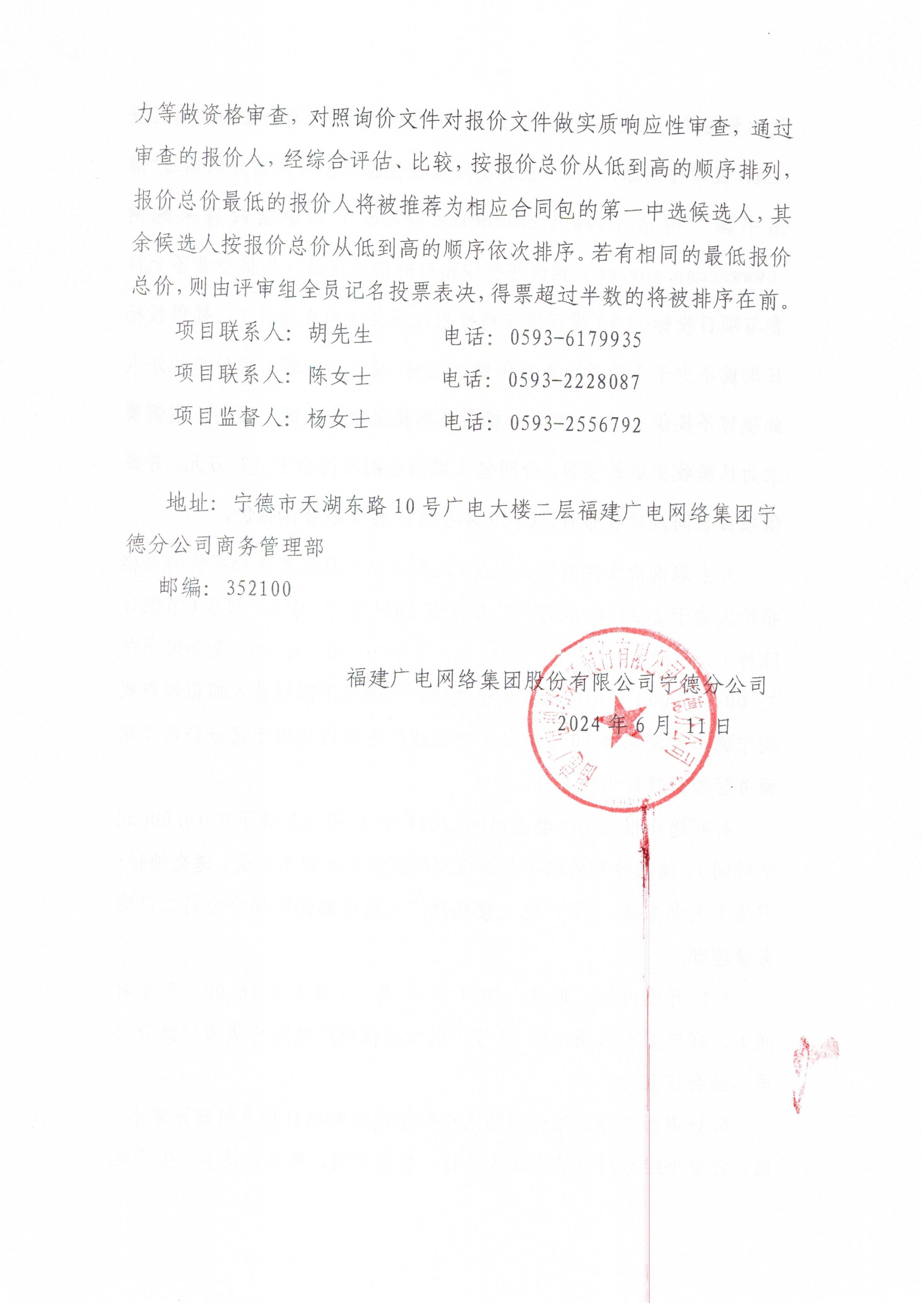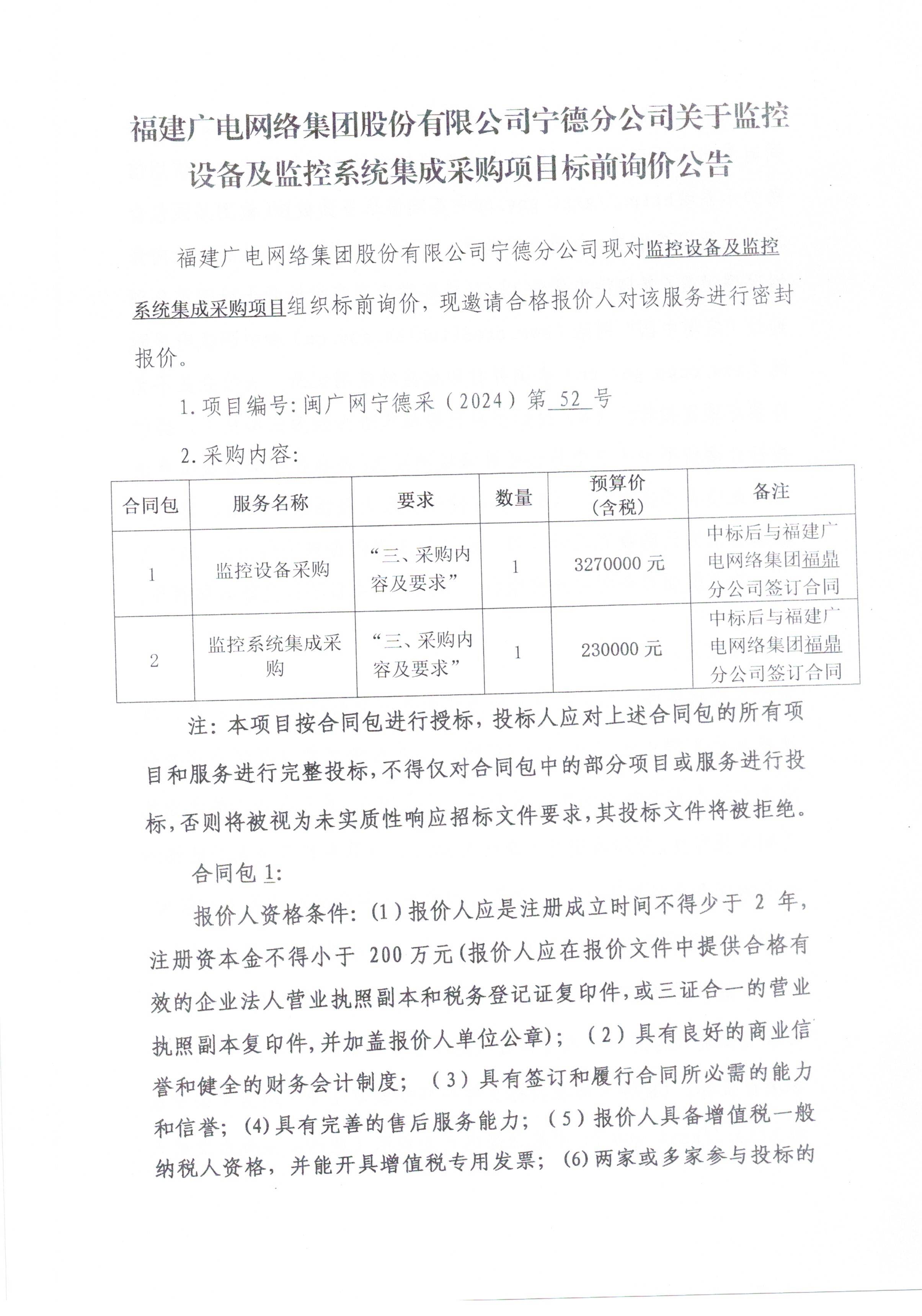 福建广电网络集团股份有限公司宁德分公司关于监控设备及监控系统集成采购项目