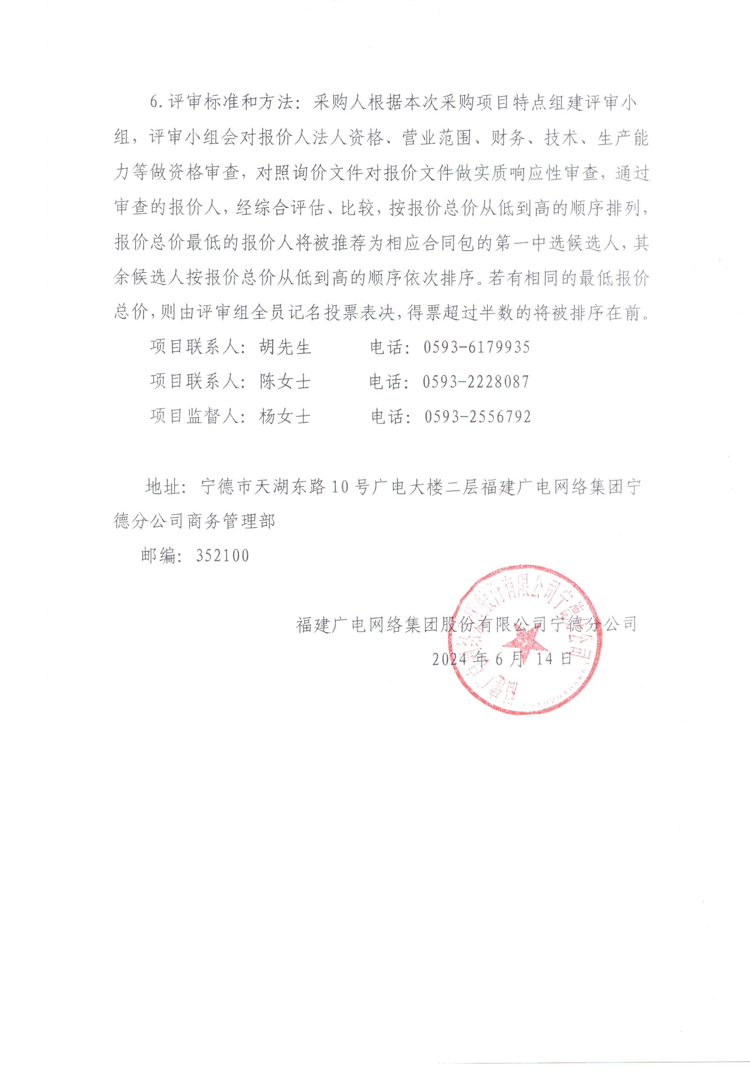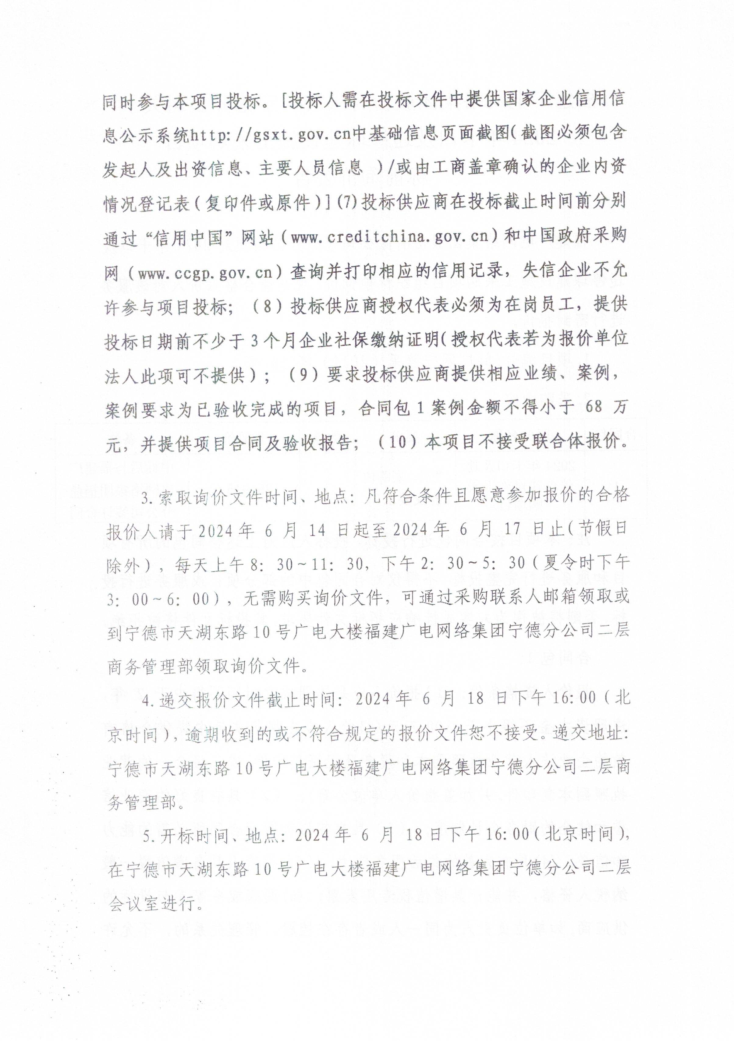 福建广电网络集团股份有限公司宁德分公司关于2024年卡口及违停球建设施工采购项目