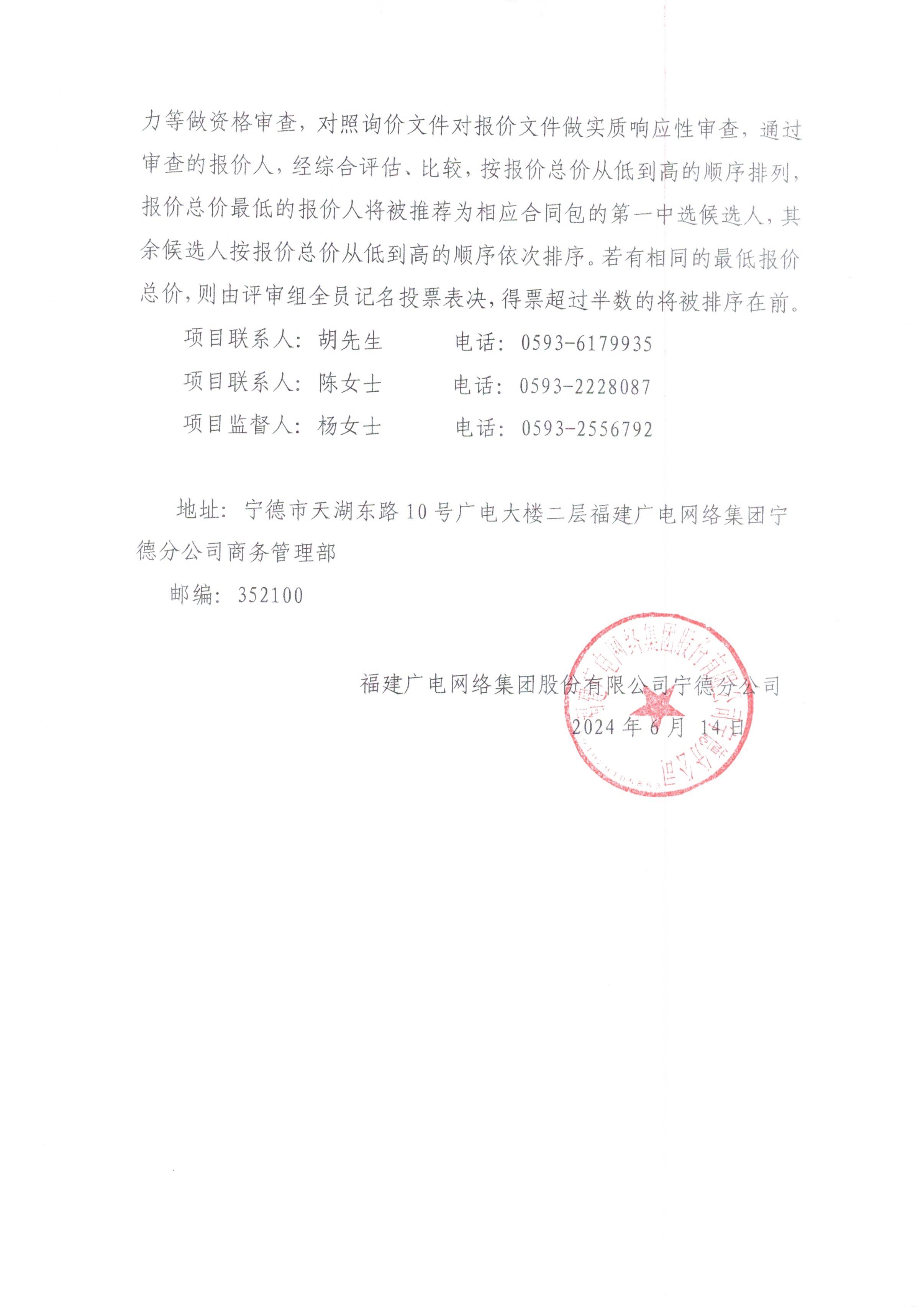 福建广电网络集团股份有限公司宁德分公司关于2024年路口电子警察施工采购项目标前询价公告