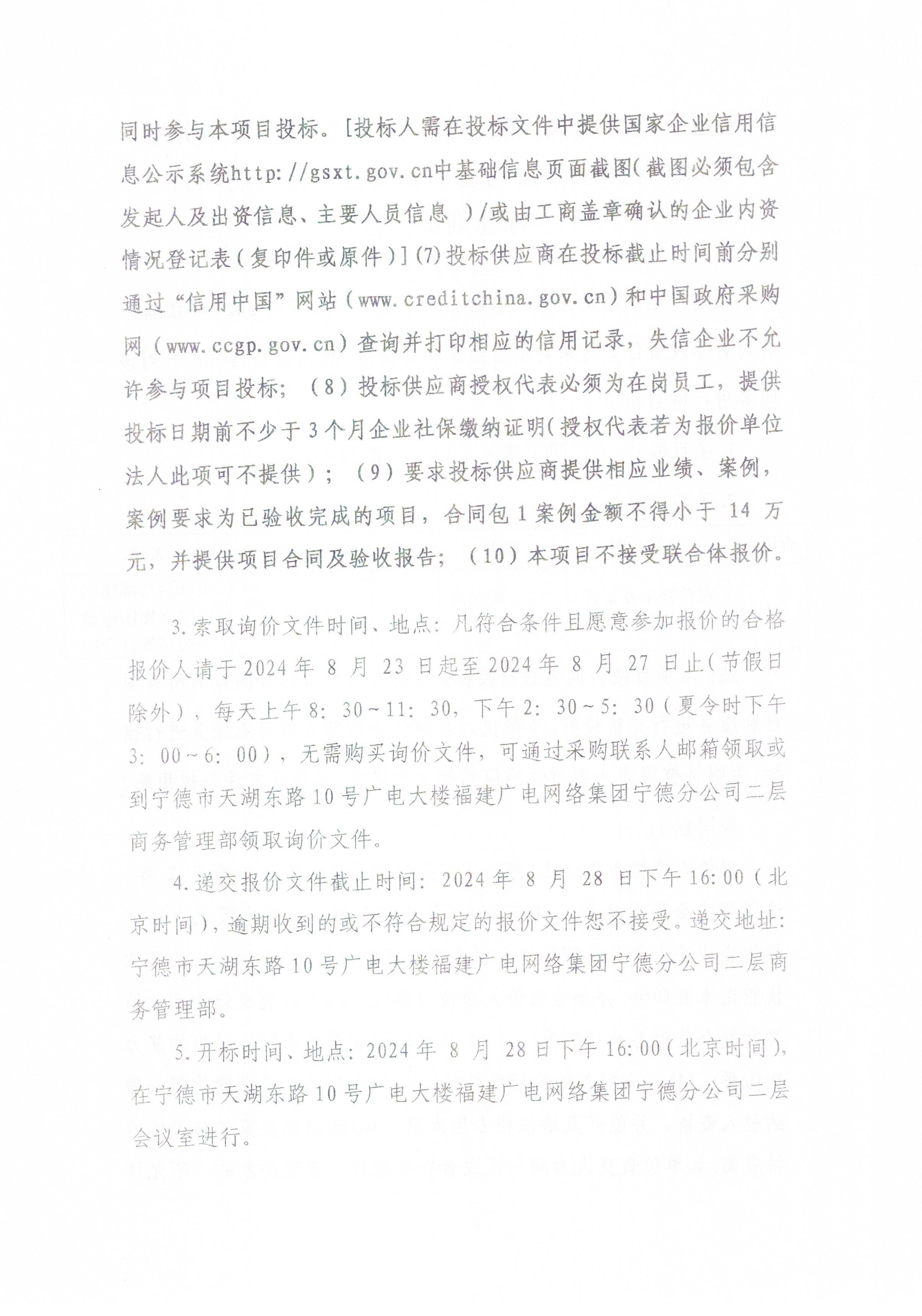 福建广电网络集团股份有限公司宁德分公司关于福鼎警示及责任宣传采购项目