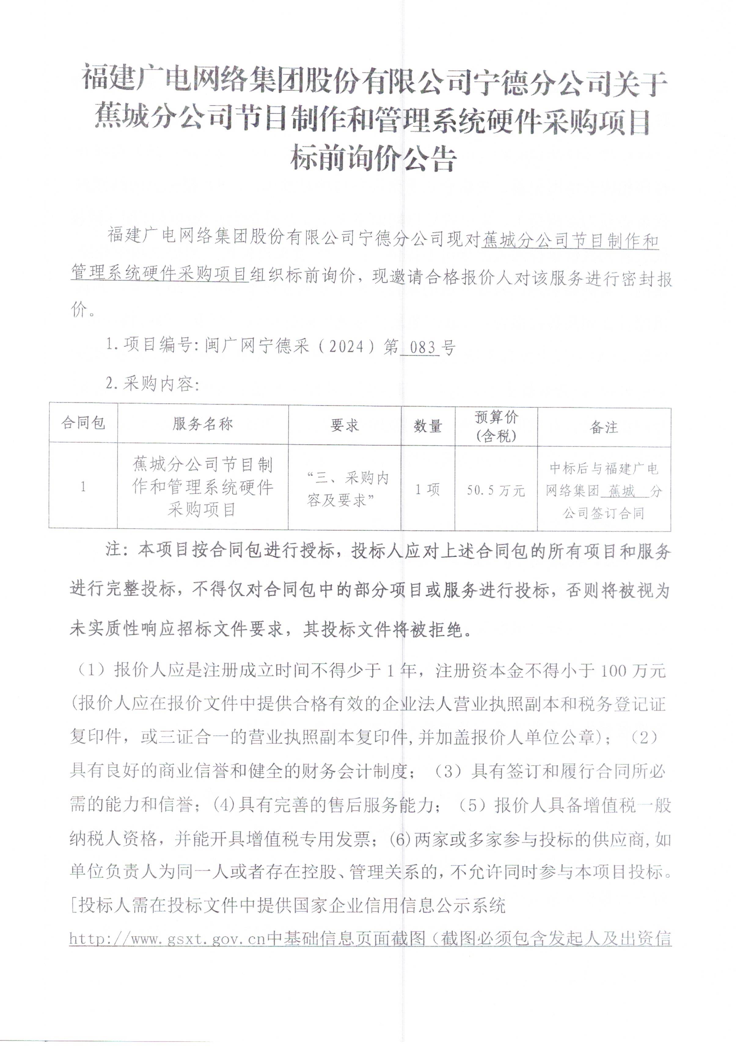 蕉城分公司节目制作和管理系统硬件采购项目