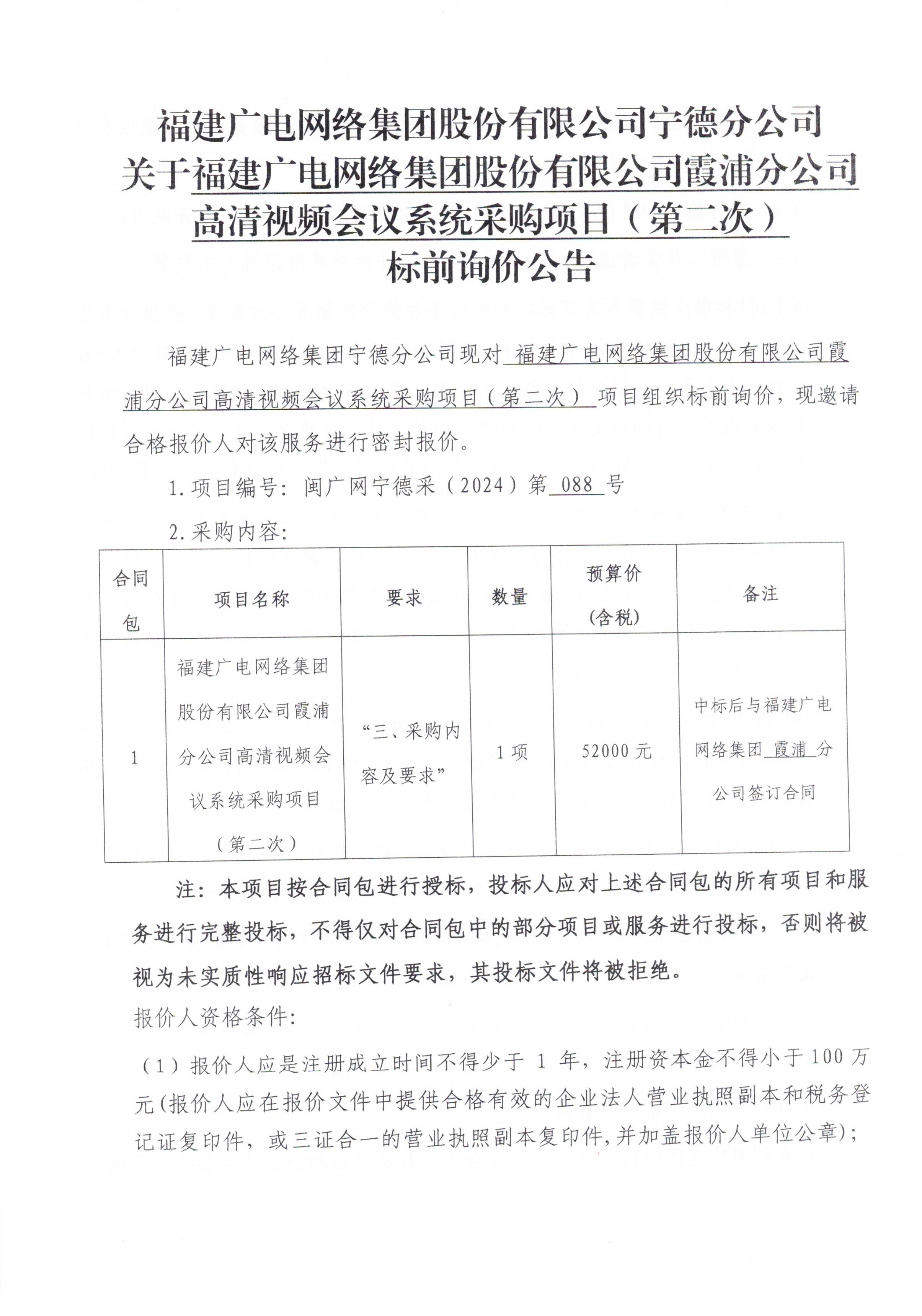 福建广电网络集团股份有限公司霞浦分公司高清视频会议系统采购项目(第二次)