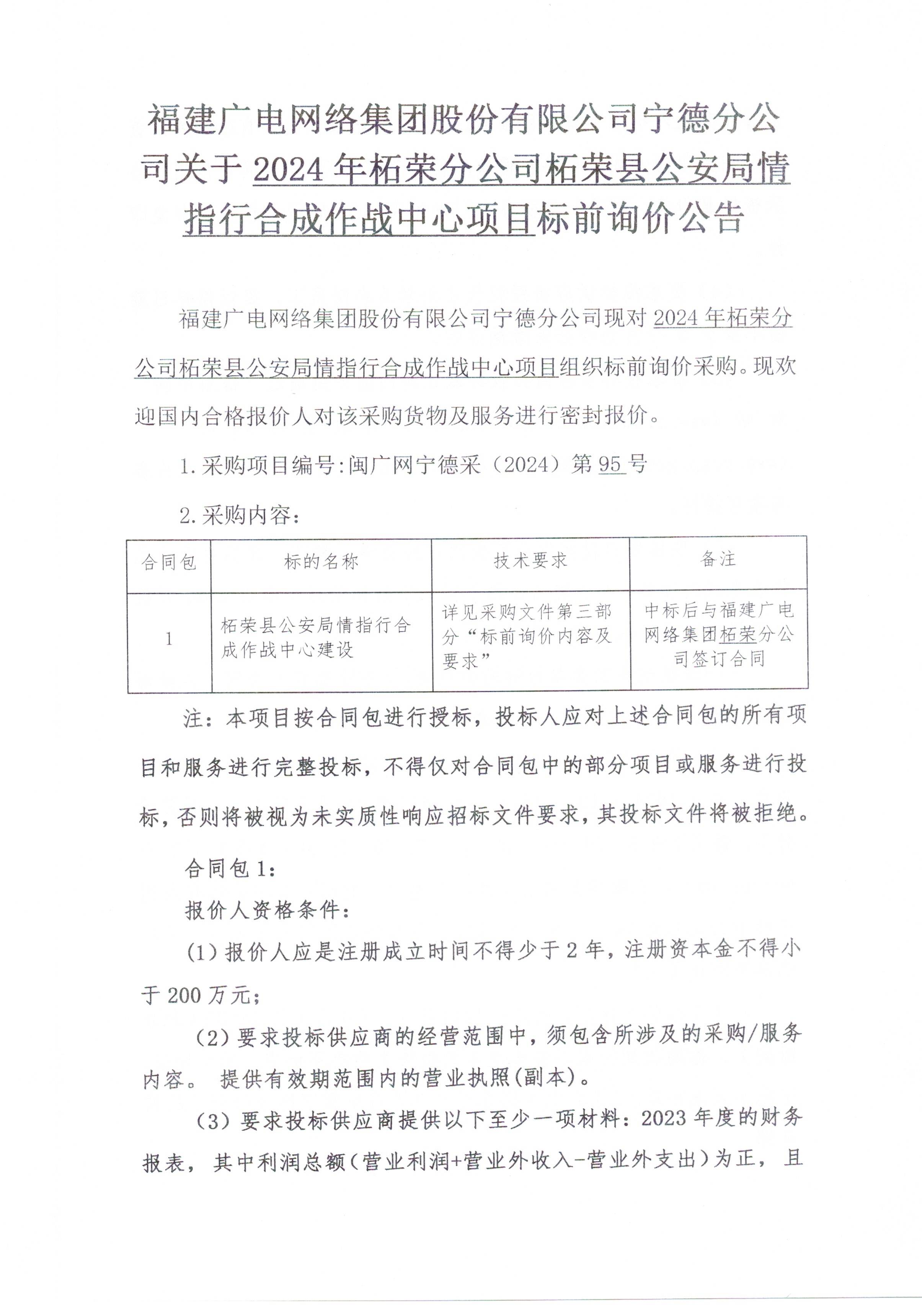 2024年柘荣分公司柘荣县公安局情指行合成作战中心项目