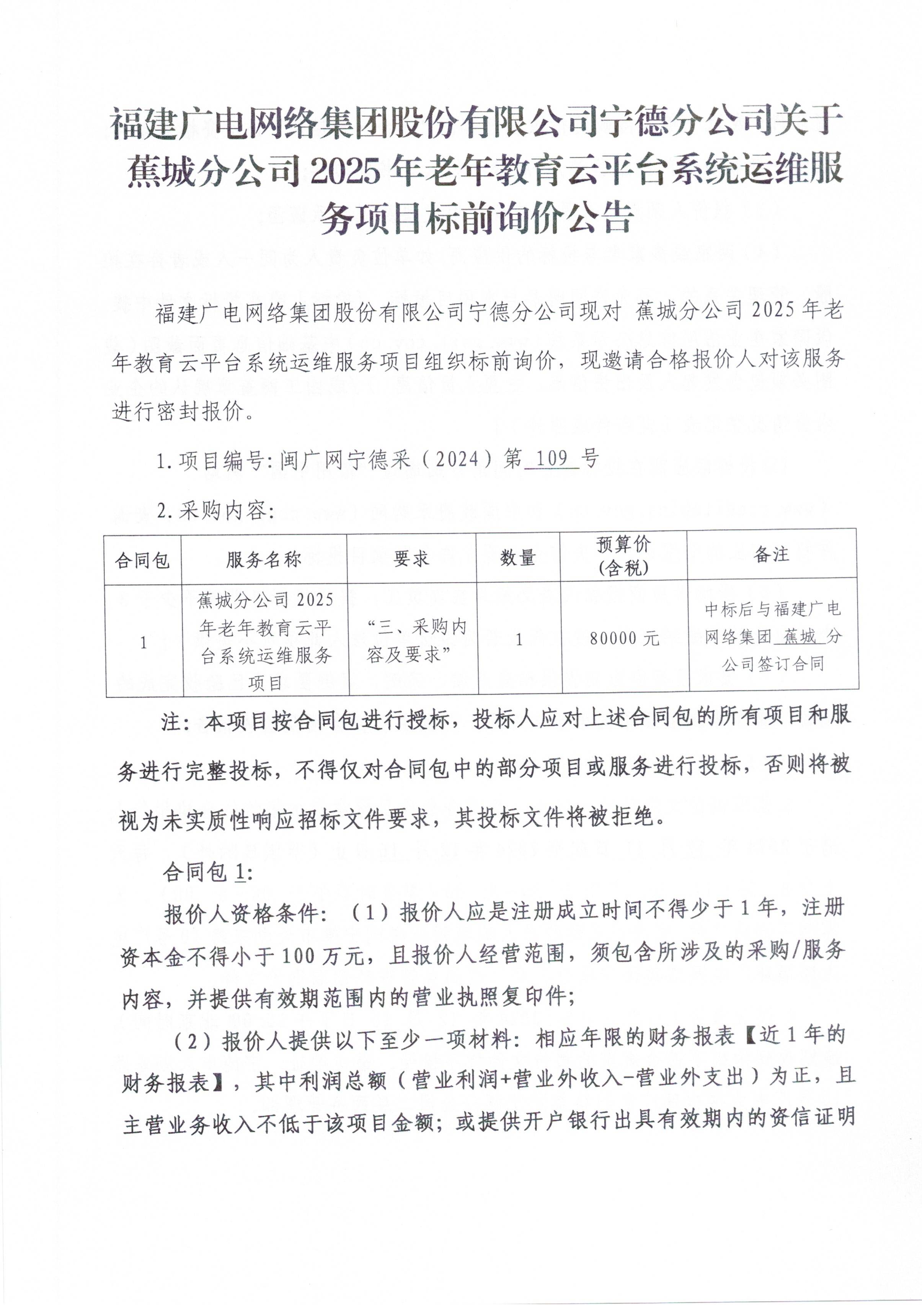 蕉城分公司2025年老年教育云平台系统运维服务项目