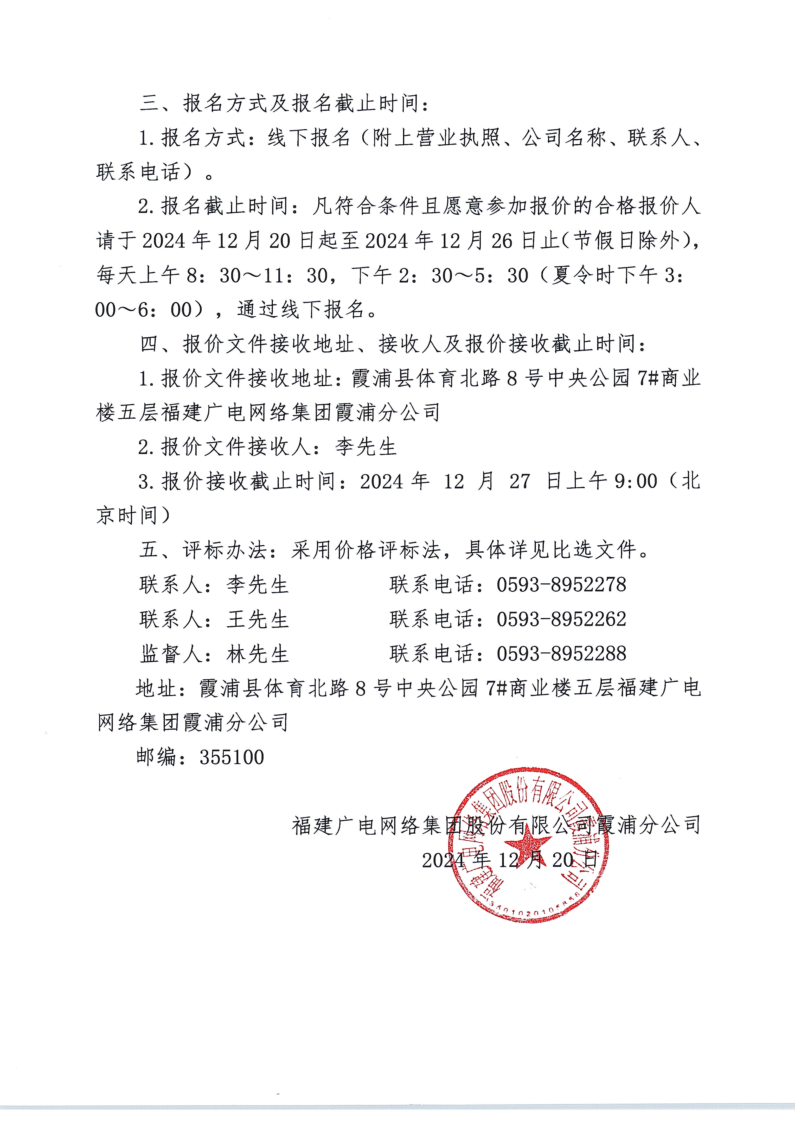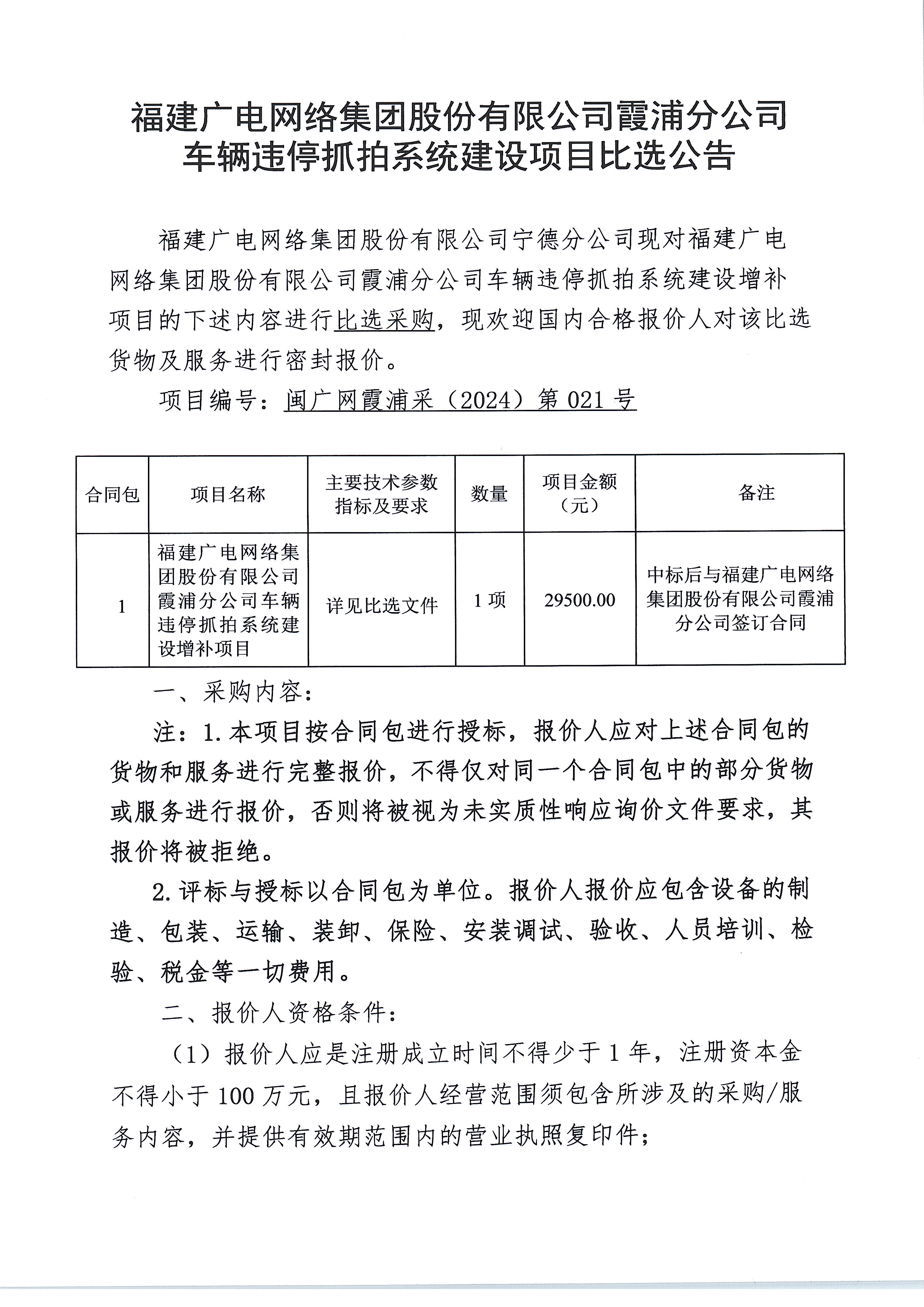 福建广电网络集团股份有限公司霞浦分公司车辆违停抓拍系统建设增补项目