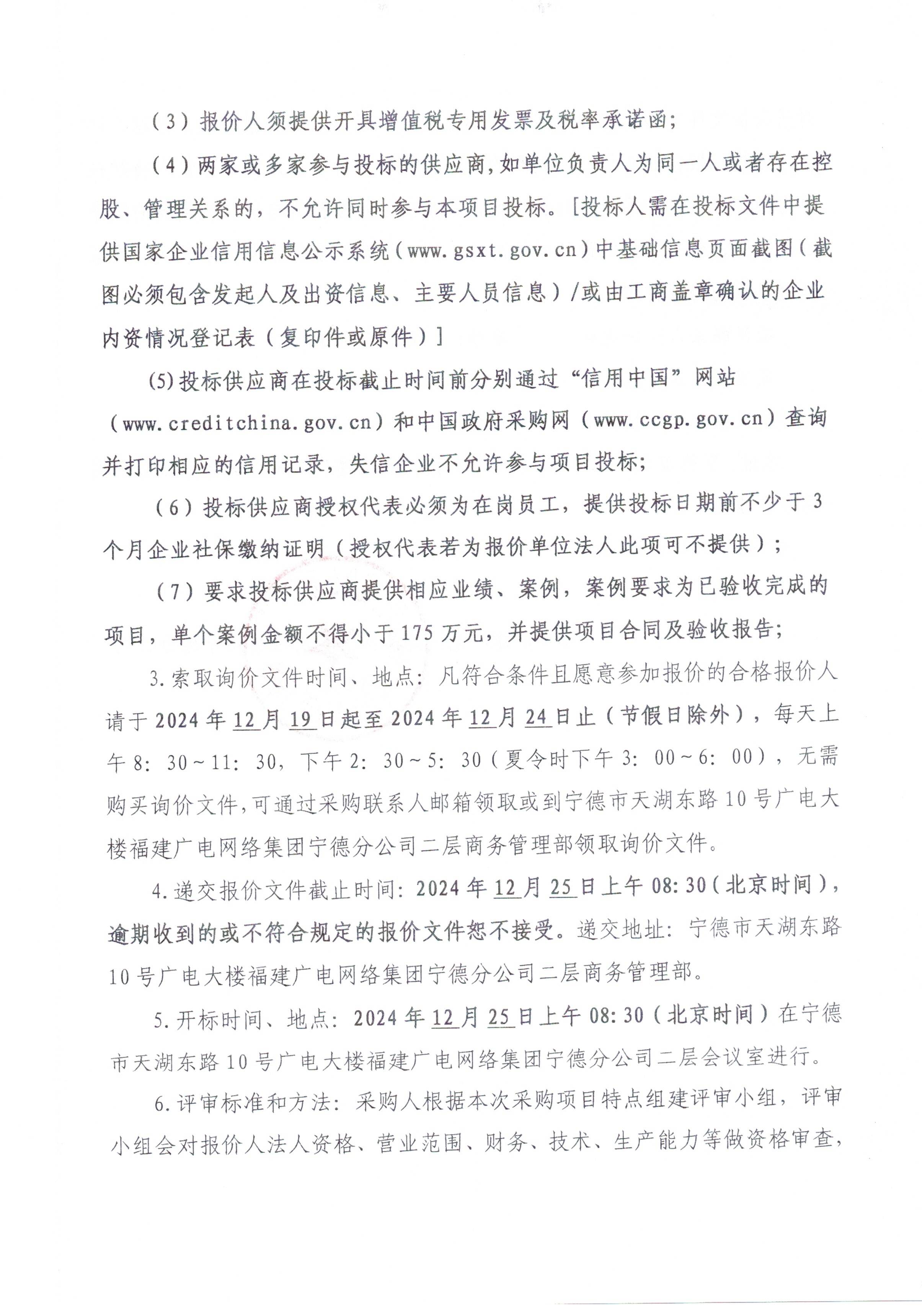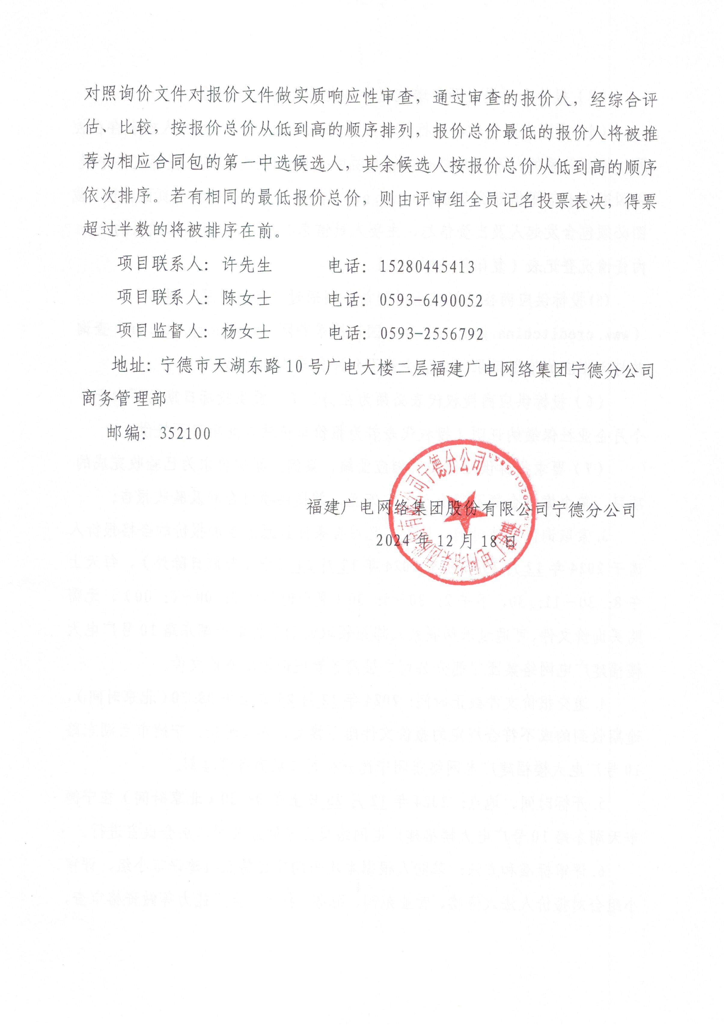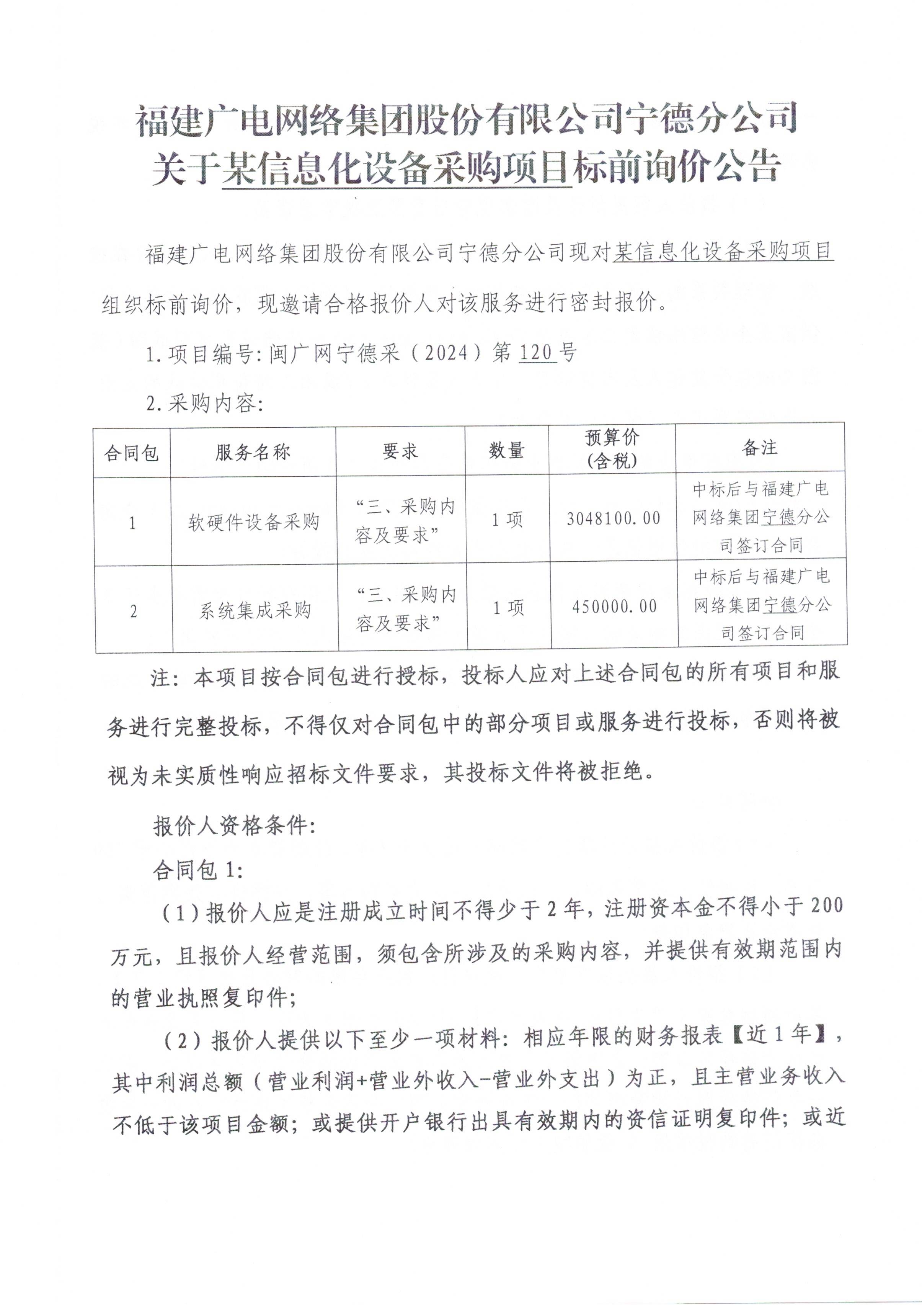 福建广电网络集团股份有限公司宁德分公司关于某信息化设备采购项目