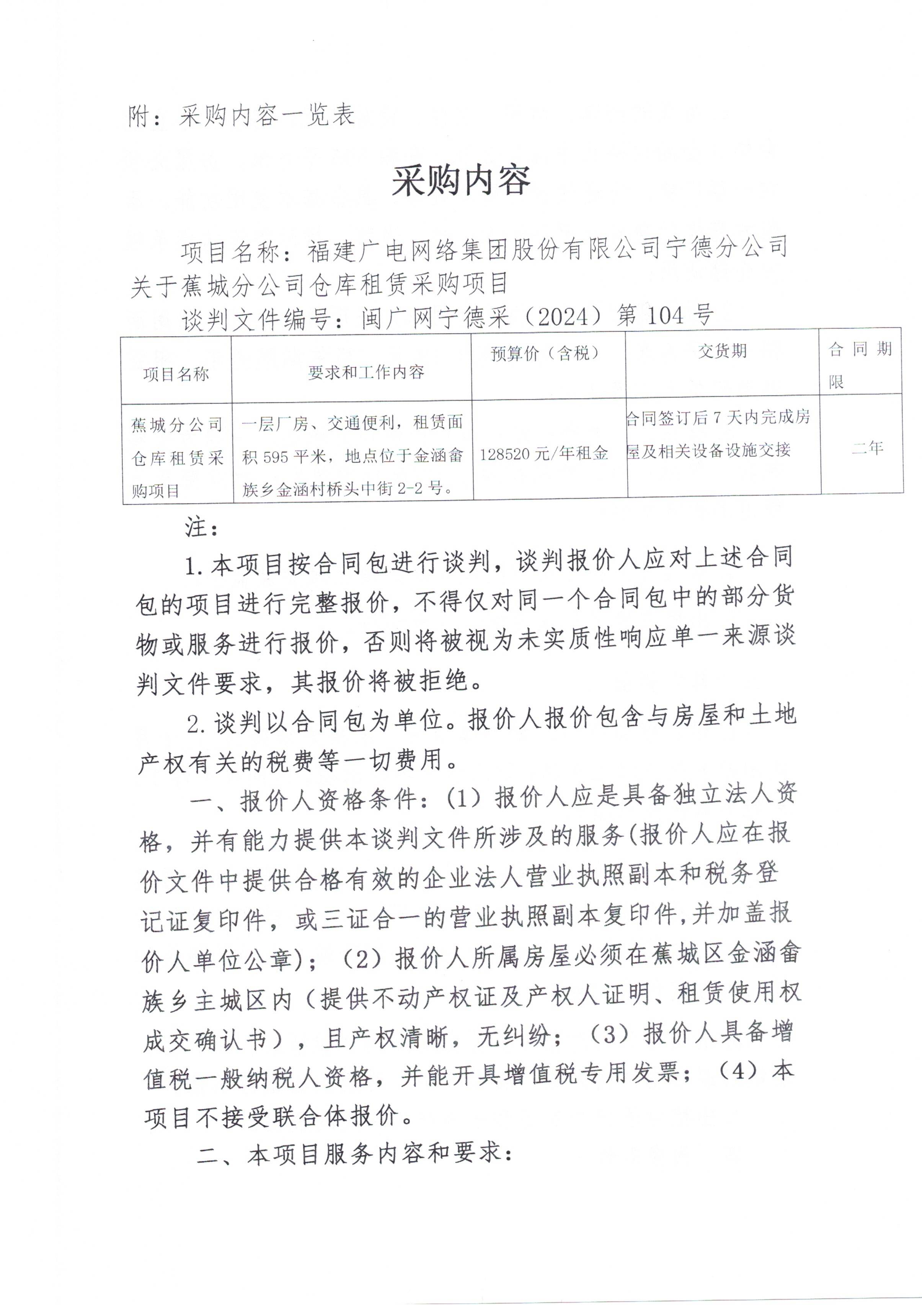 福建广电网络集团股份有限公司宁德分公司关于蕉城分公司仓库租赁项目