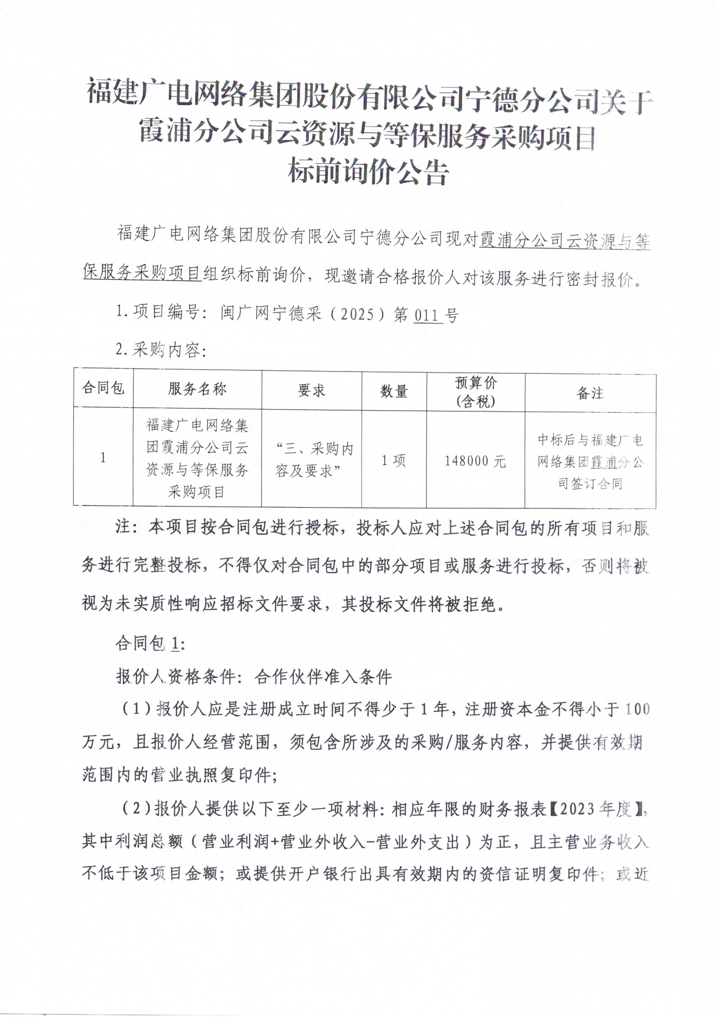 福建广电网络集团霞浦分公司云资源与等保服务采购项目