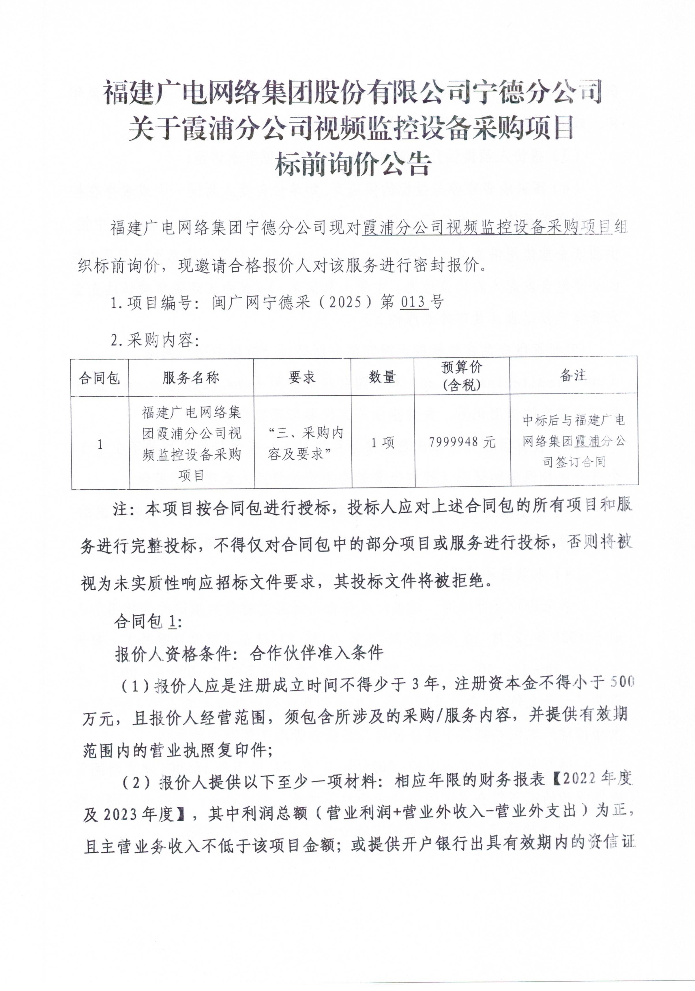 福建广电网络集团霞浦分公司视频监控设备采购项目
