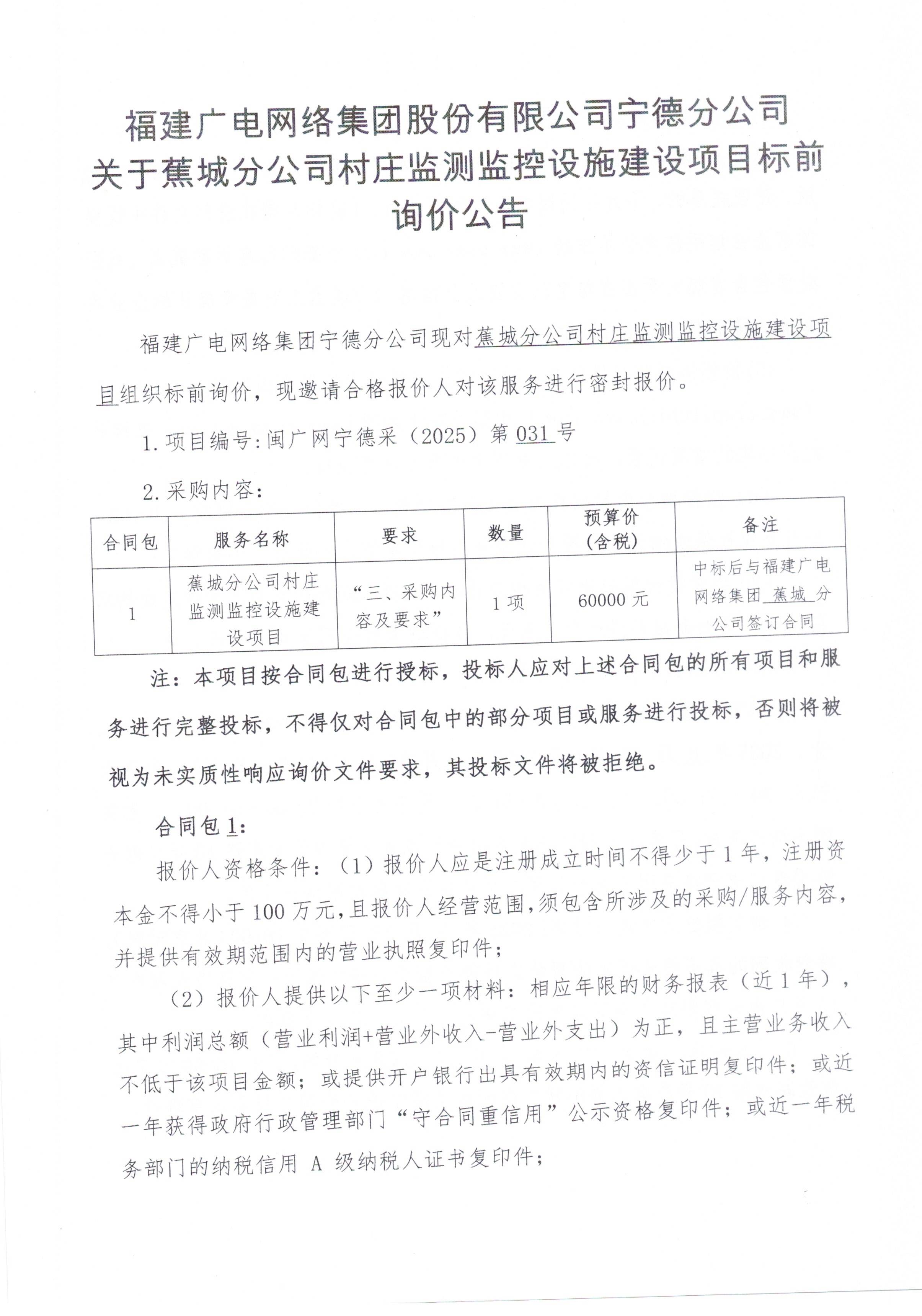 蕉城分公司村庄监测监控设施建设项目